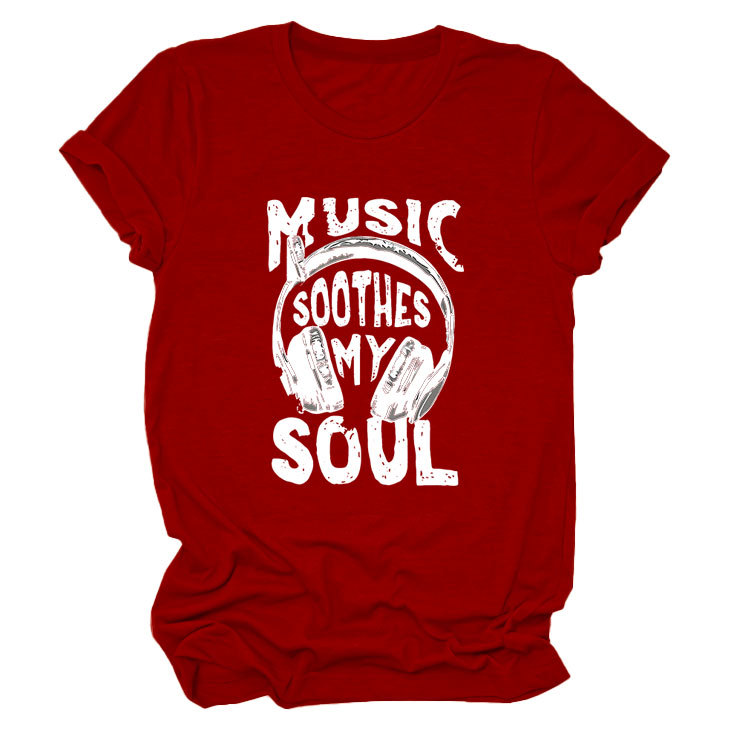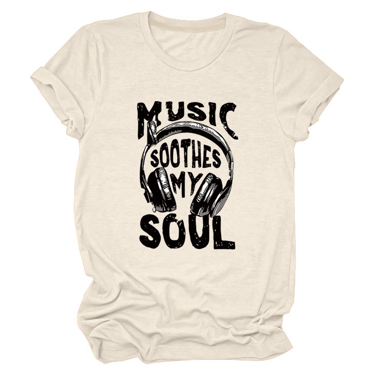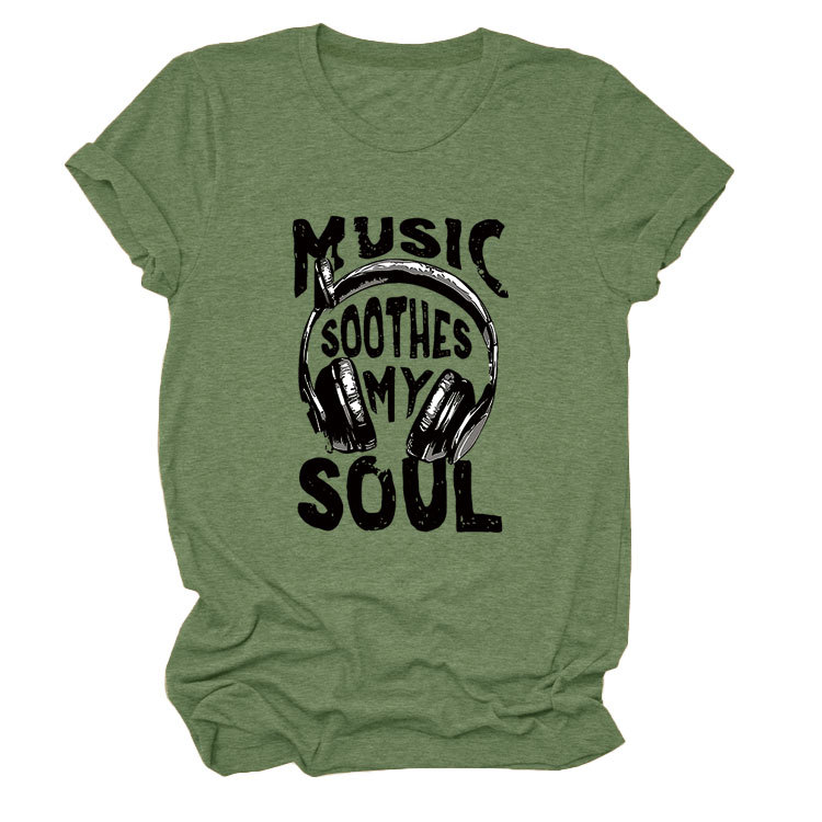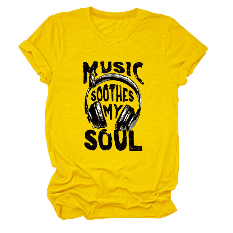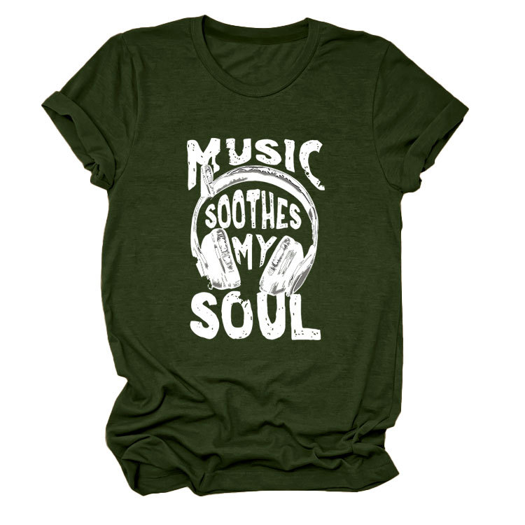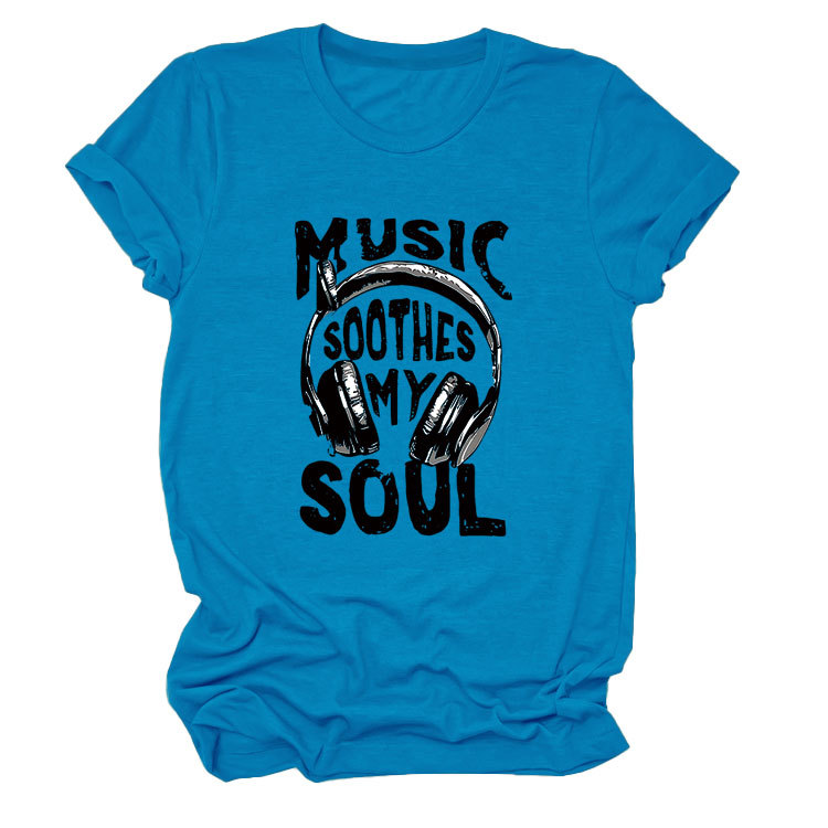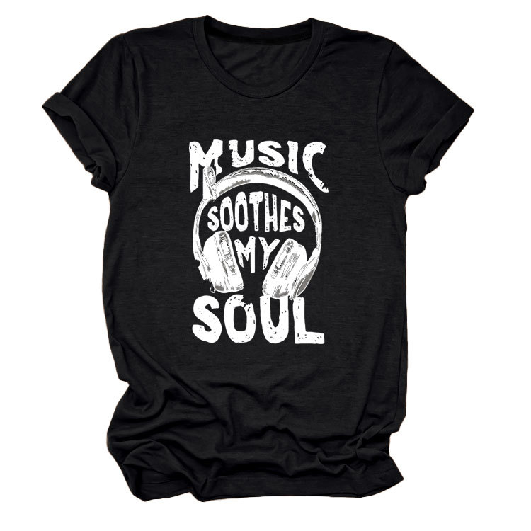 아마존 소원 개성 패션 트렌드 음악은 내 여성베이스 라운드 넥 반팔 티셔츠를 진정시킵니다스토어 가기