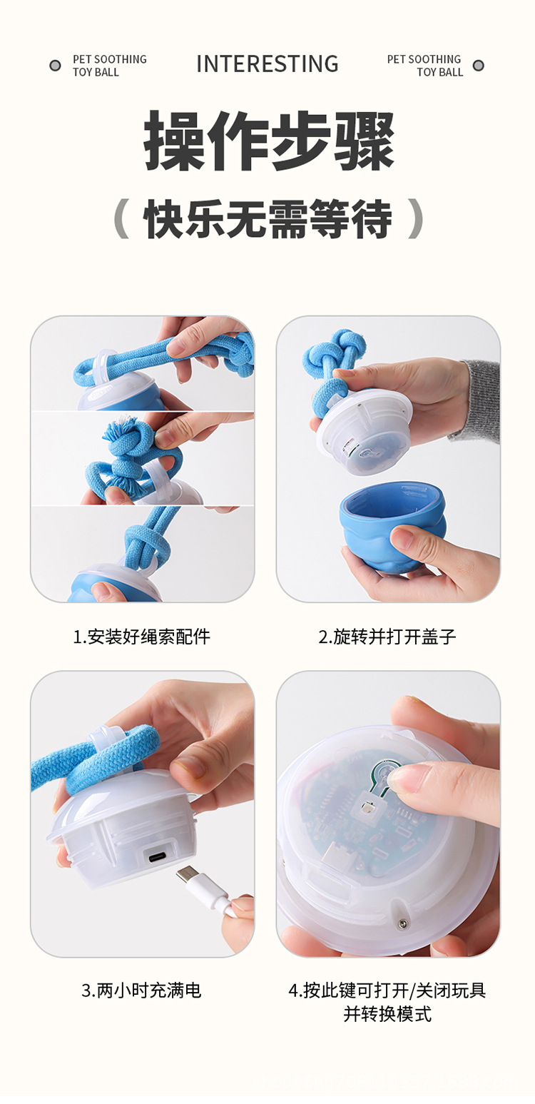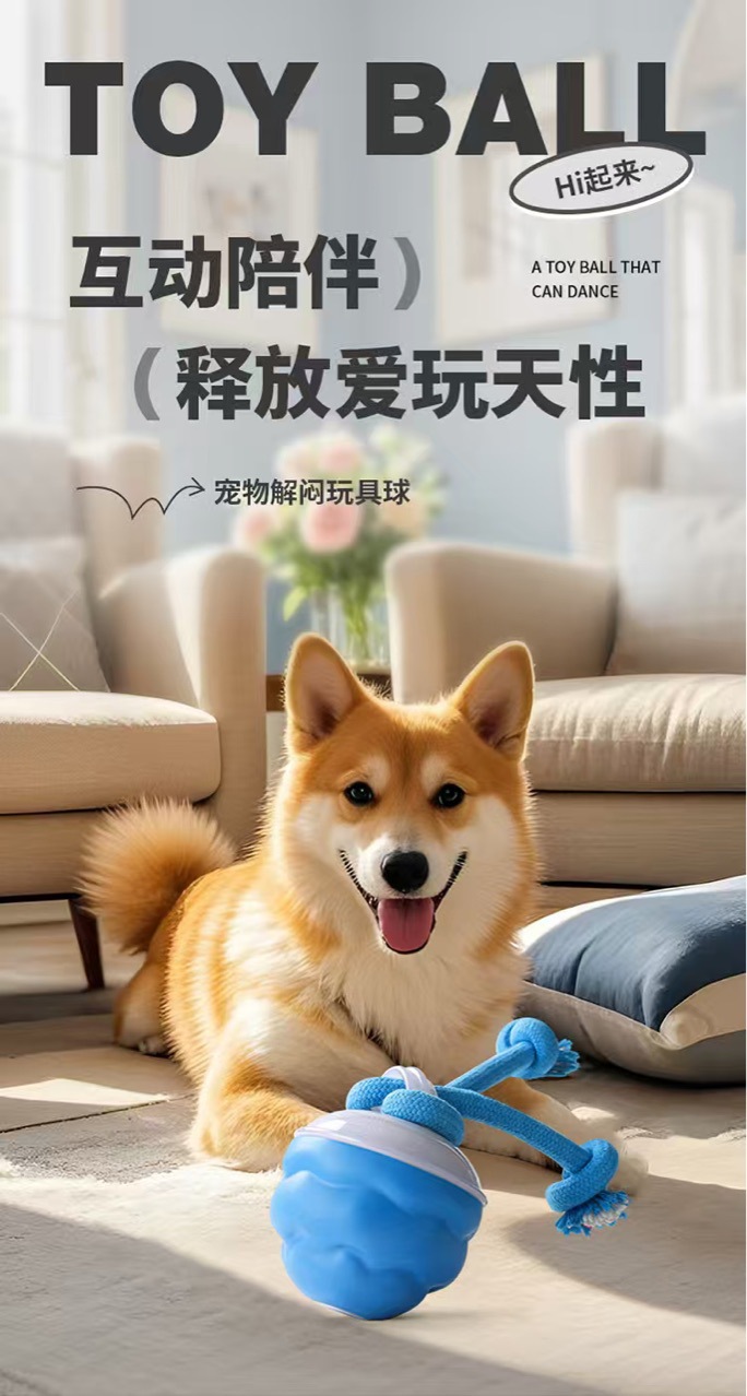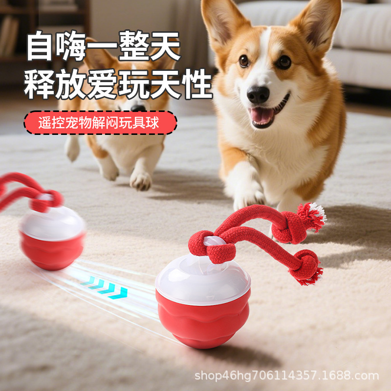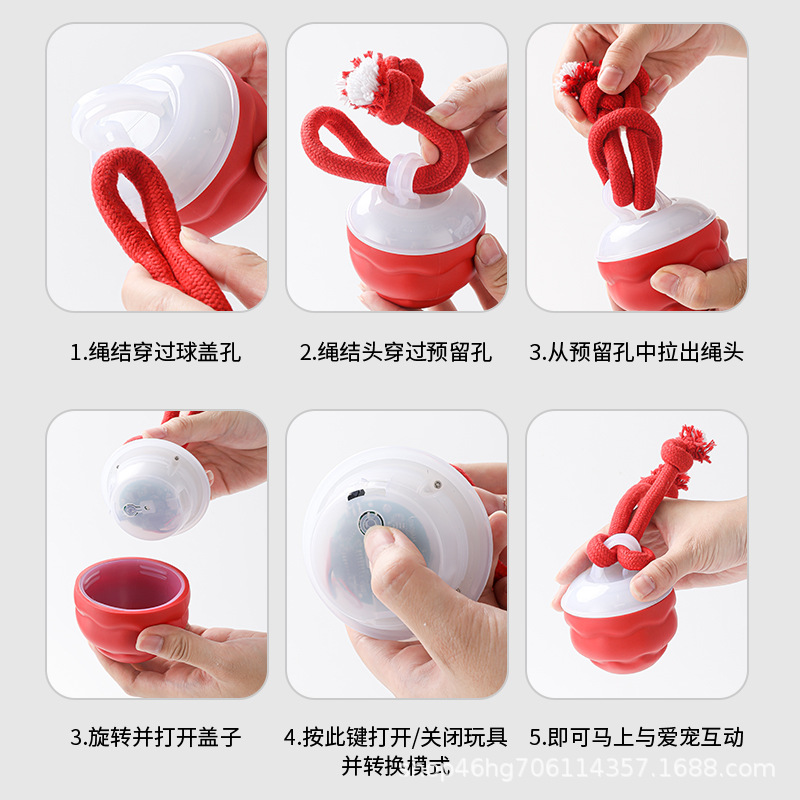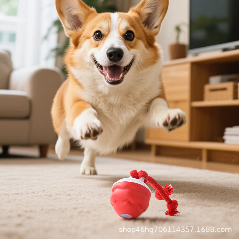 전기 애완견 장난감 공, 내장된 개 소리, 개 목줄 포함, 중소형견용, 해외 배송 애완동물 장난감