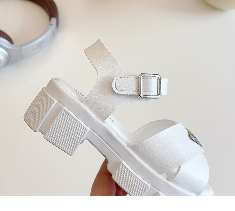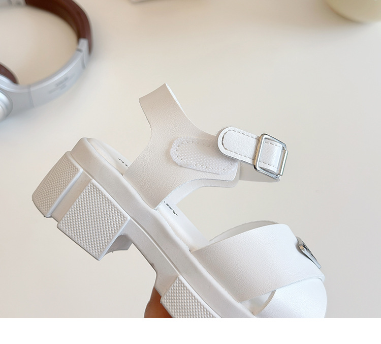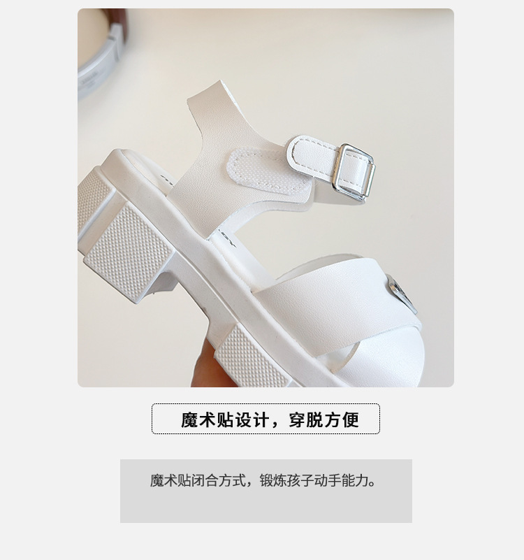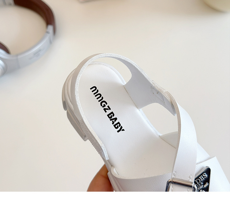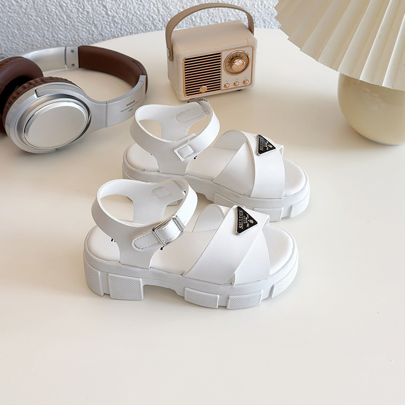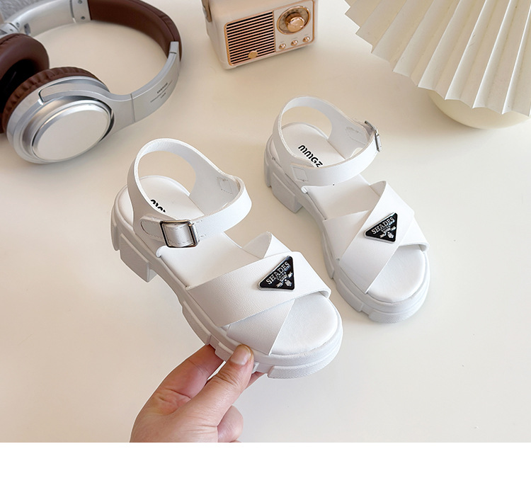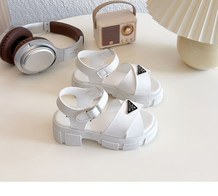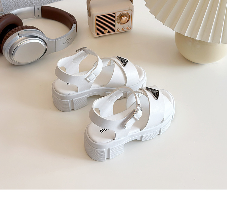 2025 여성 세련 된 금속 삼각형 버클 샌들 한국 스타일 소녀 벨크로 두꺼운 바닥 비치 슈즈