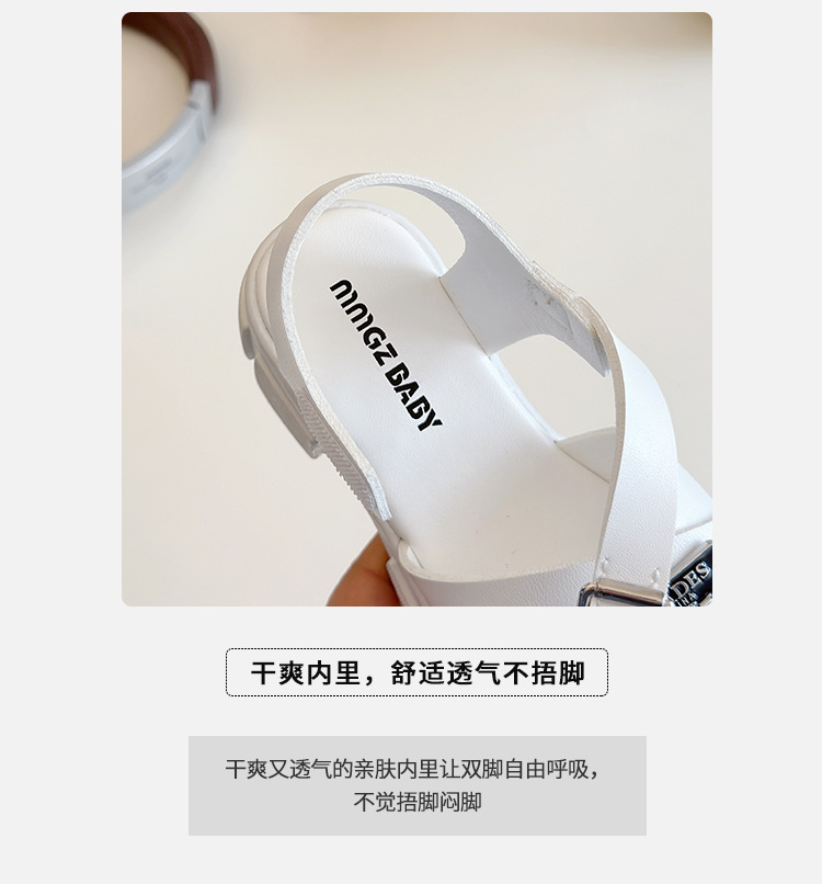 2025 여성 세련 된 금속 삼각형 버클 샌들 한국 스타일 소녀 벨크로 두꺼운 바닥 비치 슈즈스토어 가기