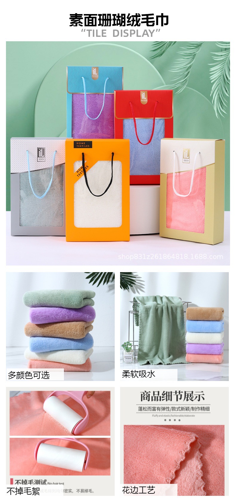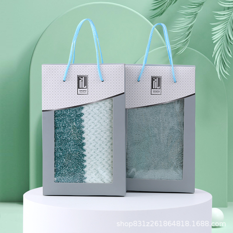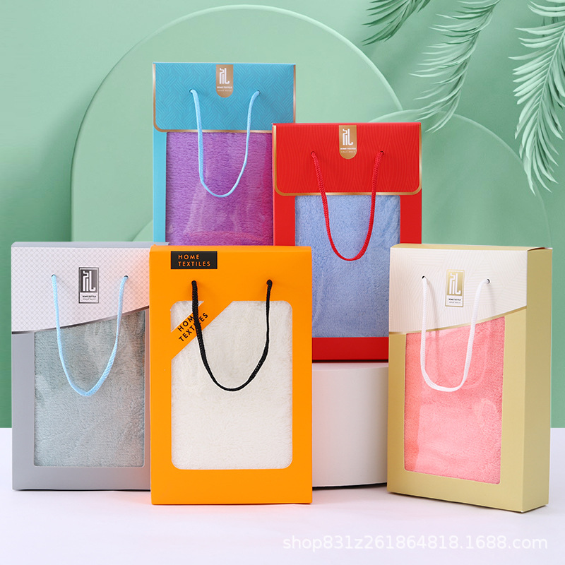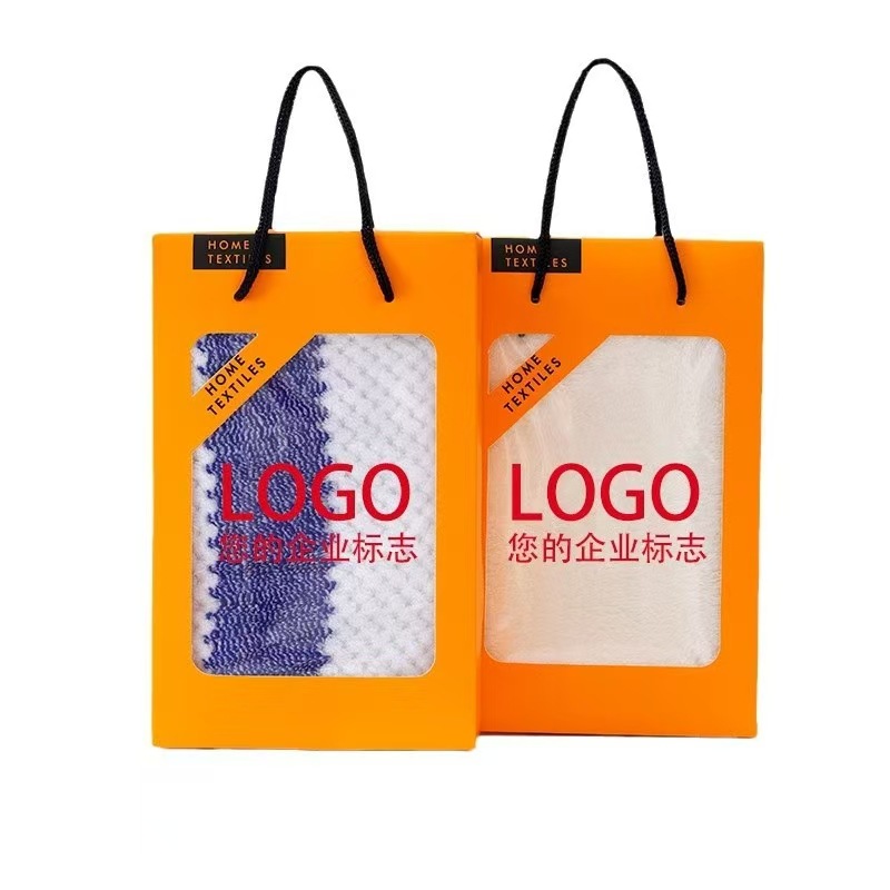 선물 상자 수건 손 선물 반환 산호 양털 수건 개회식 결혼식 생일 선물 수건 자수 로고스토어 가기