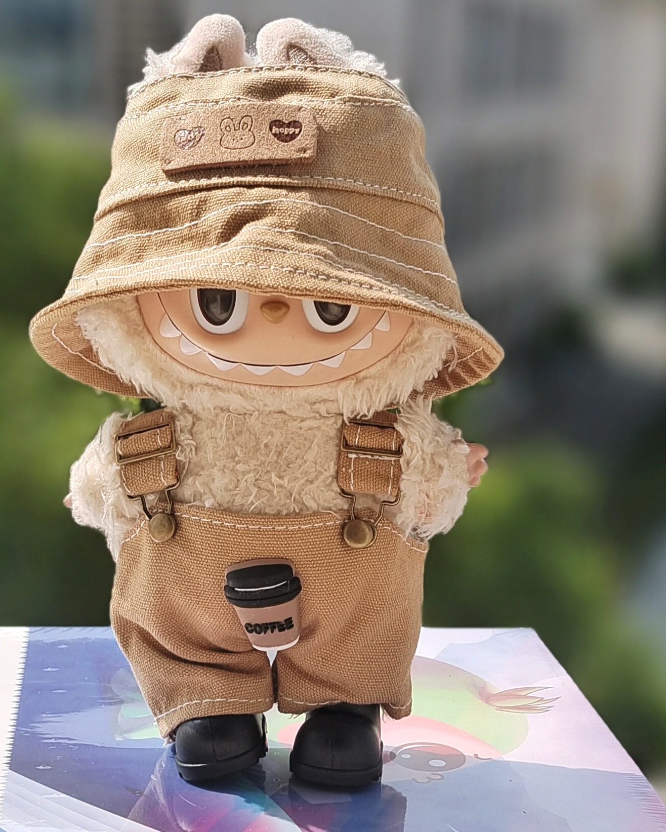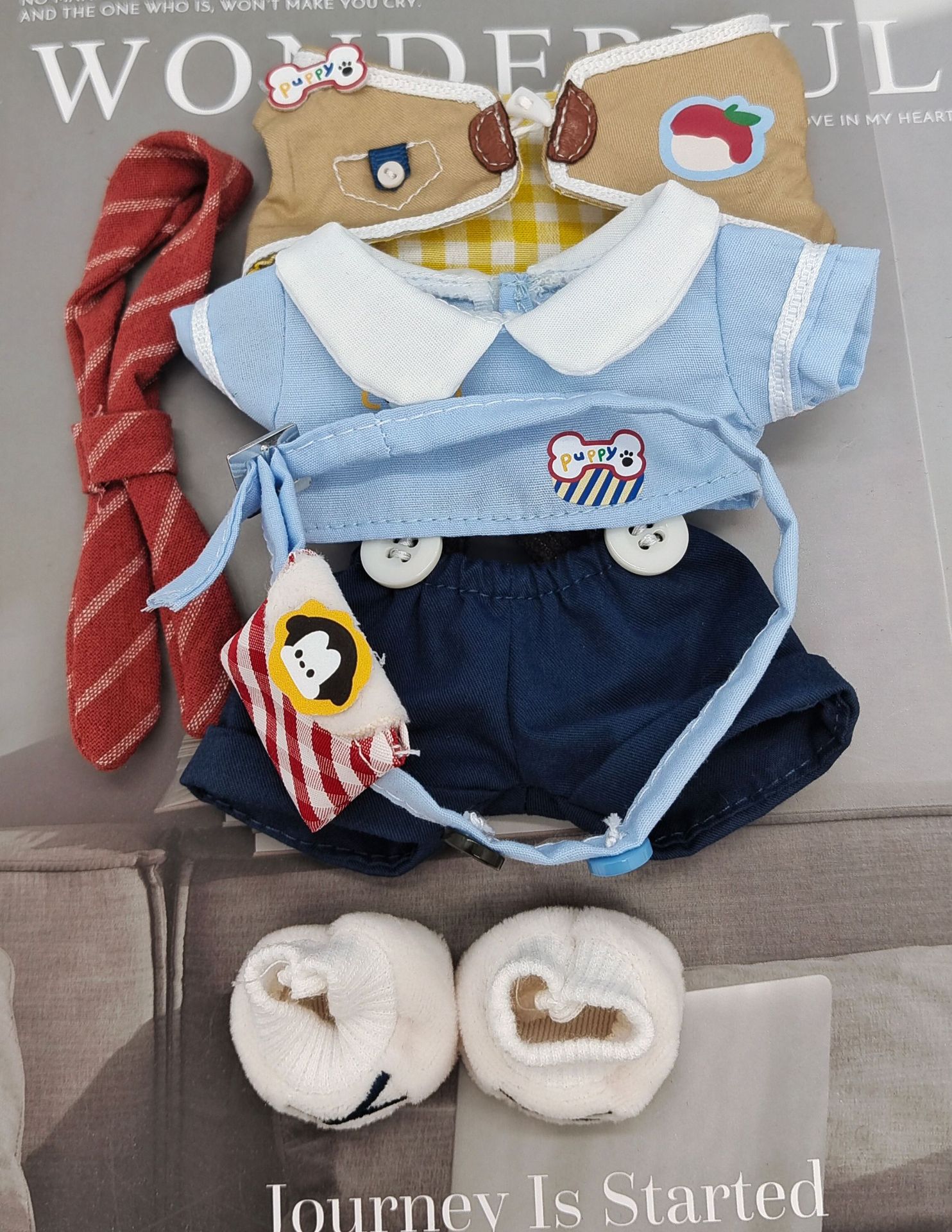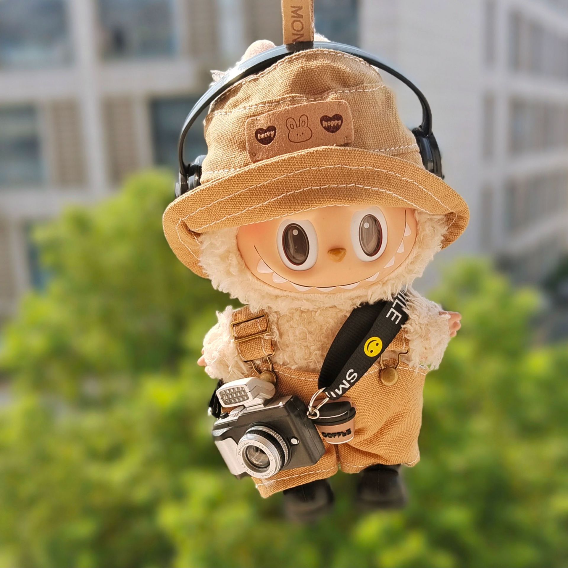 • 갈색 멜빵바지 + 이어폰 + 신발 + 카메라