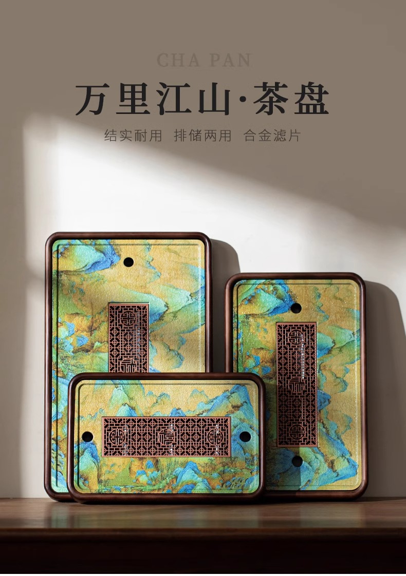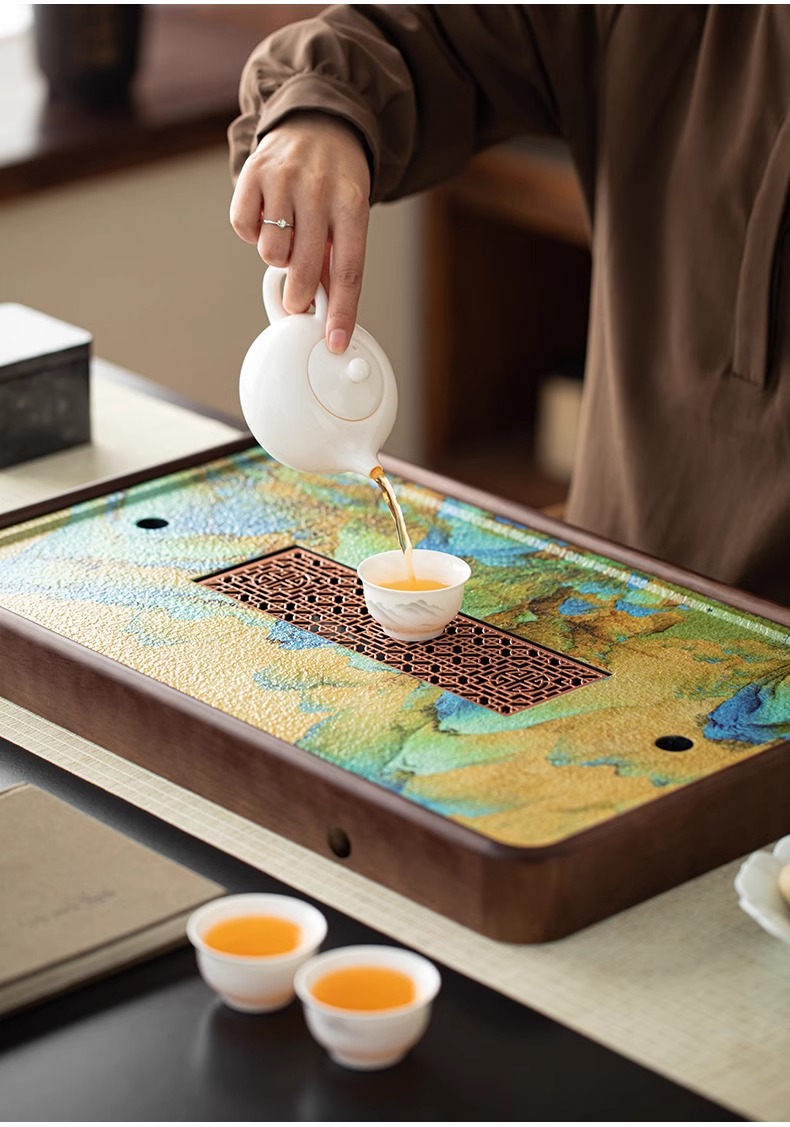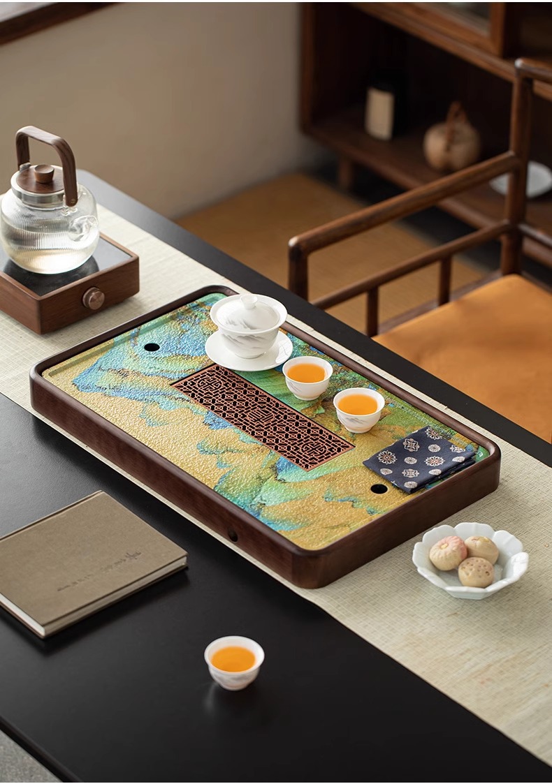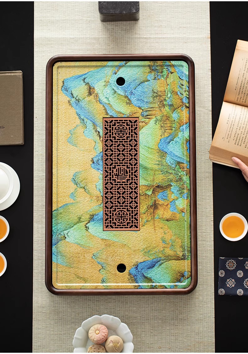 • [원목 프레임] Wanli Jiangshan 차 트레이_대형