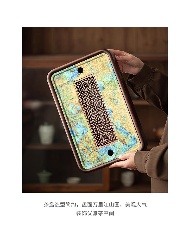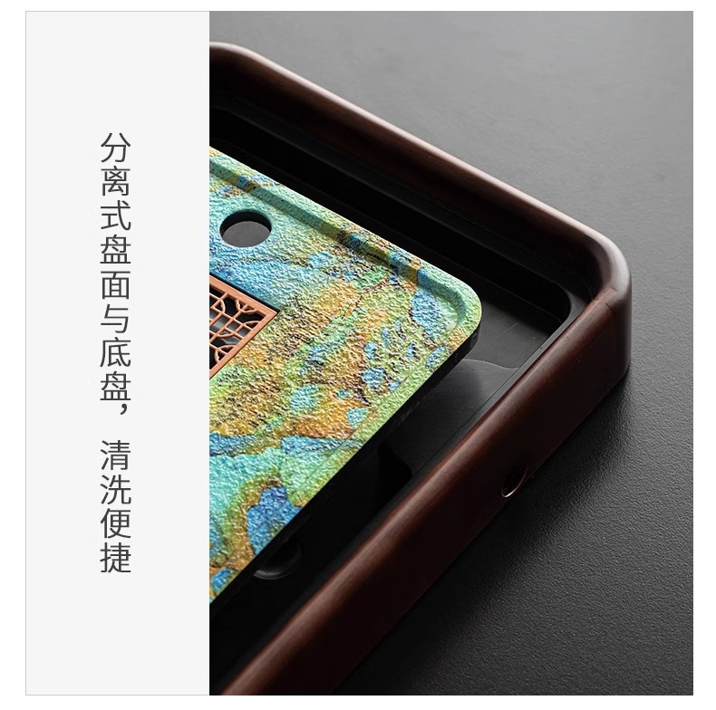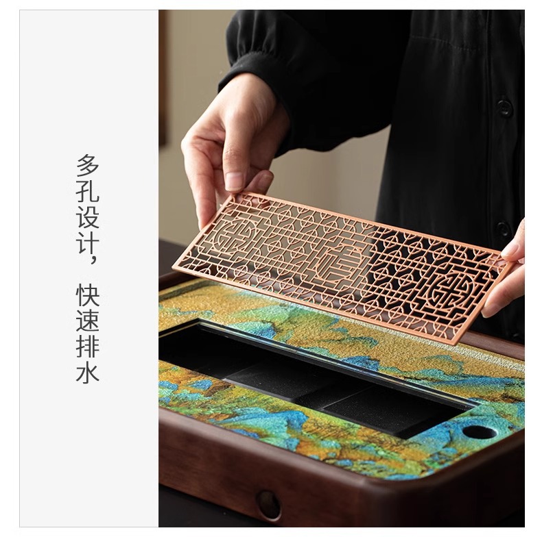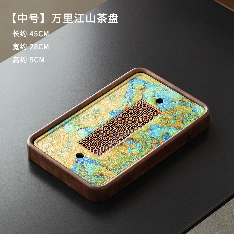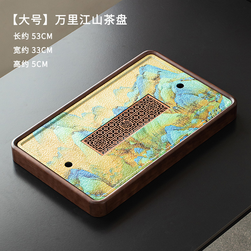 Kemu 차 쟁반 형 차 세트 트레이 단단한 나무 차 테이블 Qianli Jiangshan 차 물 저장 및 배수 가정용 건조 적신 테이블