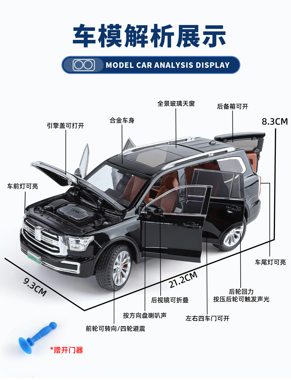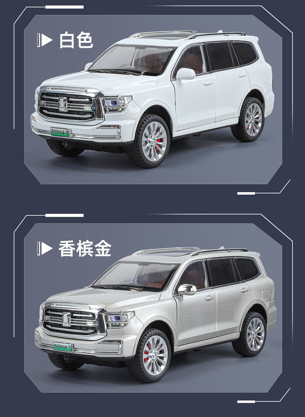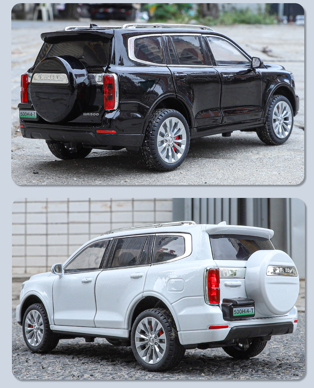 시뮬레이션 1:24 탱크 500 오프로드 합금 자동차 모델 홈 장식품 사운드 효과 백 포스 소년 장난감 도매스토어 가기