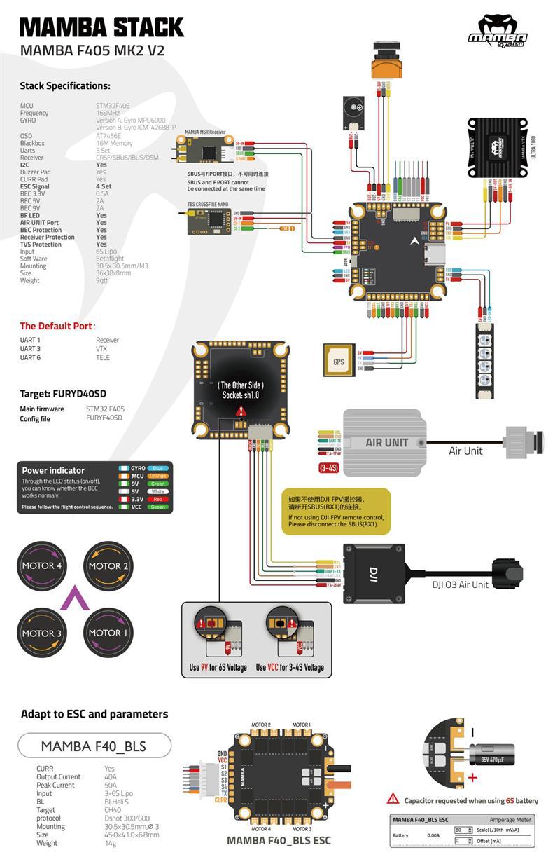 체이스 MAMBA MMK2 F405 V2 55A 4 대 1 전기 튠 F55 BLS 비행 제어 교차 FPV