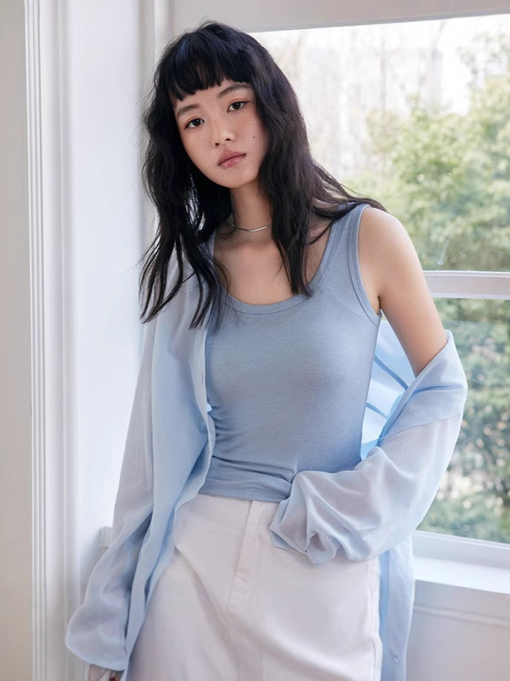 2025 새로운 Tencel Lyocell 코튼 울 조끼 캐주얼 우아한 올매치 높은 탄성 편안한 Acetic Acid 9961스토어 가기