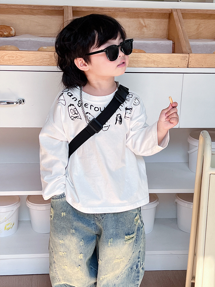 소년 티셔츠 긴 소매 어린이 봄 2025 새로운 패션 브랜드 백베이스 셔츠 아기 소녀 캐주얼 올 매치 탑스토어 가기