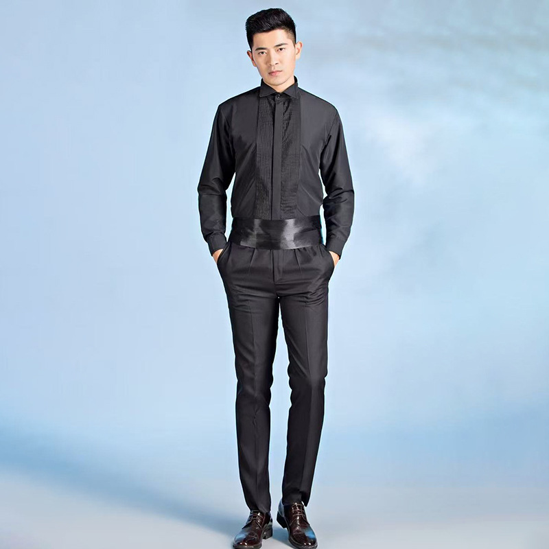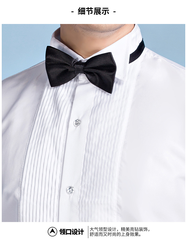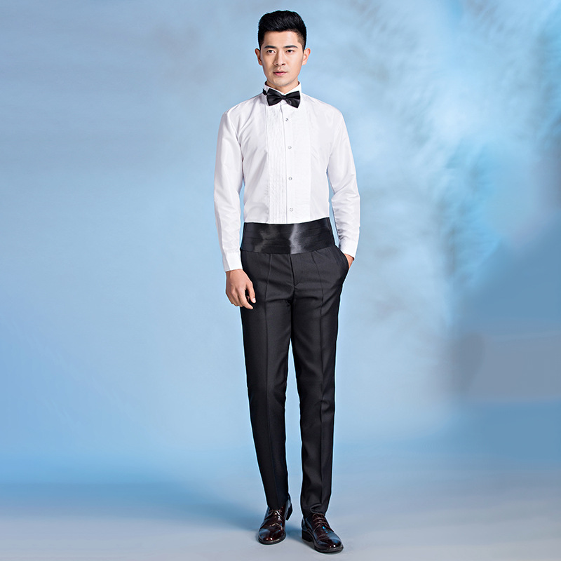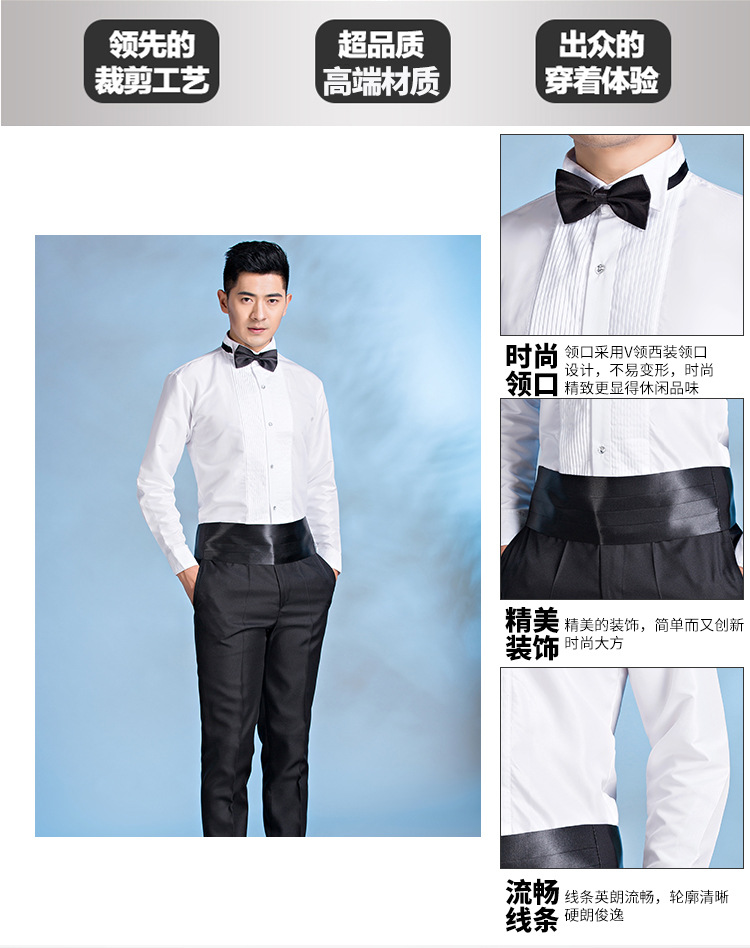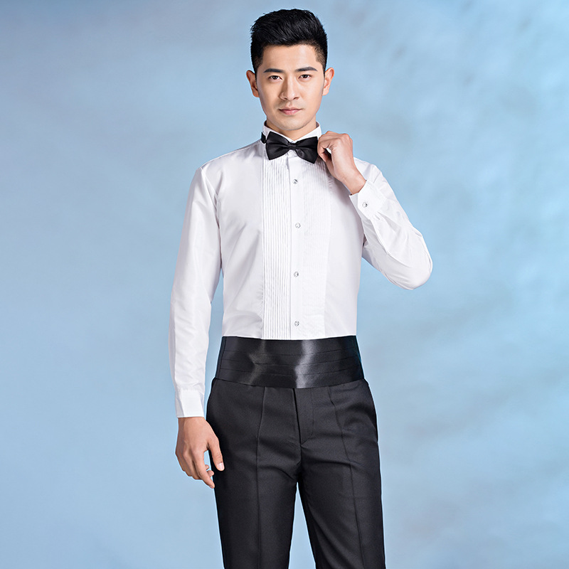 긴 소매 흰색 슬림 핏 셔츠 남자 무대 코러스 공연 원피스 도브 테일 웨딩 베스트 맨 원피스 주름 셔츠