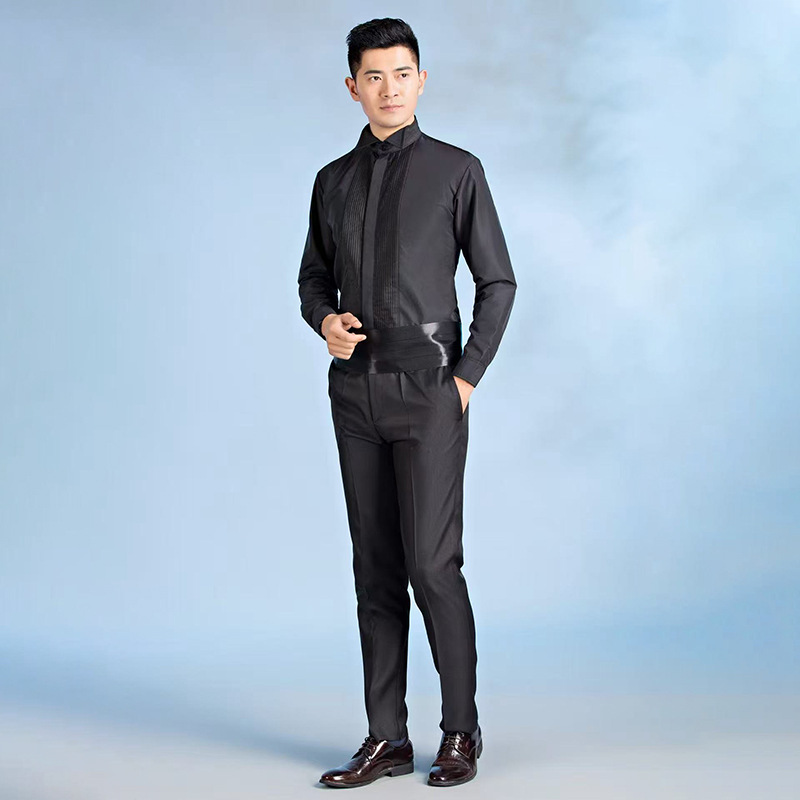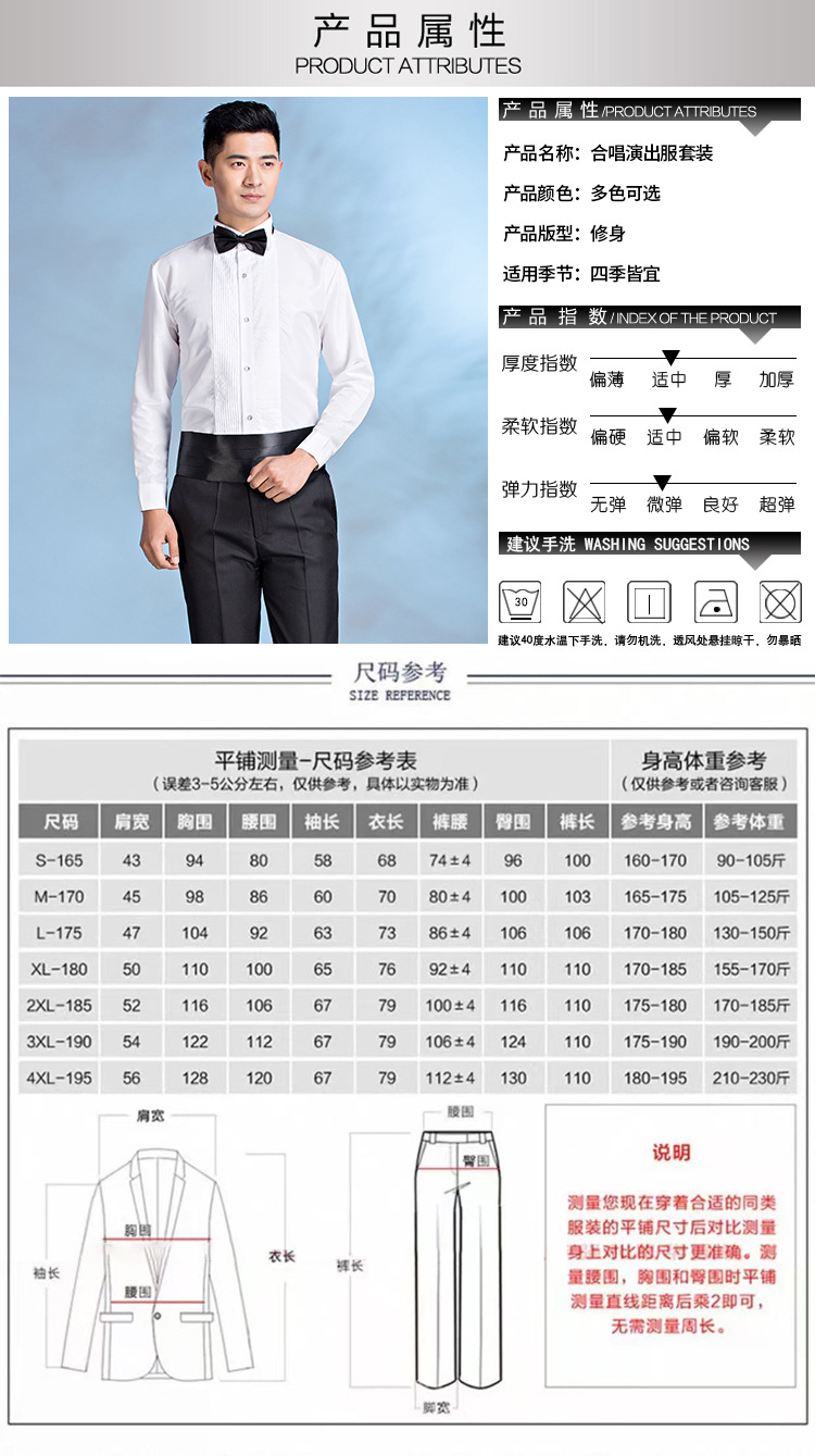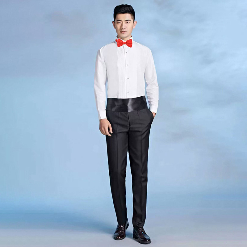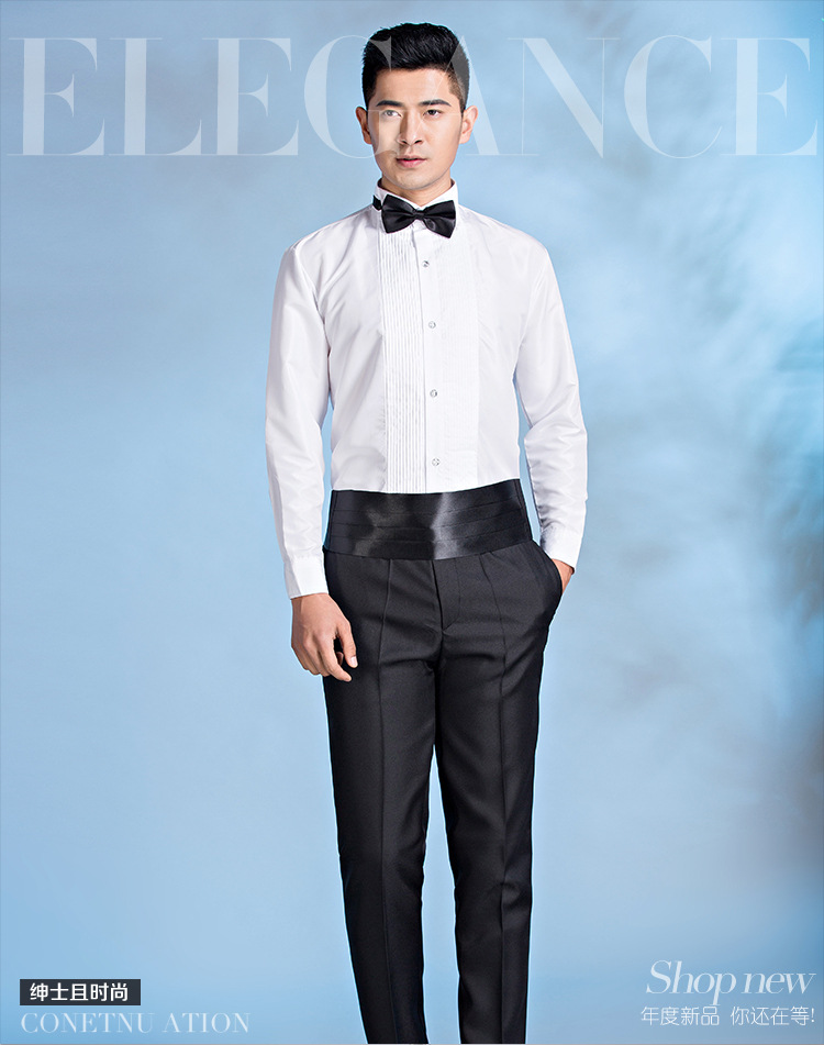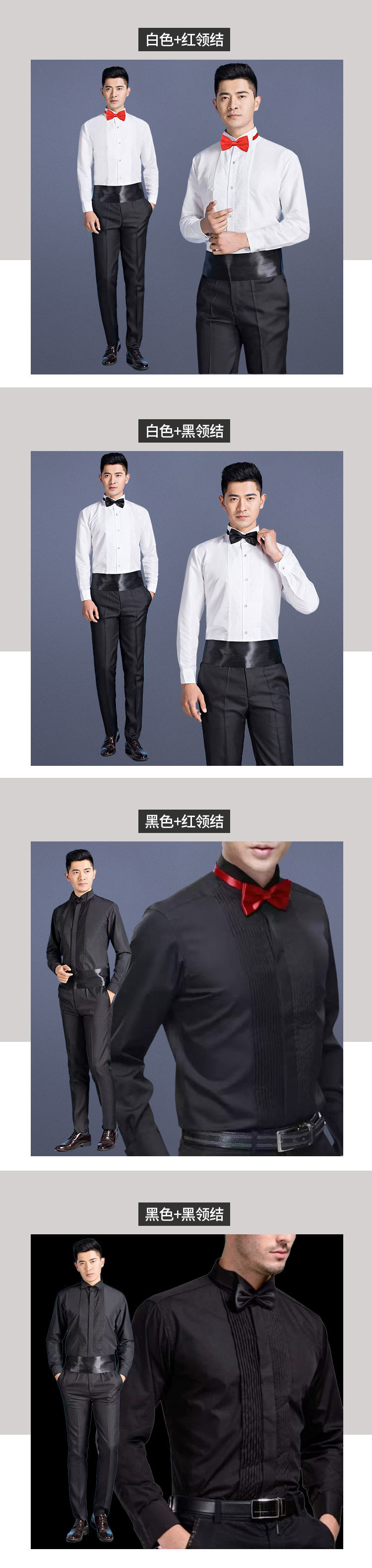 긴 소매 흰색 슬림 핏 셔츠 남자 무대 코러스 공연 원피스 도브 테일 웨딩 베스트 맨 원피스 주름 셔츠