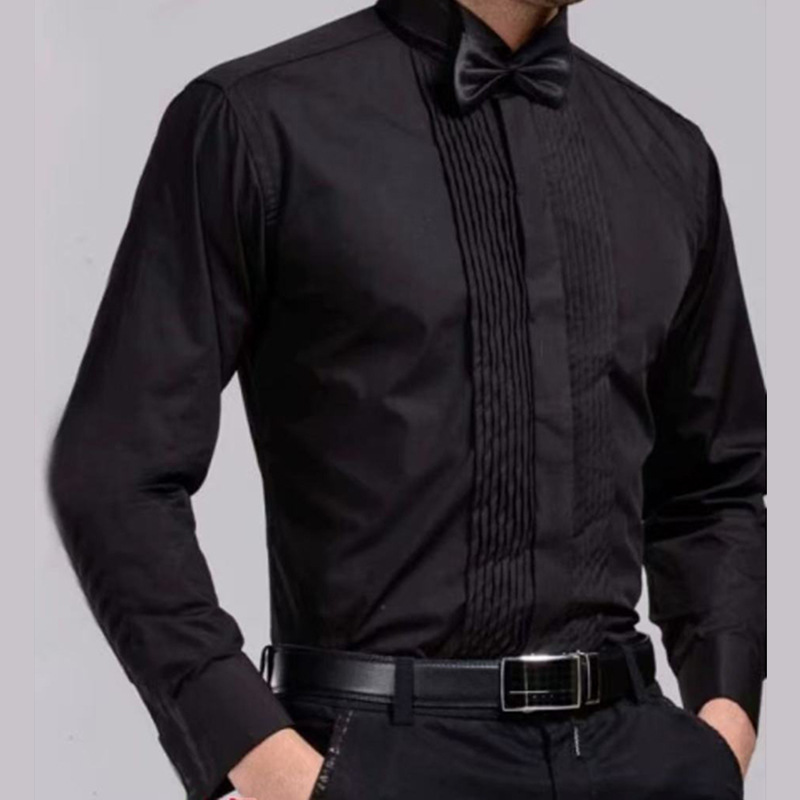 긴 소매 흰색 슬림 핏 셔츠 남자 무대 코러스 공연 원피스 도브 테일 웨딩 베스트 맨 원피스 주름 셔츠스토어 가기