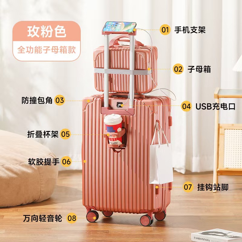 남성과 여성을위한 새로운 다기능 대용량 수하물 튼튼하고 내구성 가방 유니버설 휠 트롤리 케이스 암호 상자