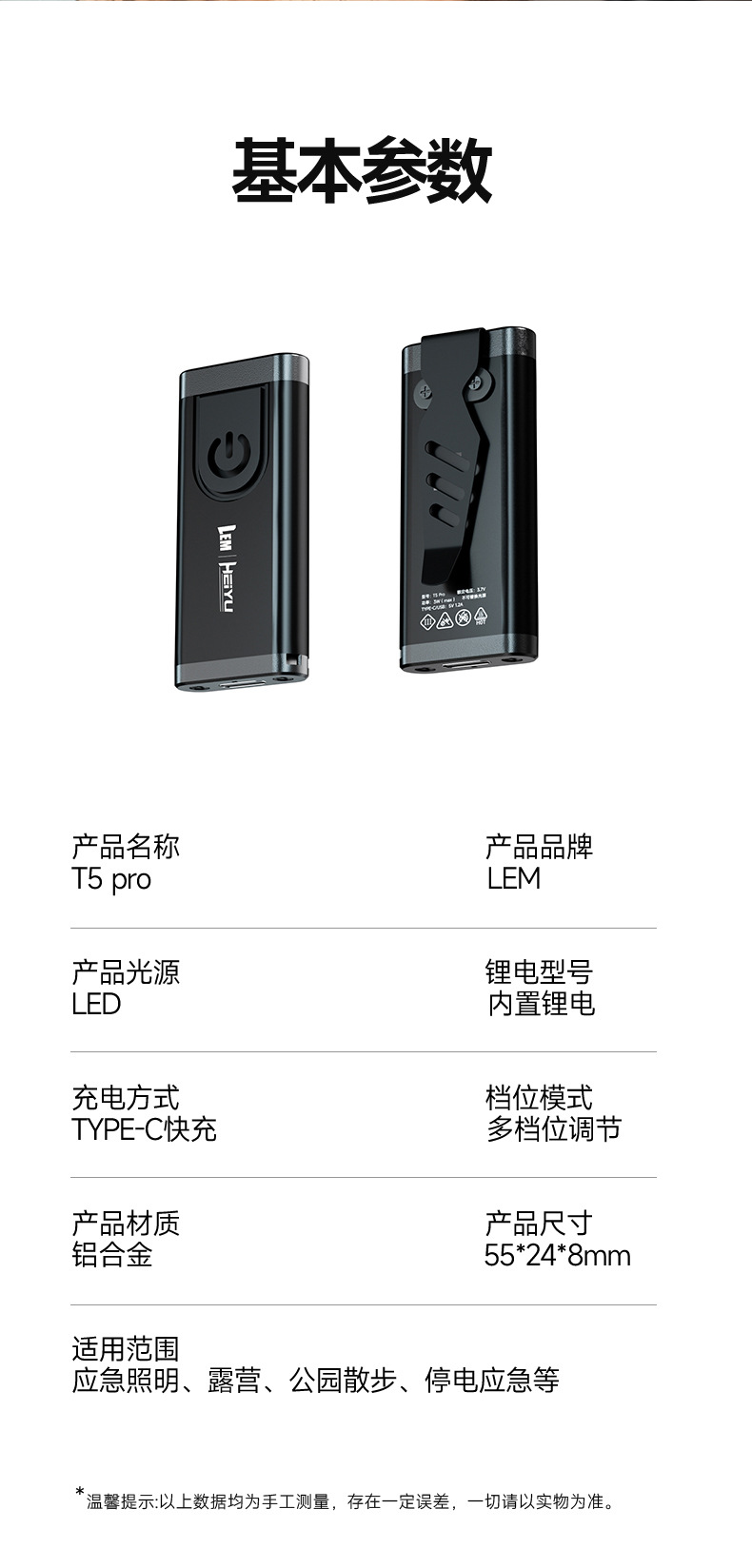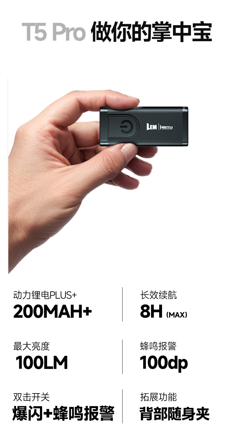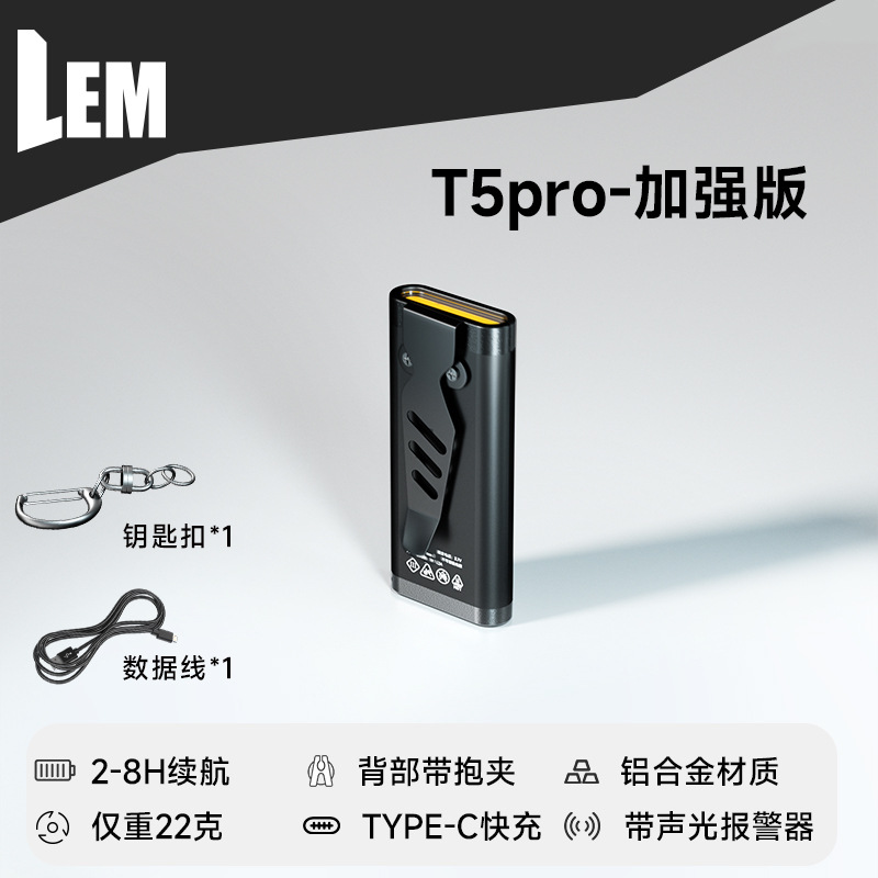 • [T5pro 향상된 버전] 소리 및 빛 알람 포함/2-8H 배터리 수명/가방 클립 포함/키체인 포함/무게 22g