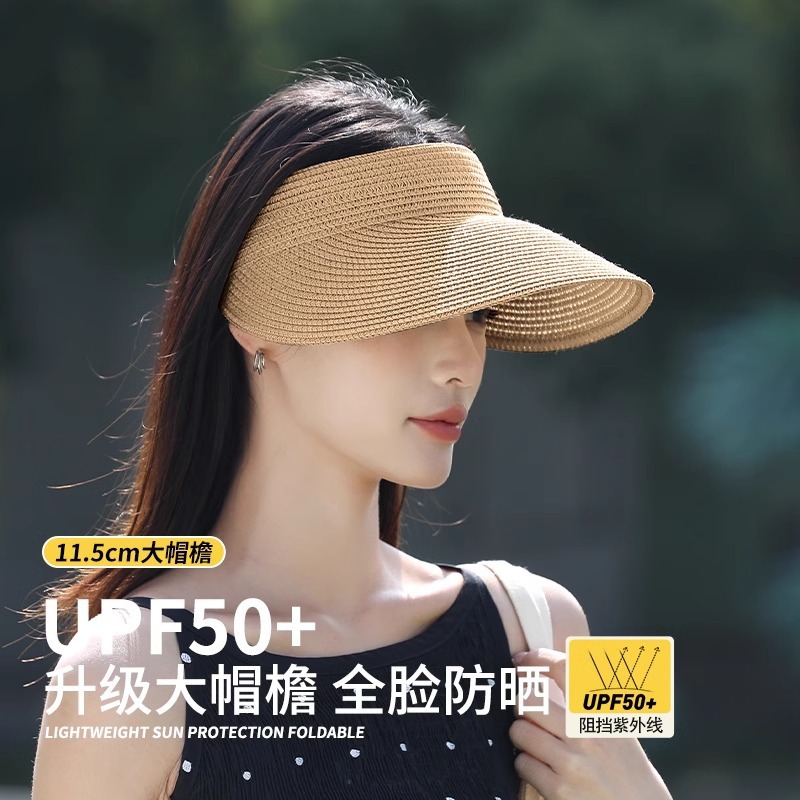 여름철 여성용 야외 해변 햇빛 가리개 밀짚모자, 넓은 챙, 자외선 차단, 빈 상단 모자, 라피아 헤어밴드 모자
