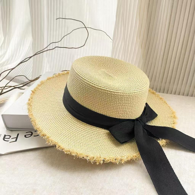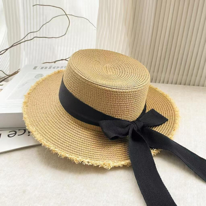 • 로우 엣지 보우 밀짚모자 카드 컬러 블랙 벨트