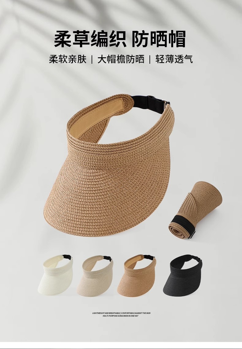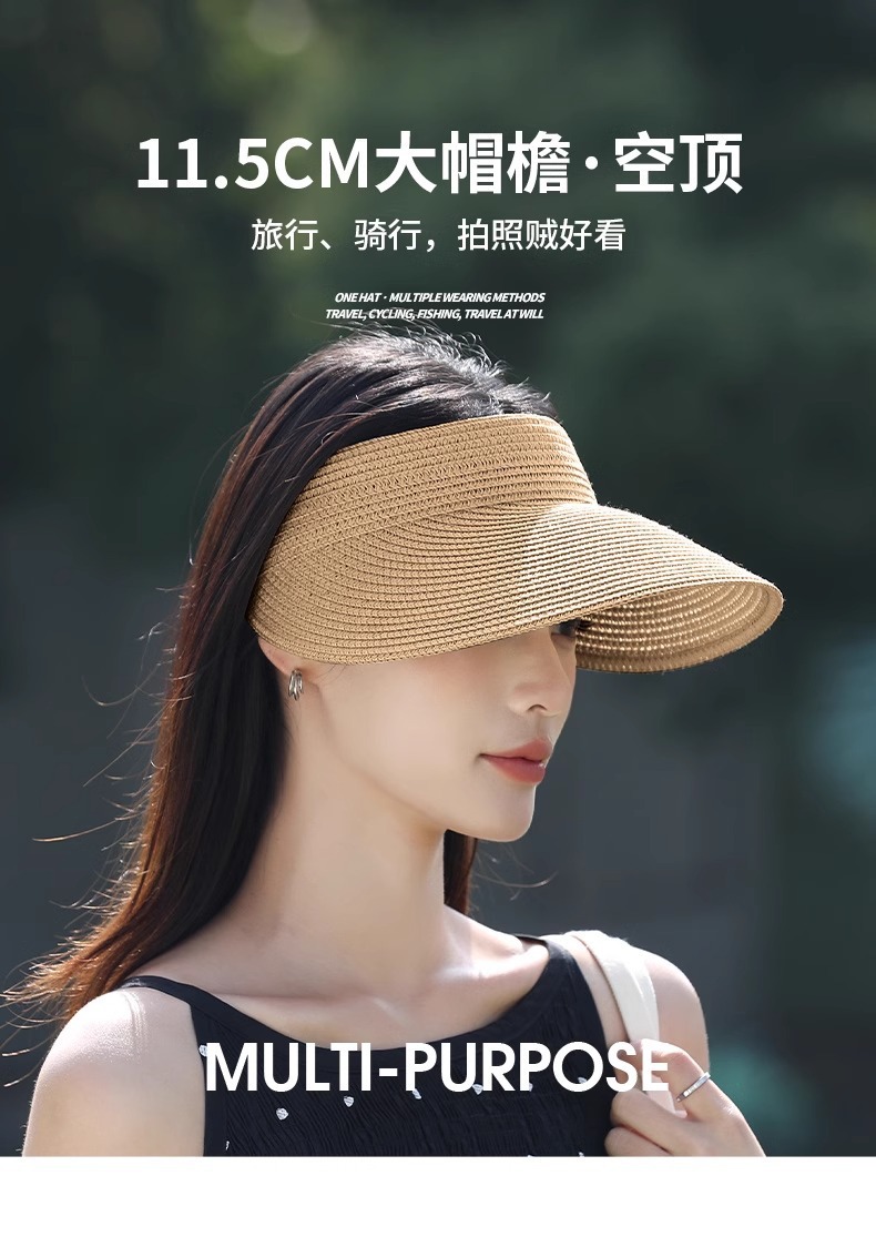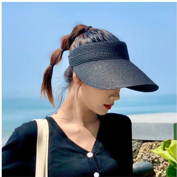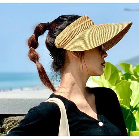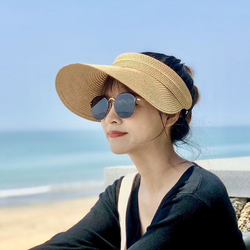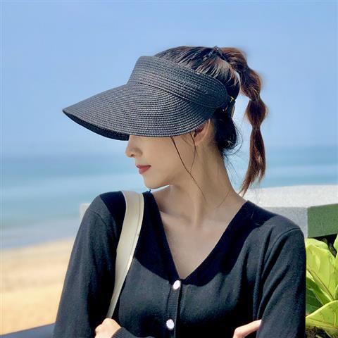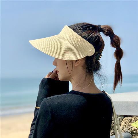여름철 여성용 야외 해변 햇빛 가리개 밀짚모자, 넓은 챙, 자외선 차단, 빈 상단 모자, 라피아 헤어밴드 모자스토어 가기