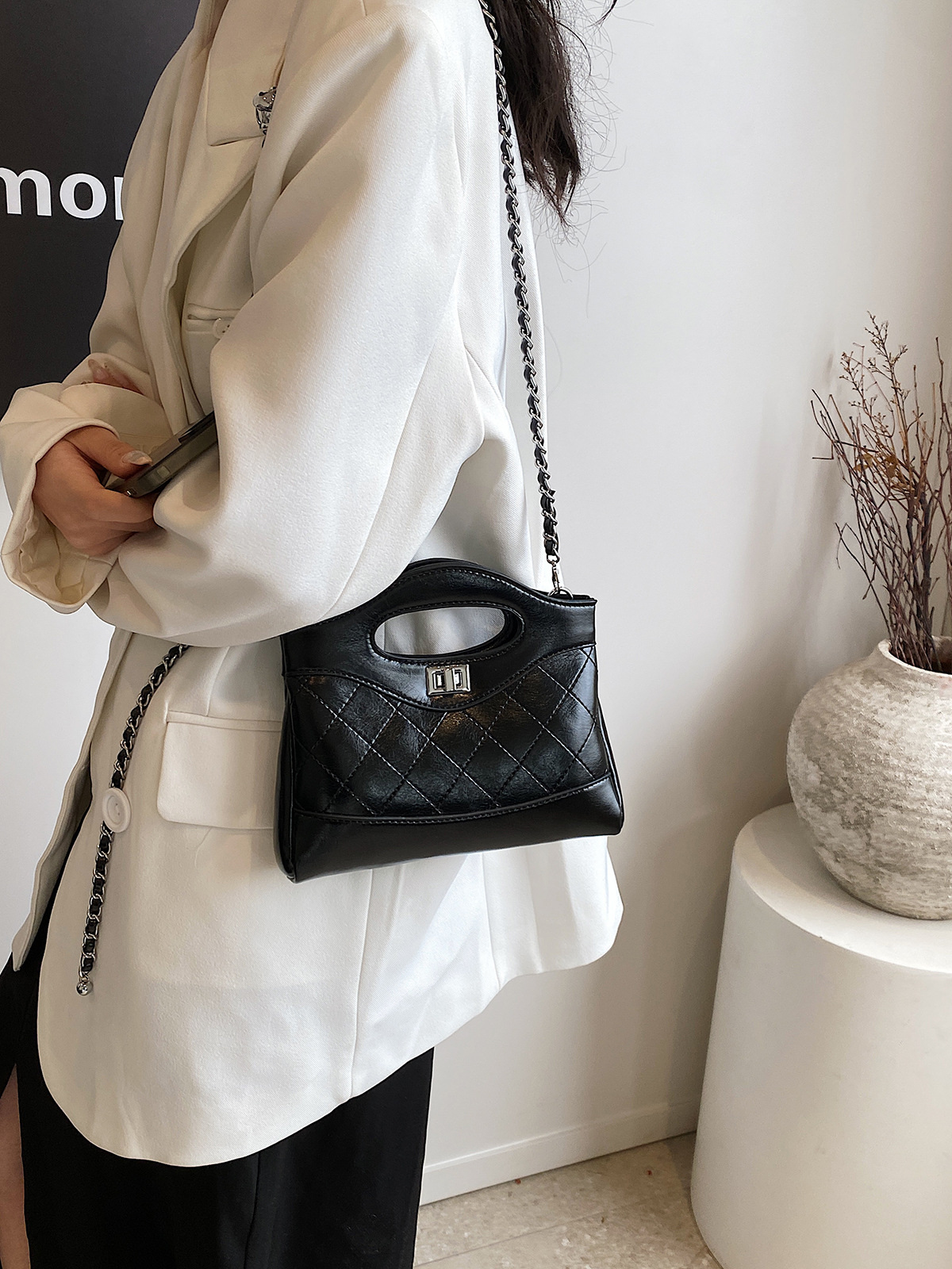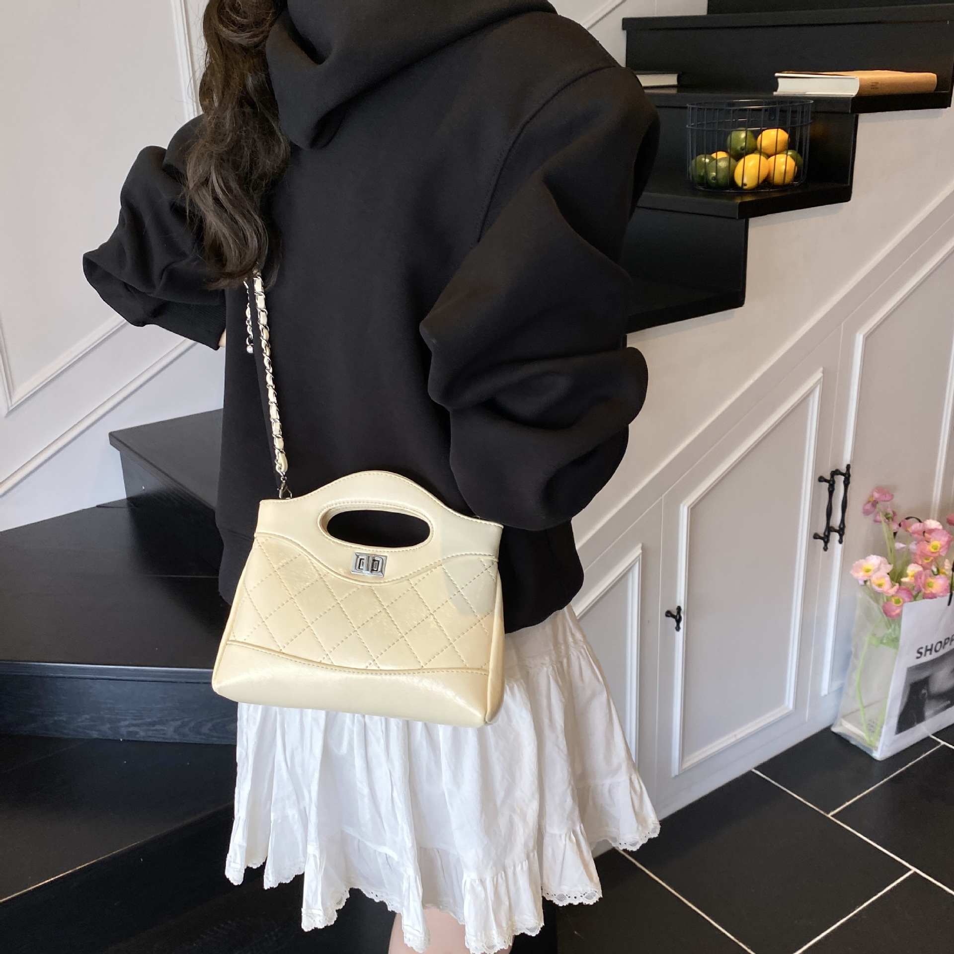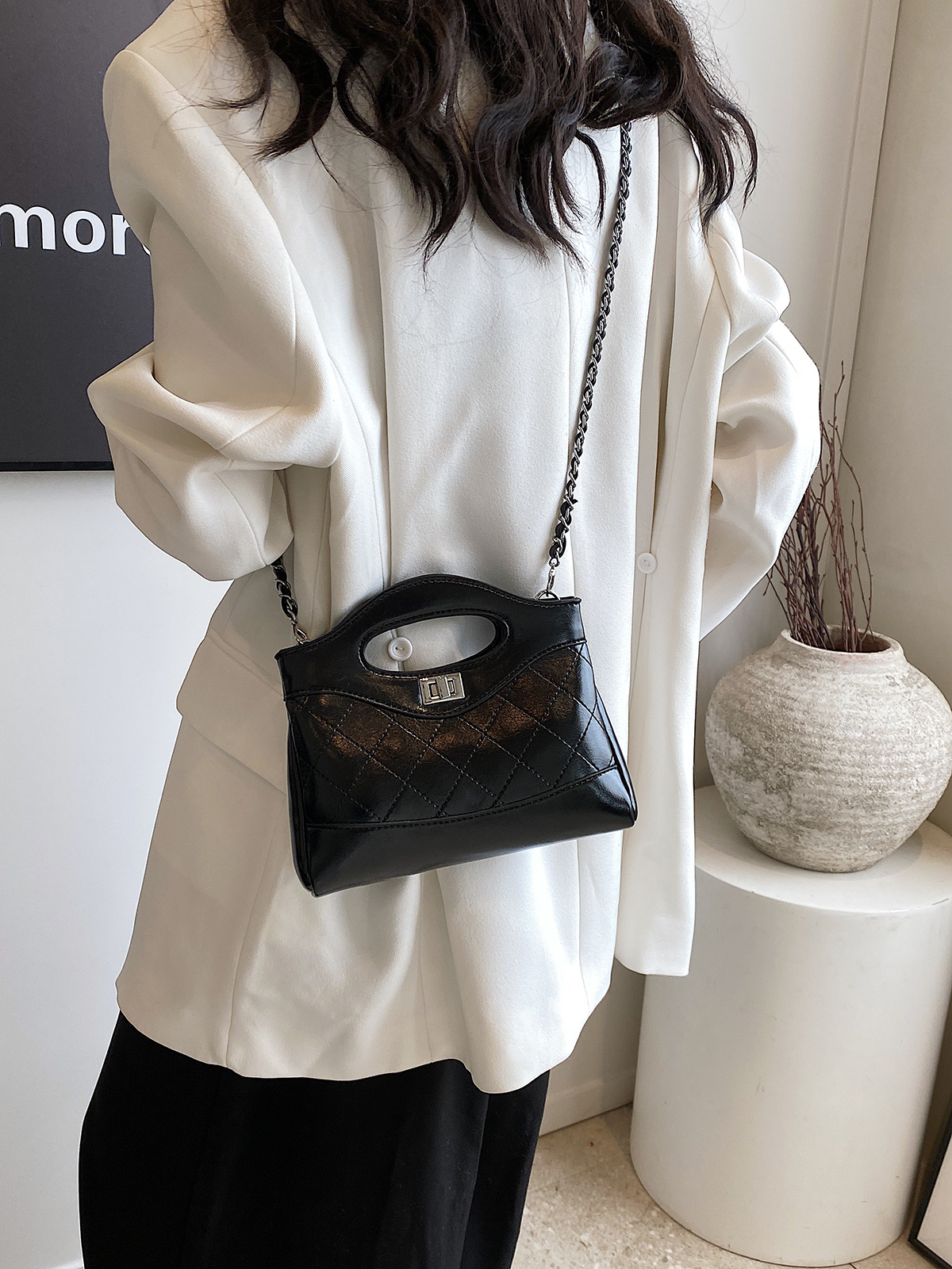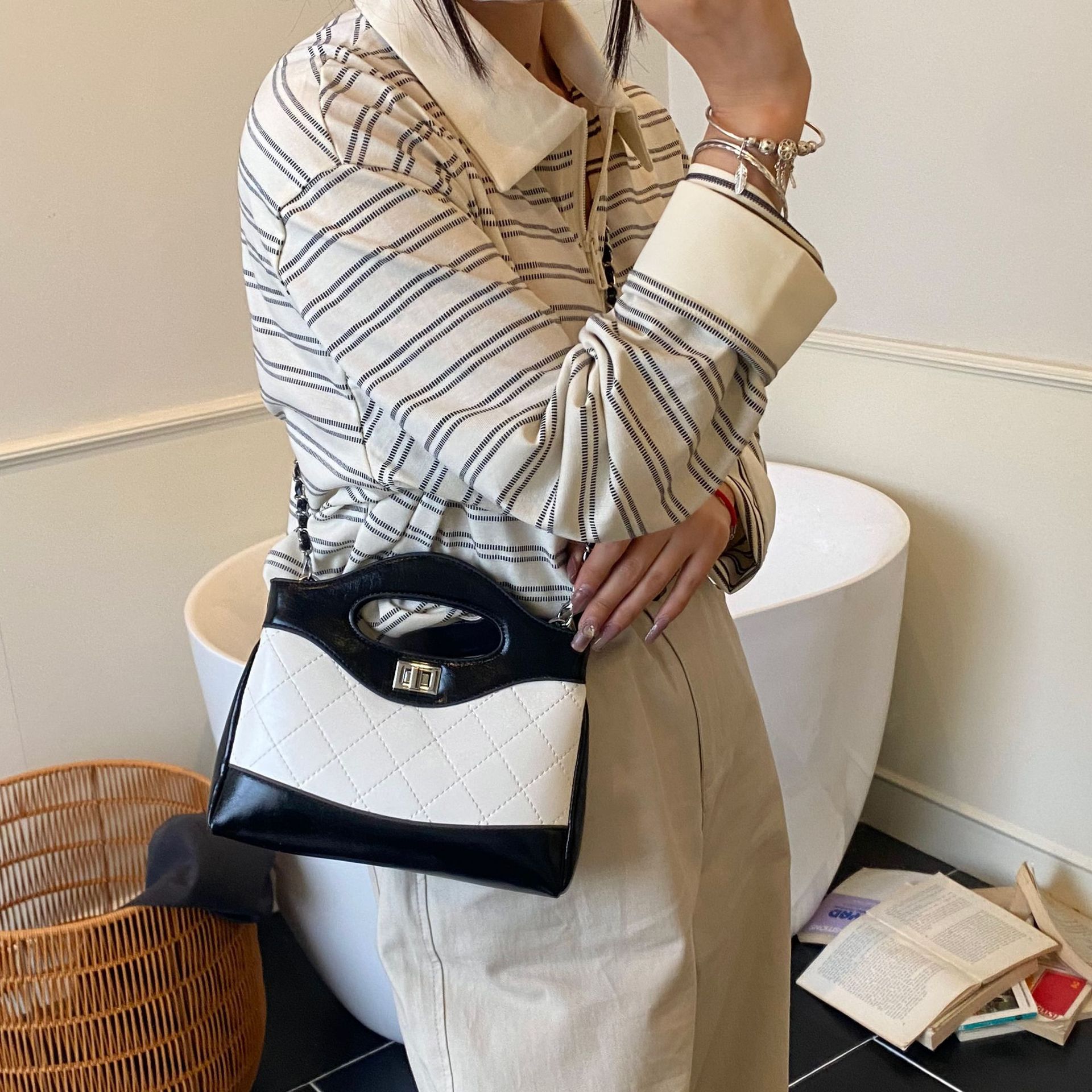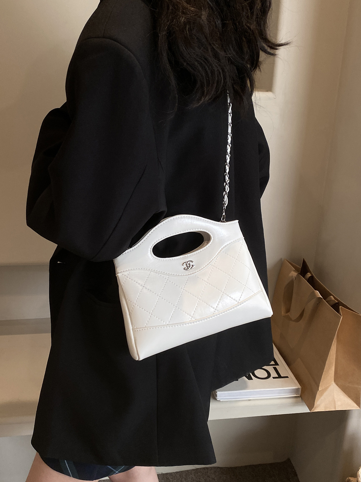 2025 새로운 올 매치 하이 엔드 숄더 백 샤넬 스타일 간단한 패션 여성 가방 다이아몬드 격자 무늬 체인 크로스 바디 백스토어 가기