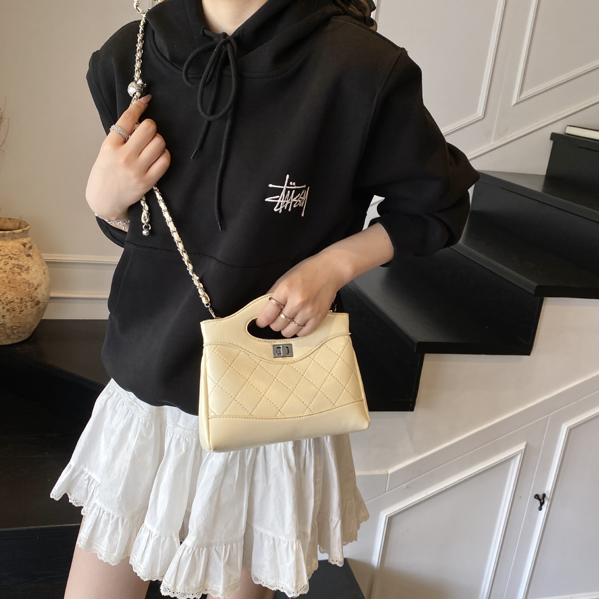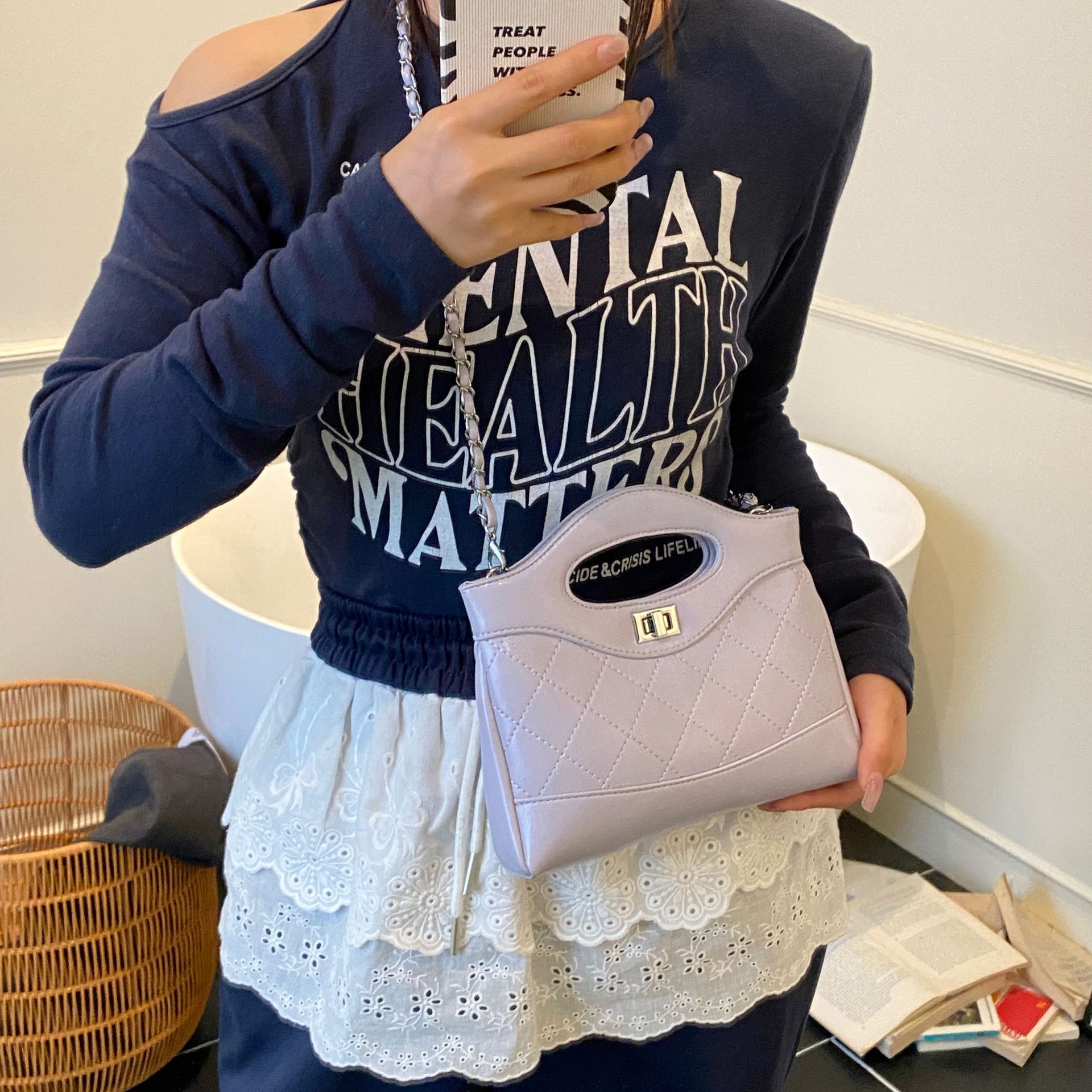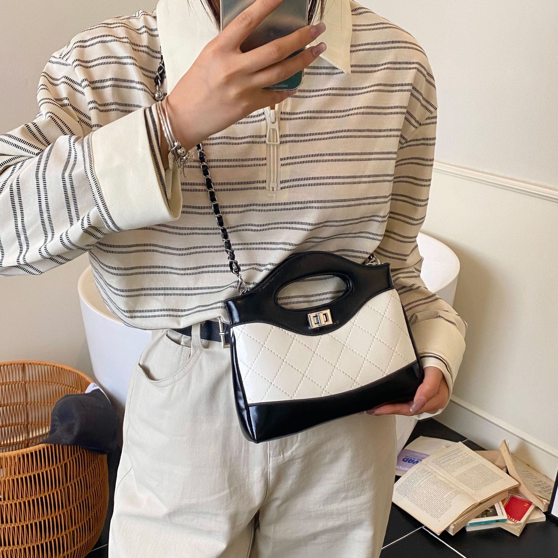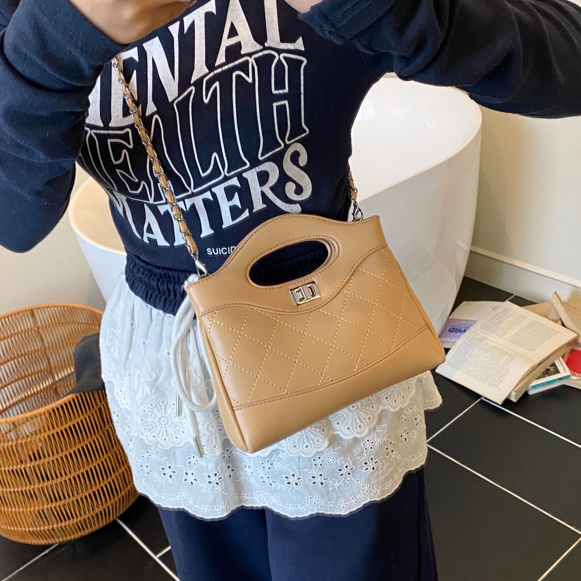 2025 새로운 올 매치 하이 엔드 숄더 백 샤넬 스타일 간단한 패션 여성 가방 다이아몬드 격자 무늬 체인 크로스 바디 백