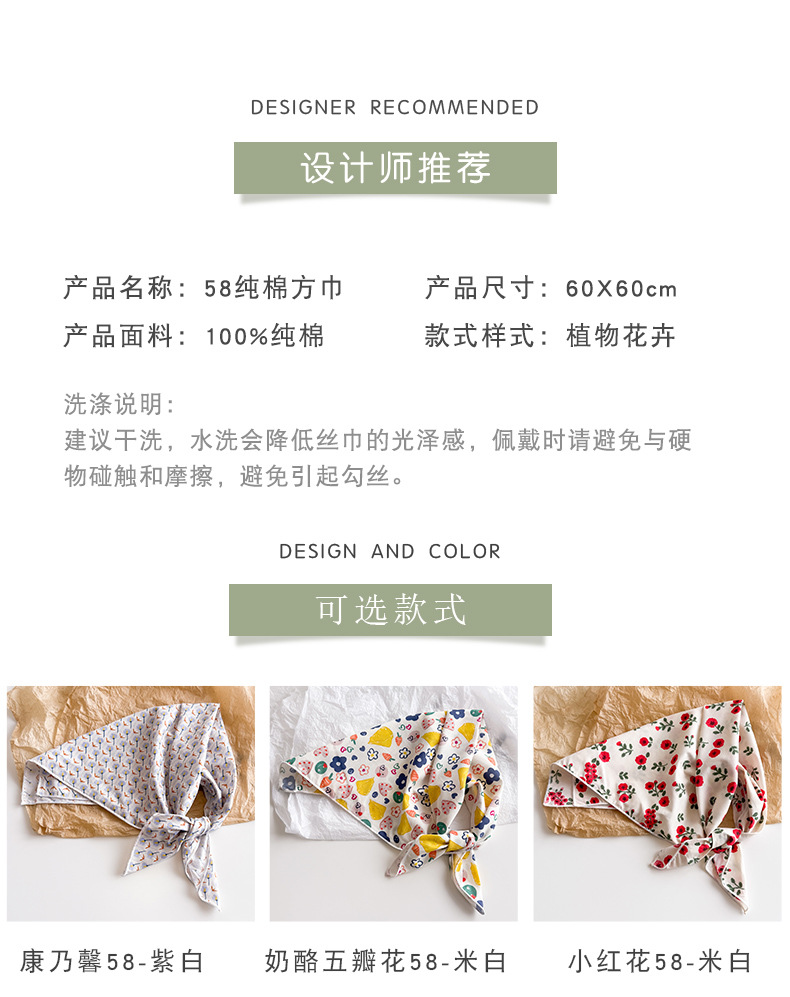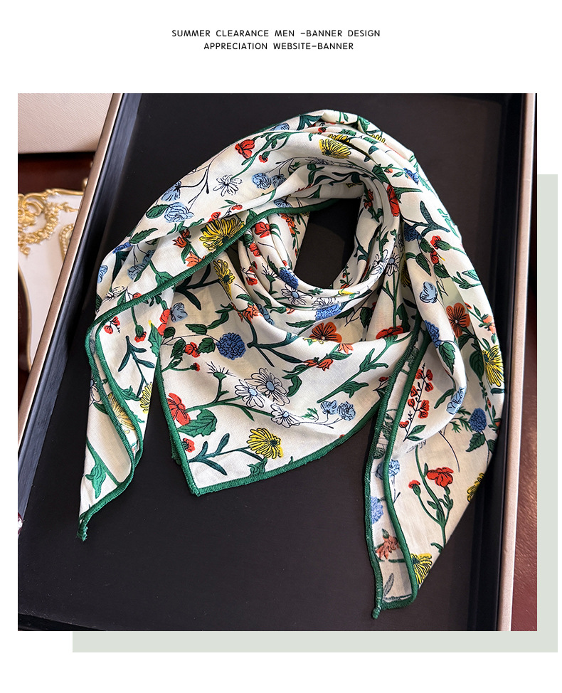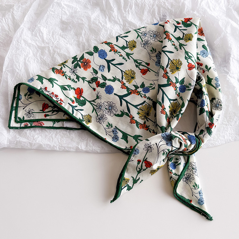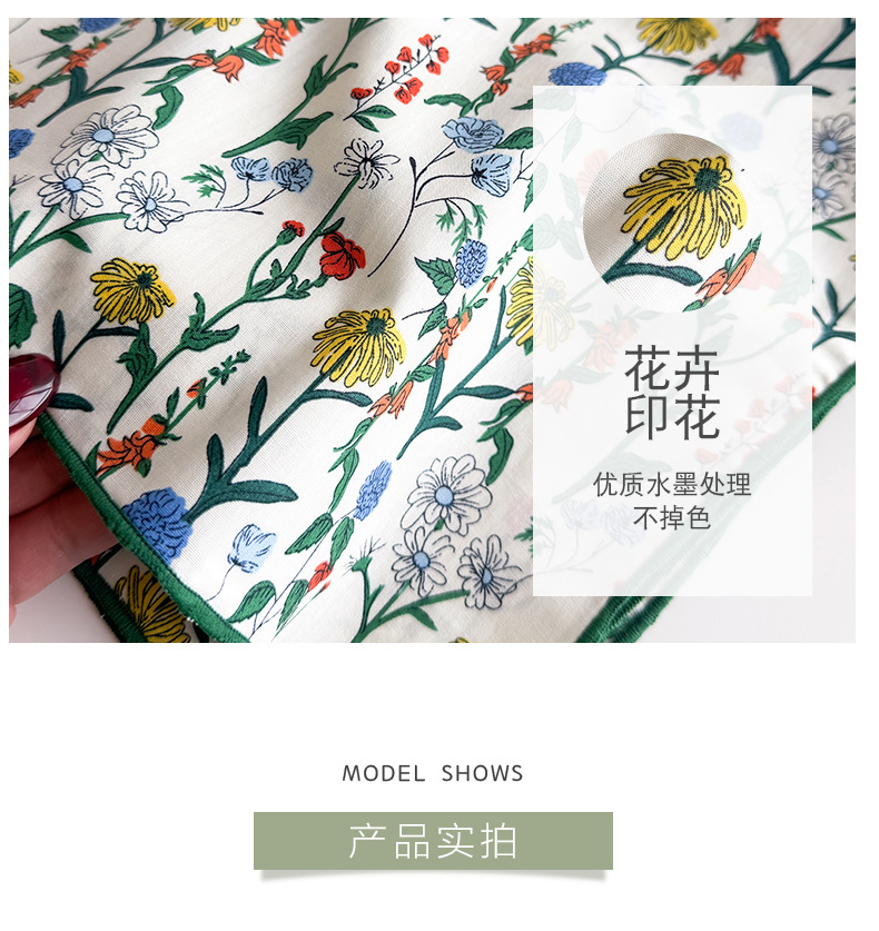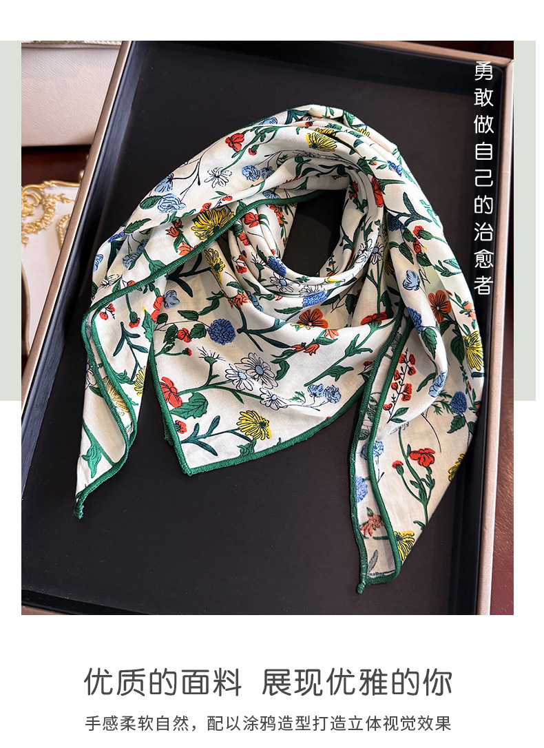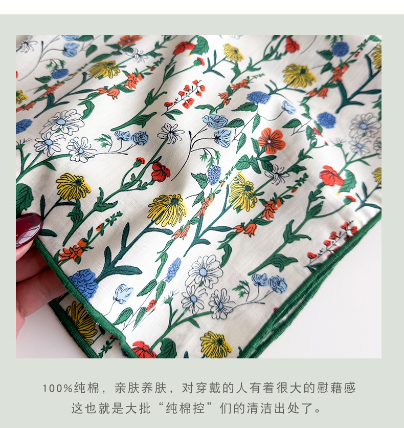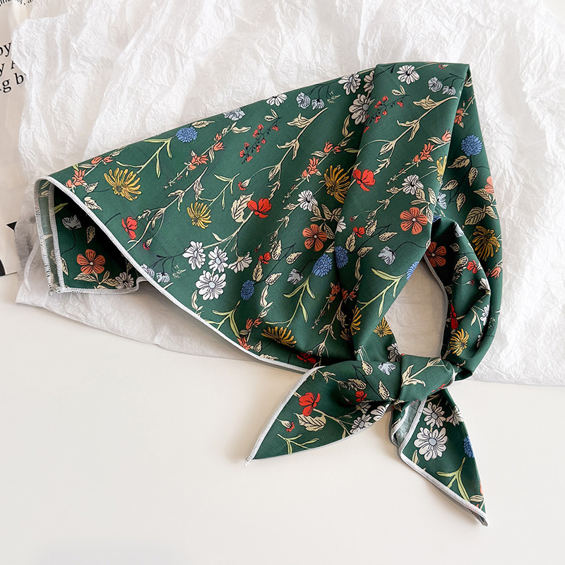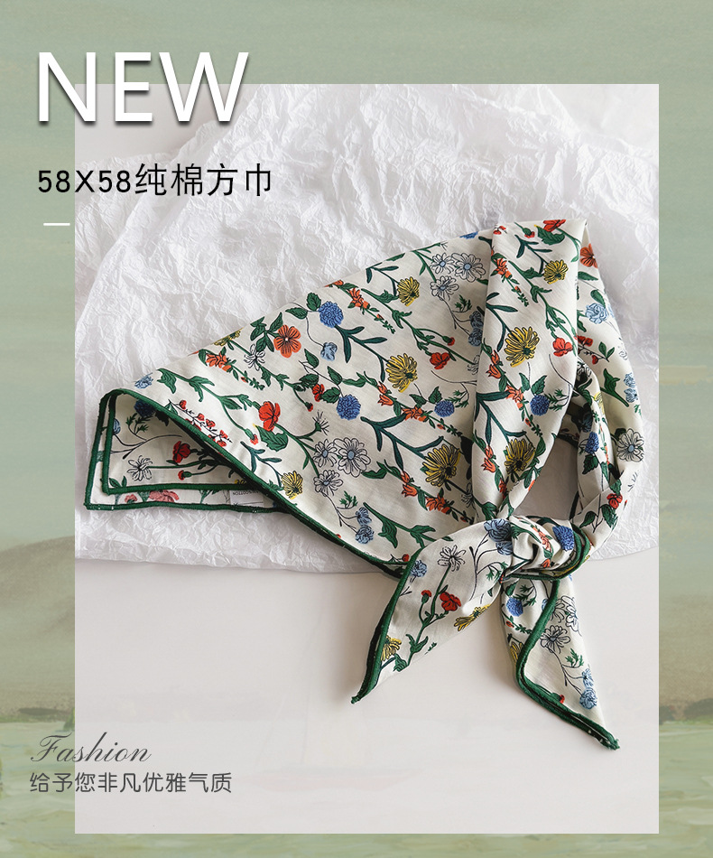 한국식 새로운 순면 작은 광장 스카프 여성의 녹색 봄 가을과 겨울 목 보호 스카프 얇은 스카프스토어 가기