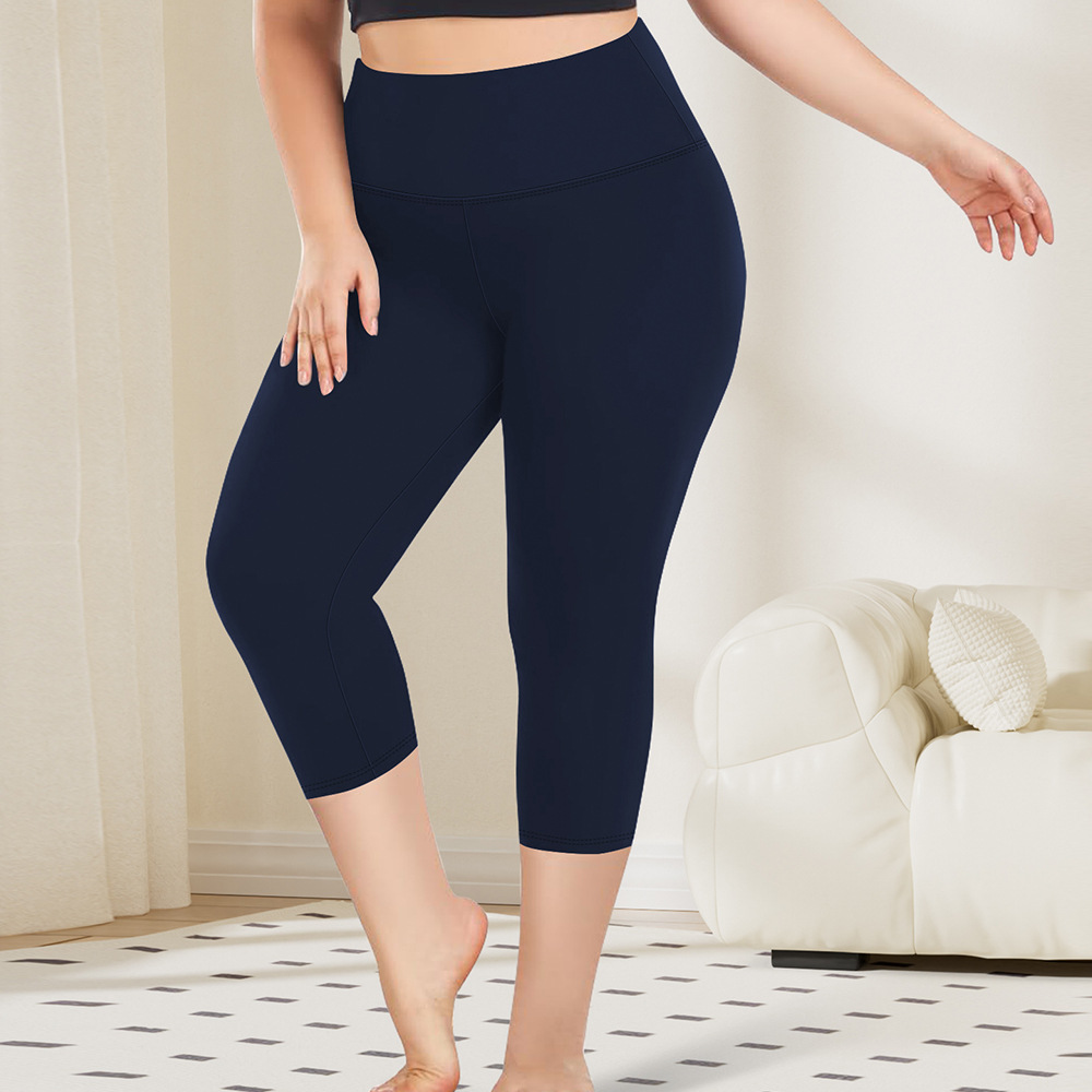 • 네이비 블루 플러스 사이즈 요가 팬츠