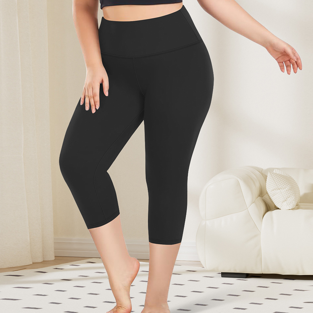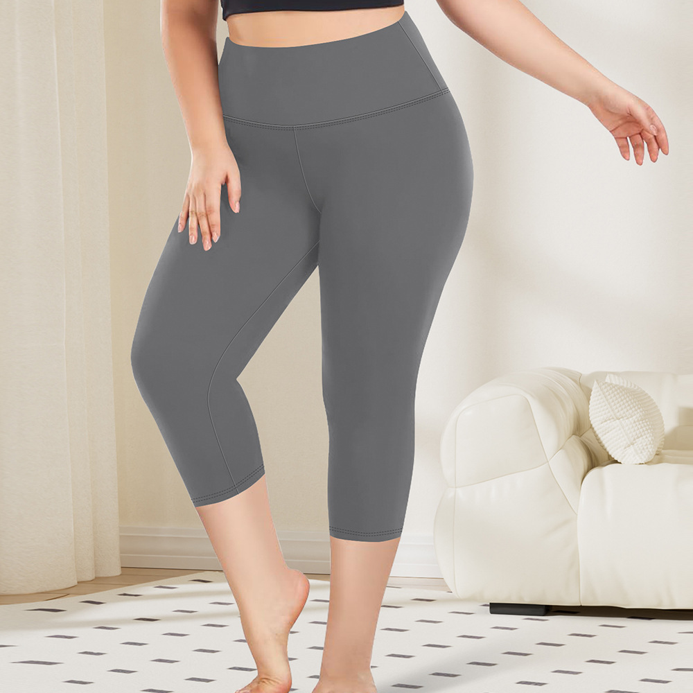 유럽과 미국의 플러스 사이즈 요가 바지 여성 피트니스 1XL-5XL 여름 높은 허리 엉덩이 리프팅 스포츠 타이트 7 포인트 레깅스