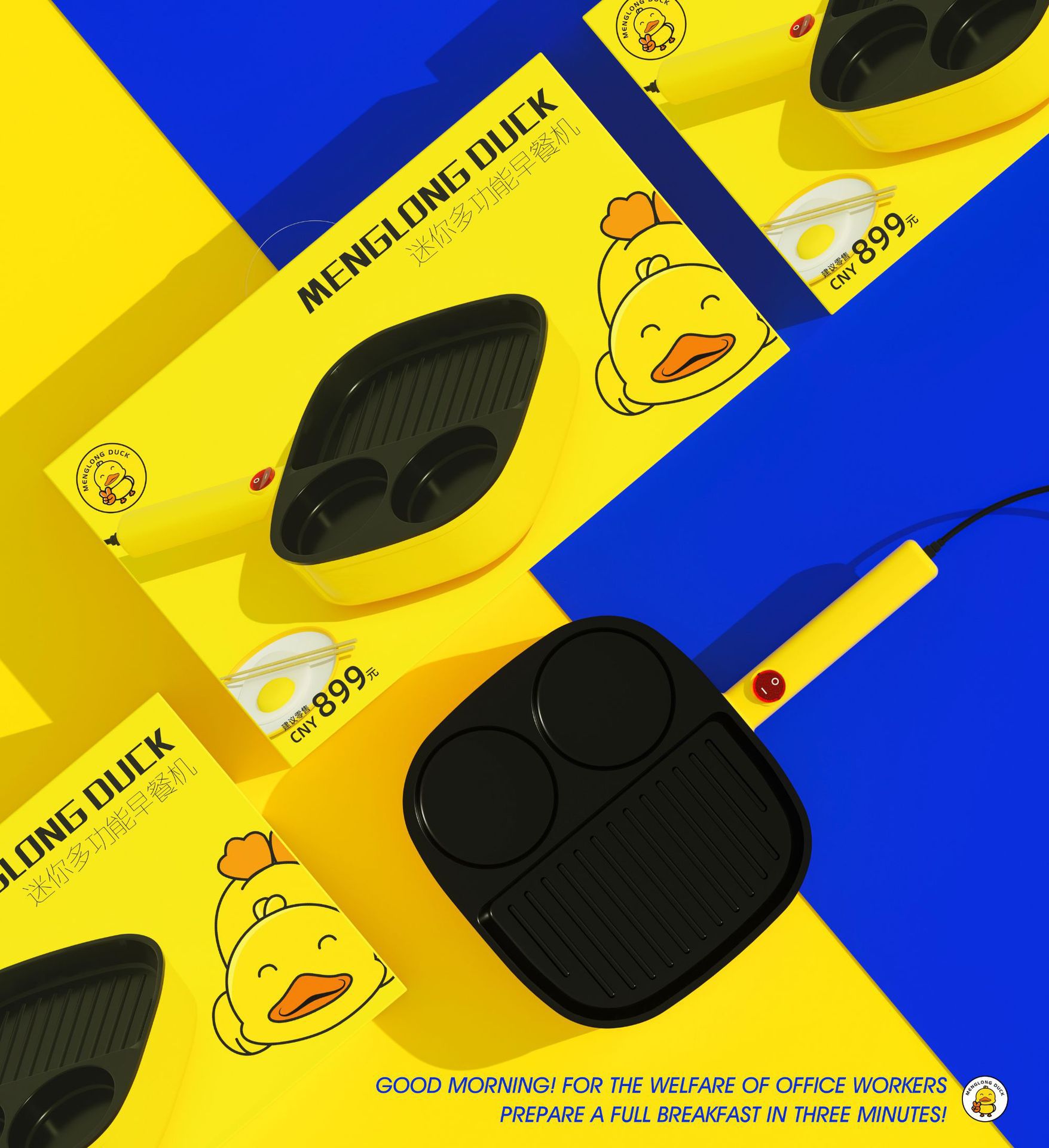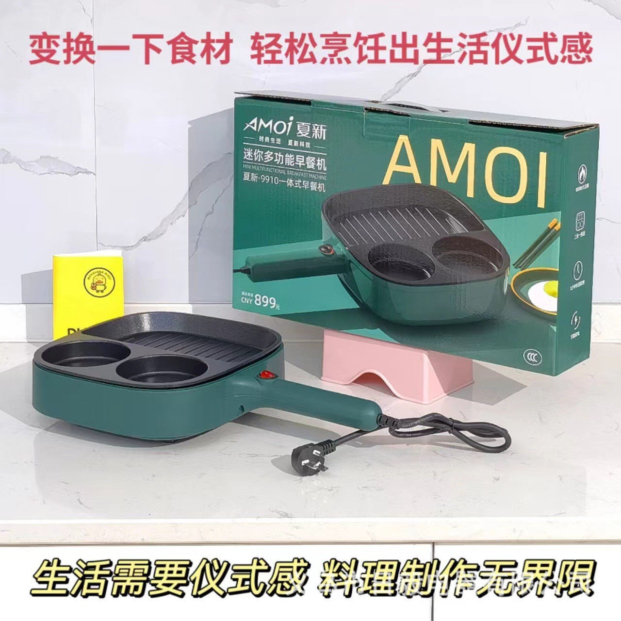 작은 노란색 오리 아침 식사 기계 다기능 가정용 계란 토스트 빵 침 드라이버 샌드위치 기계 와플 튀김 기계 도매스토어 가기