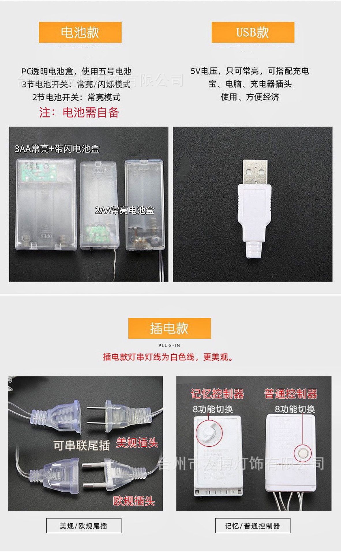• 배터리 모델 - 3.2m개의 조명, 3개의 섹션, 플래시 포함