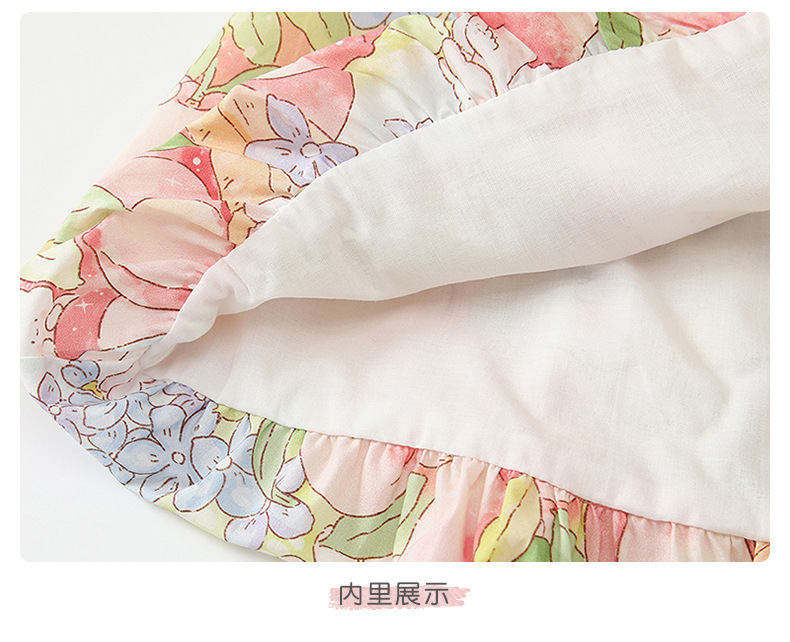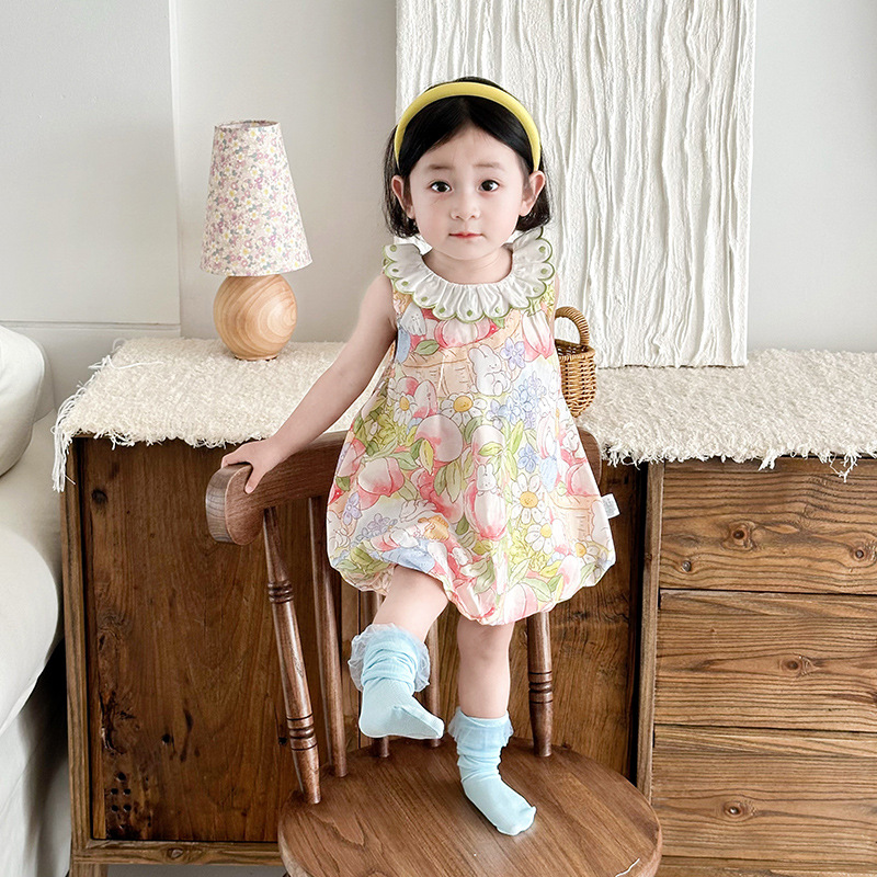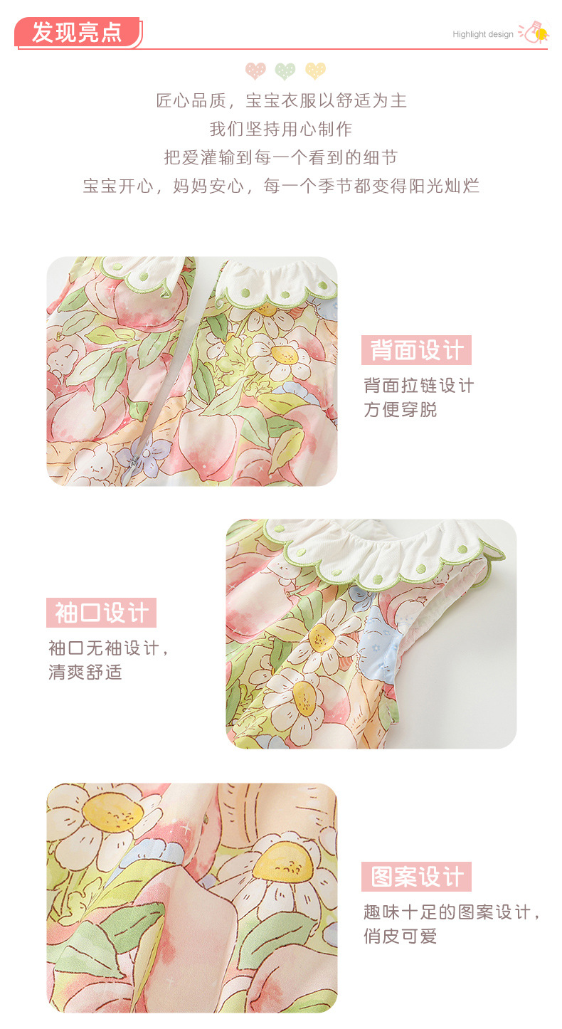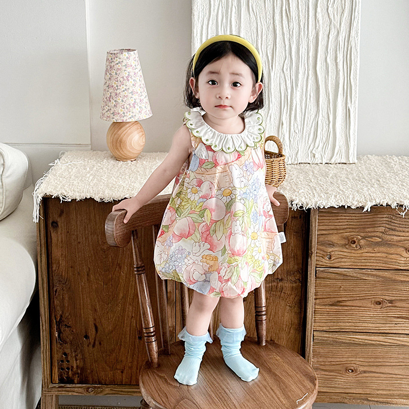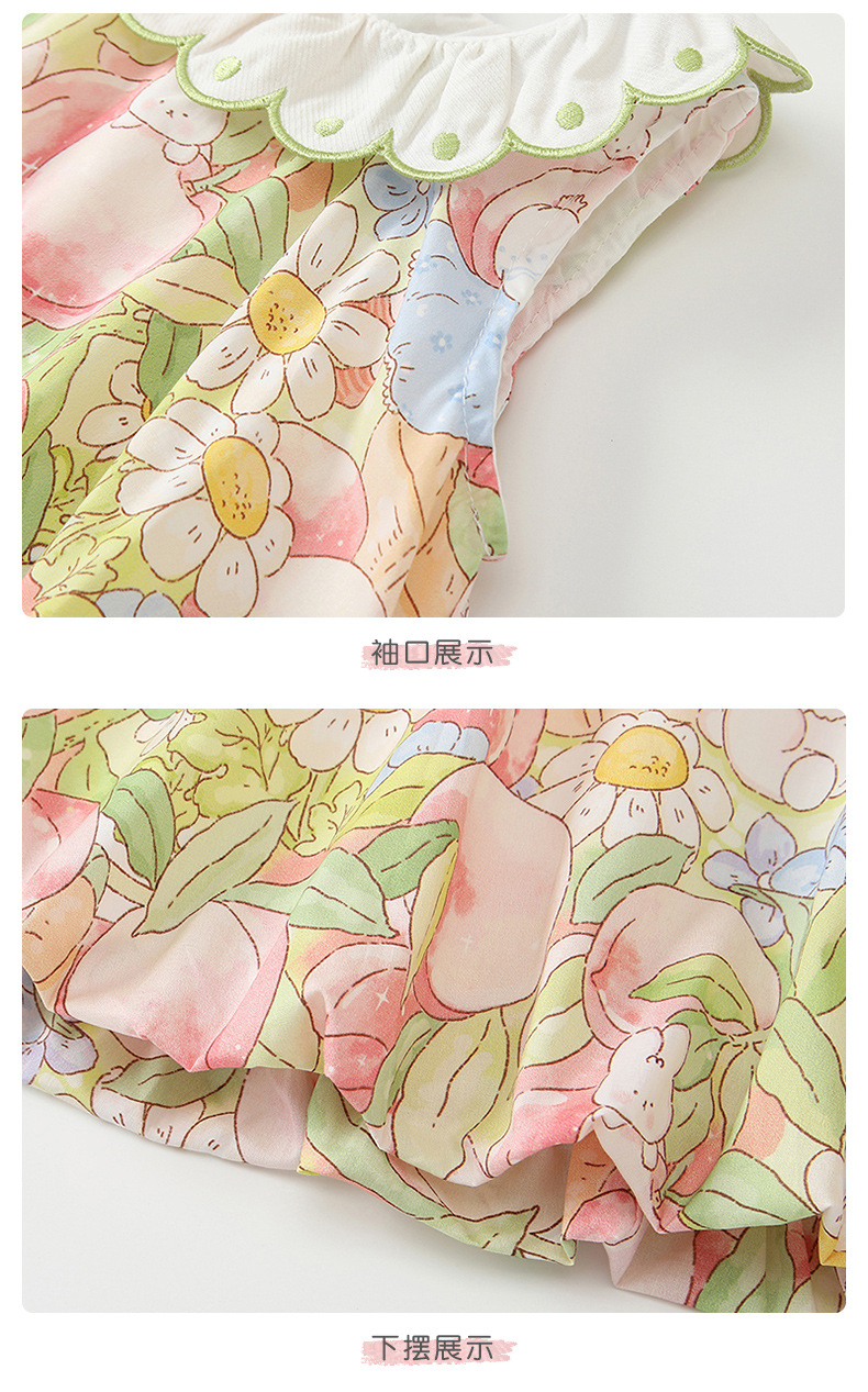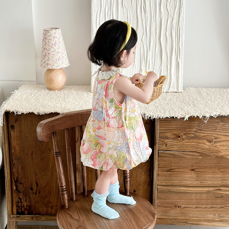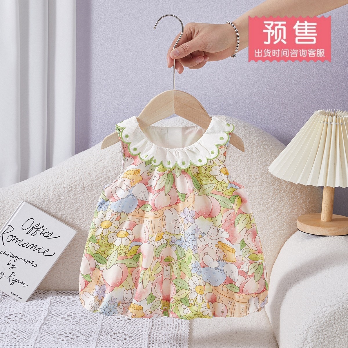 여름 어린이 착용 새로운 여성 보물 조끼 원피스 웨이브 칼라 전체 인쇄 소녀 스커트 어린이 여름 복장