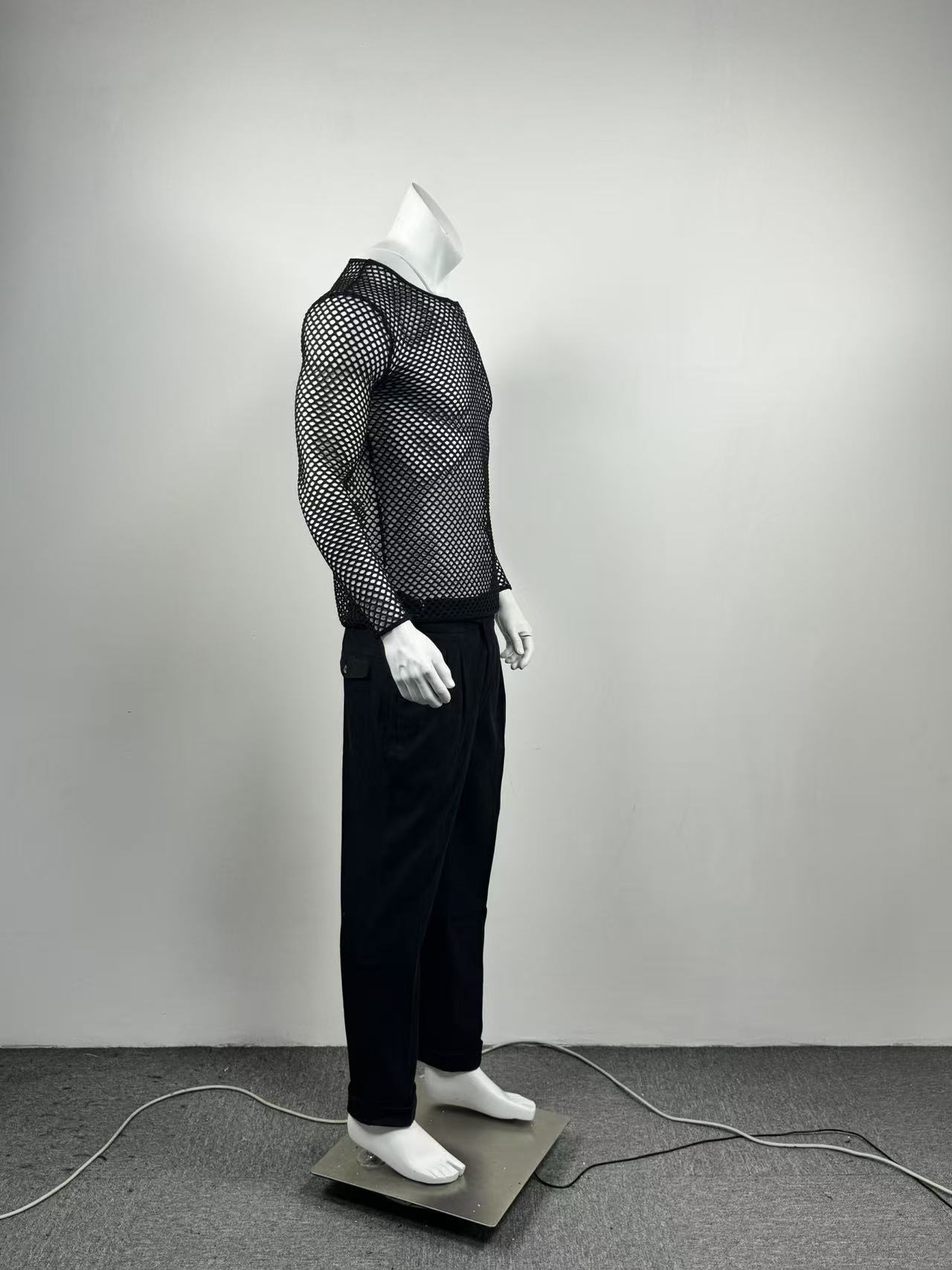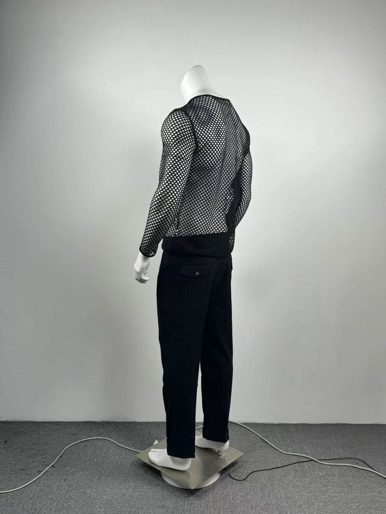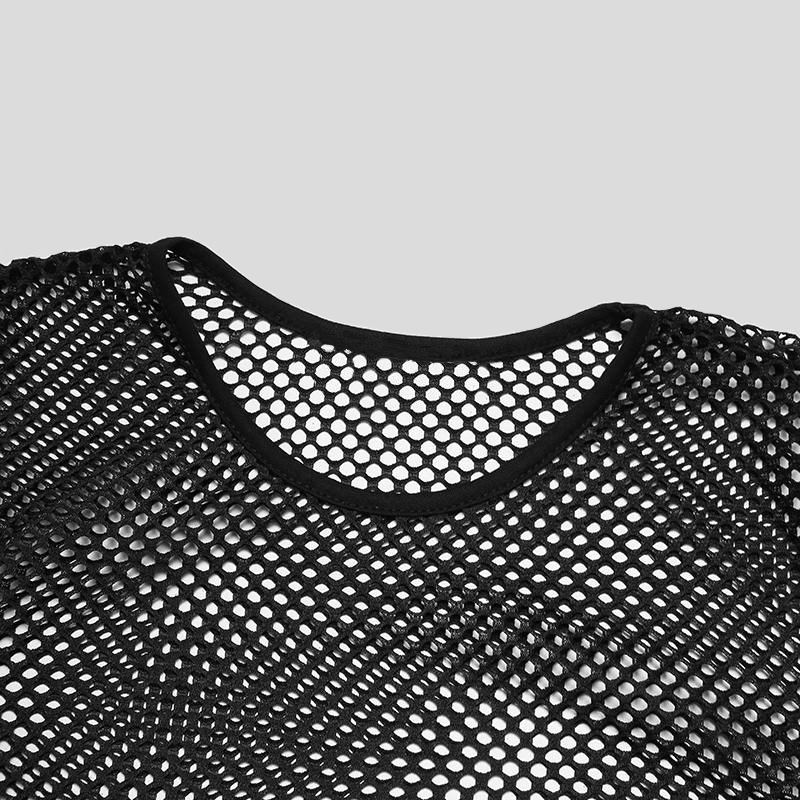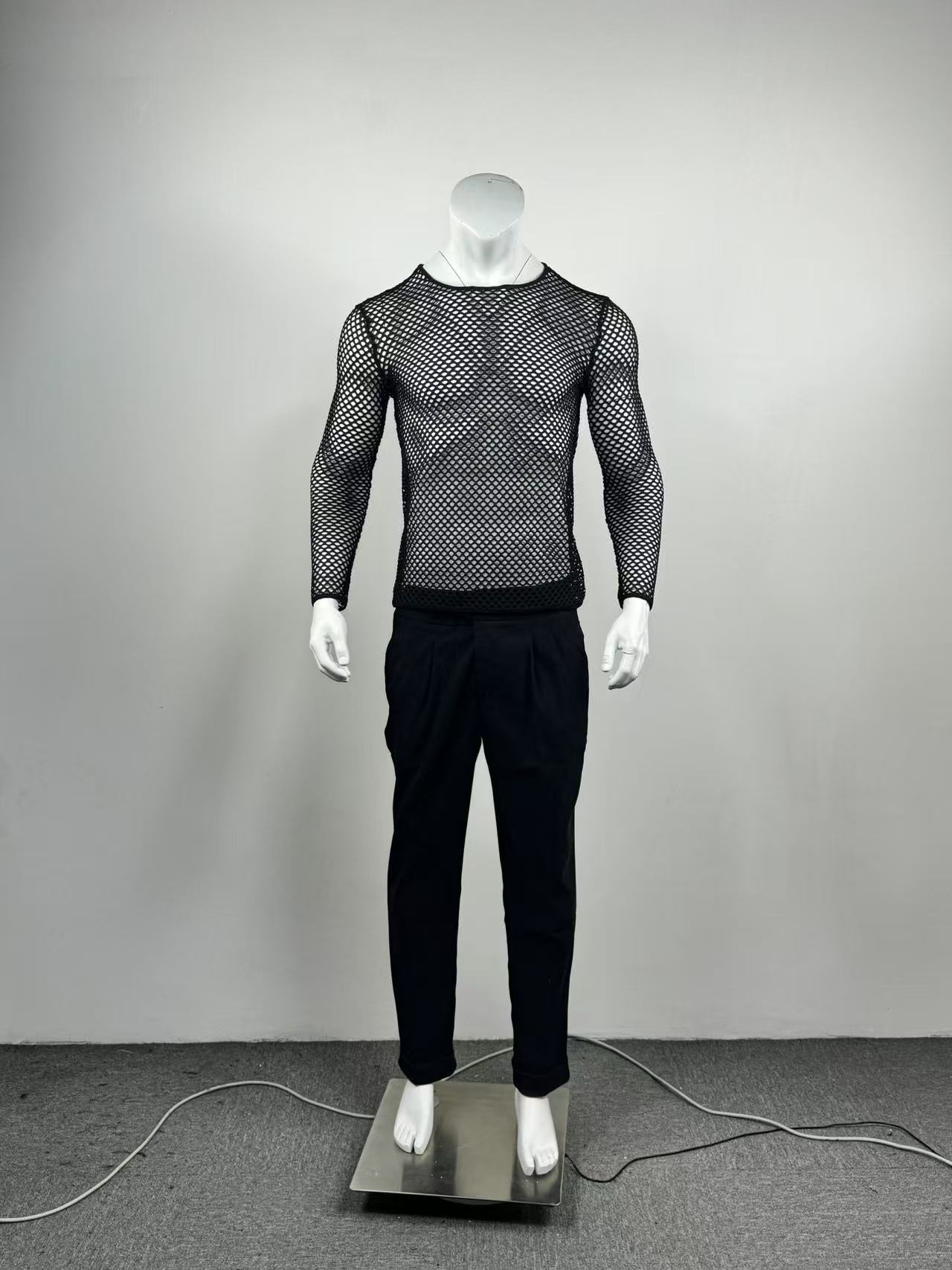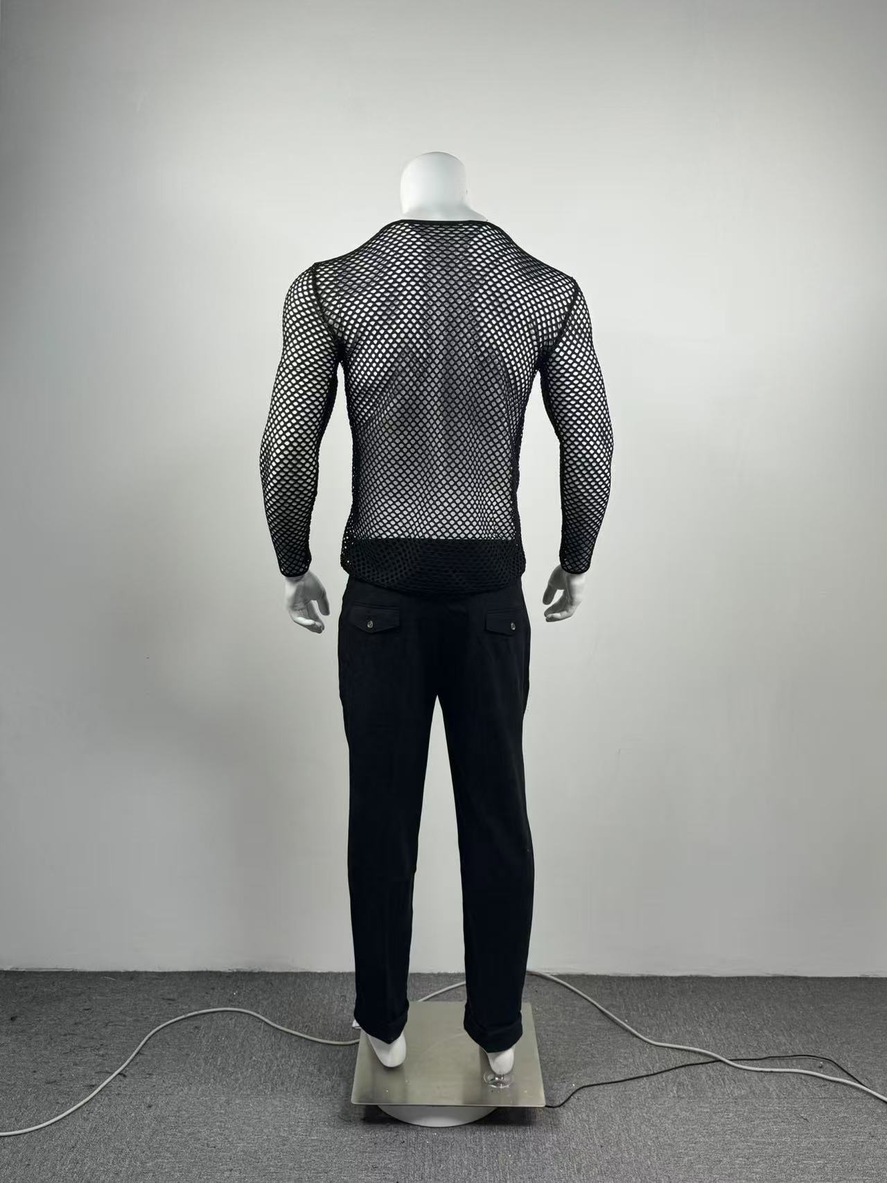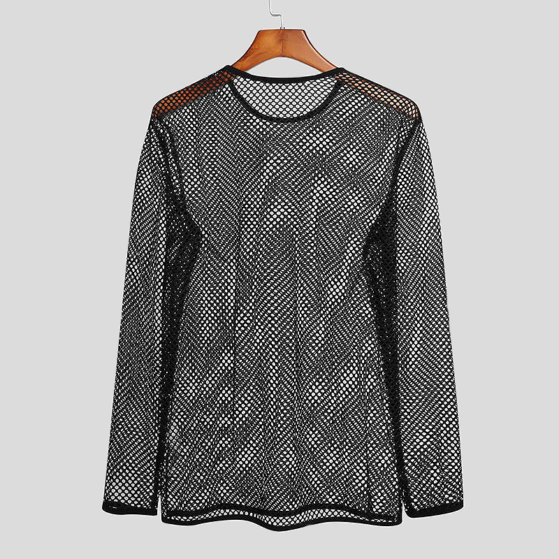국경을 넘는 유럽과 미국 남성 메쉬 긴팔 어깨 원근법 티셔츠 섹시한 밤 옷 피트니스 통기성 Fishnet 할로우 티셔츠스토어 가기