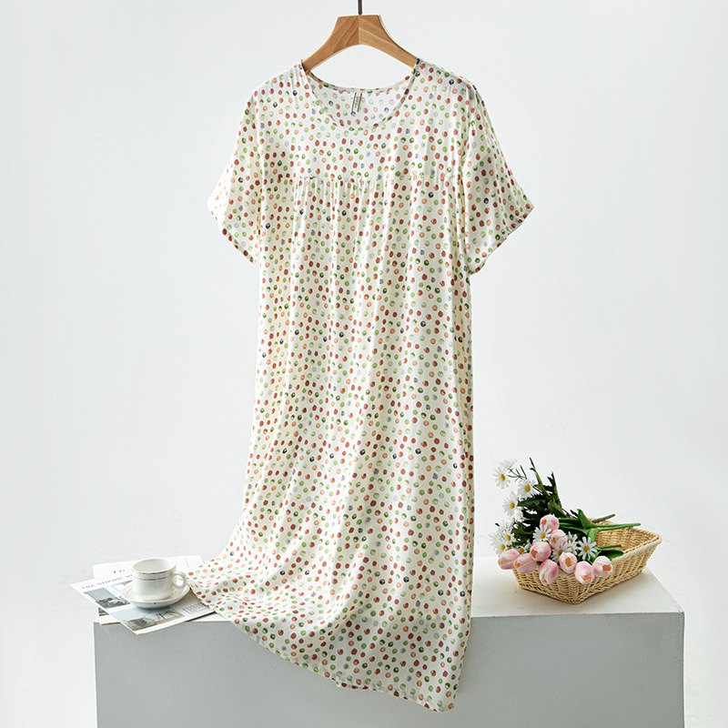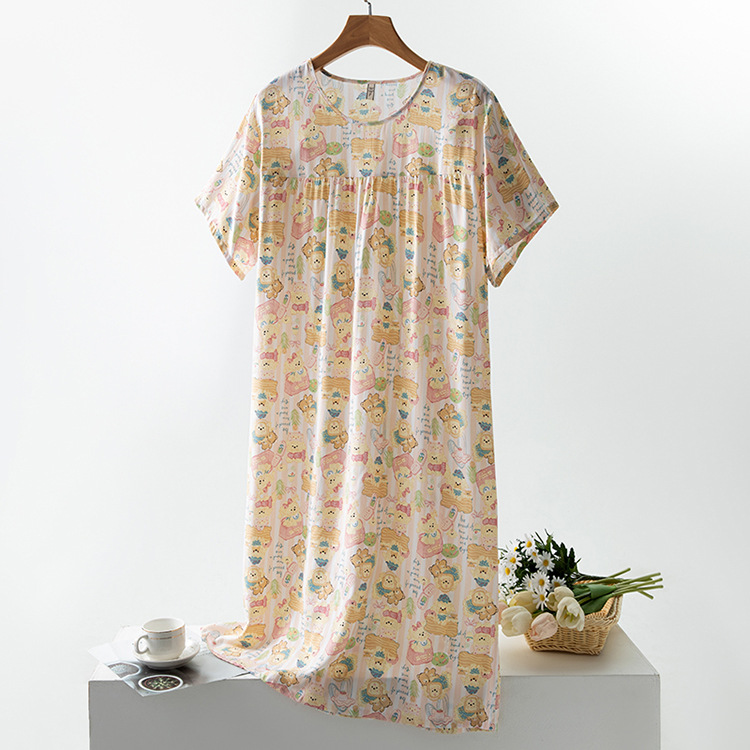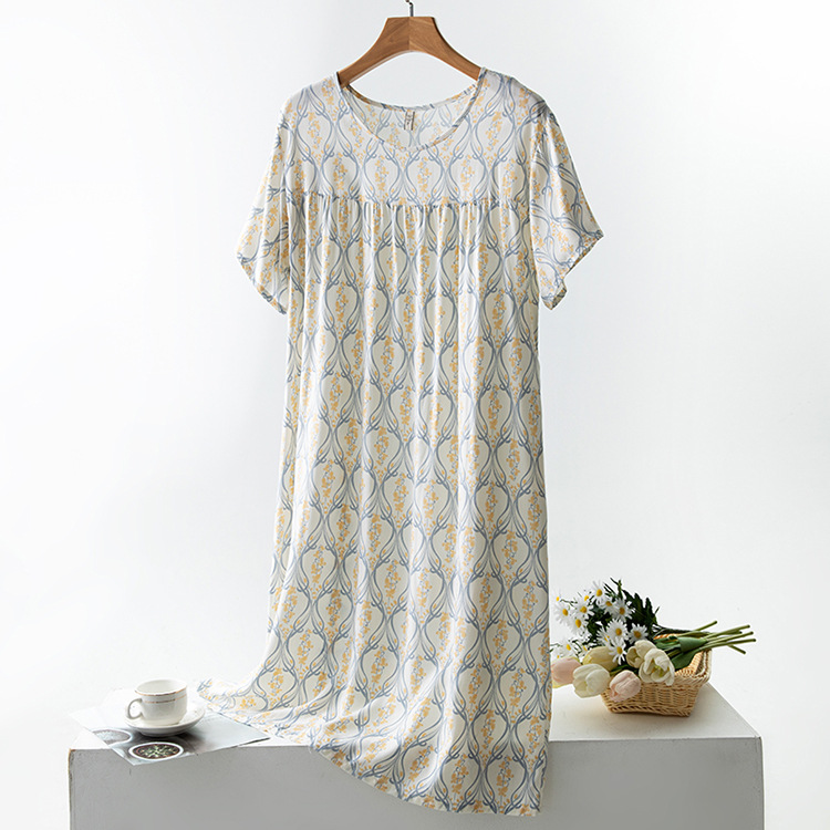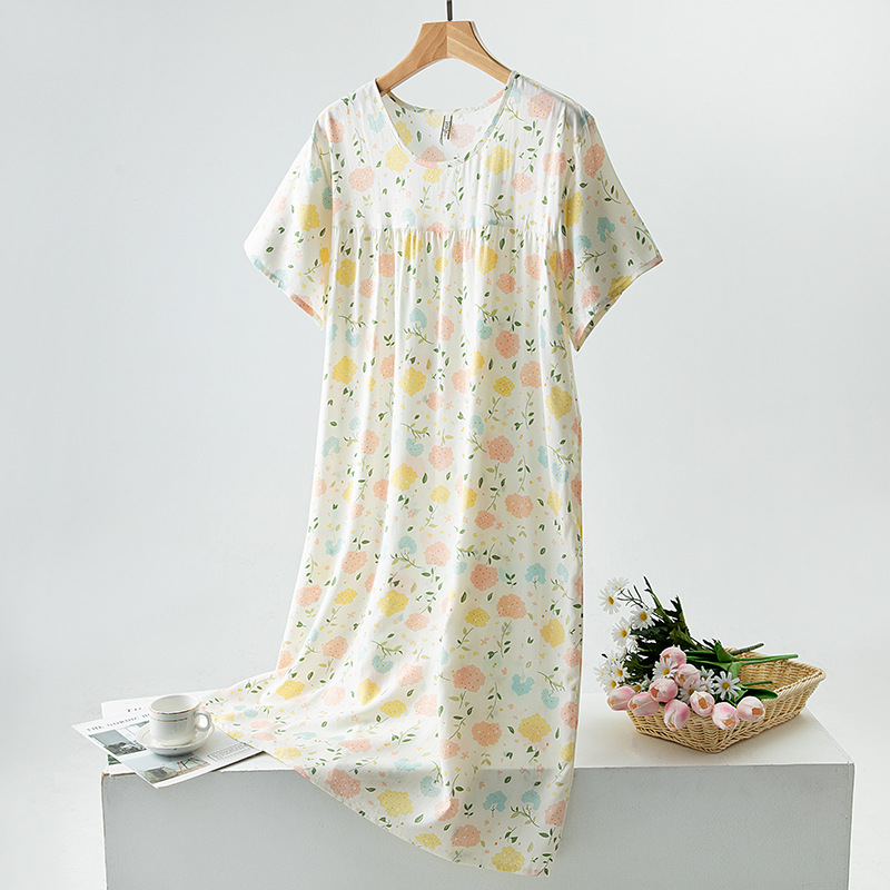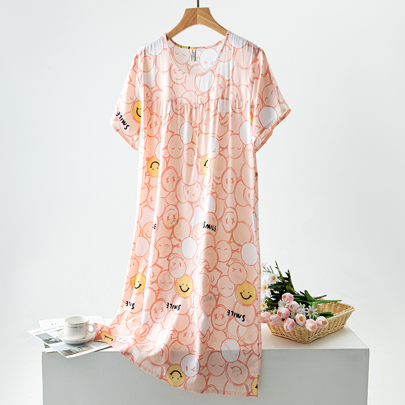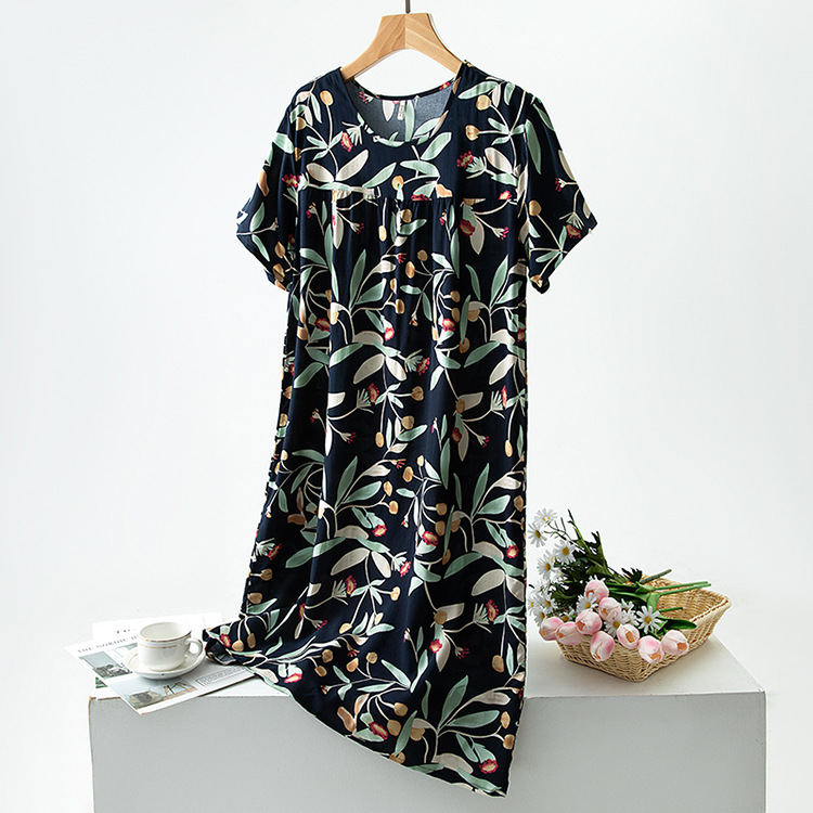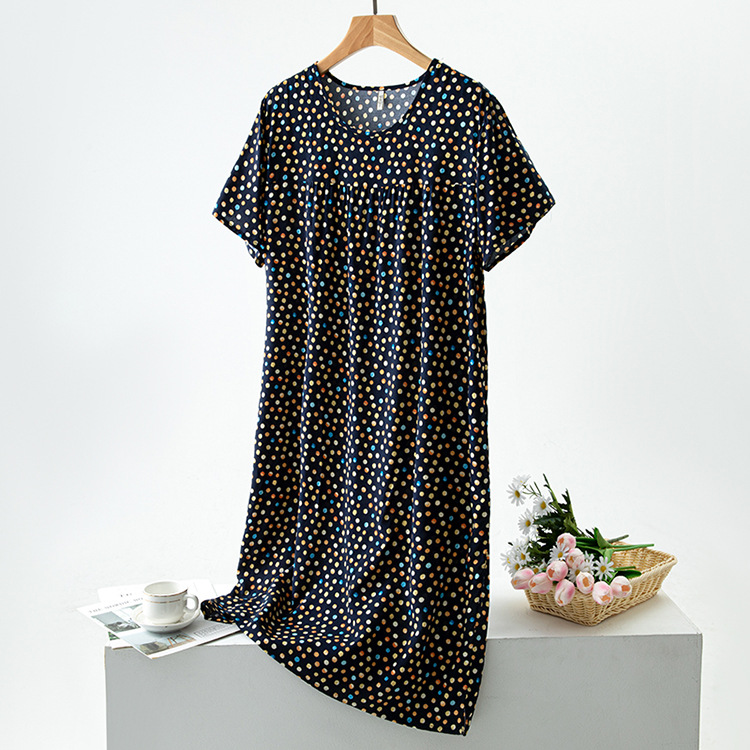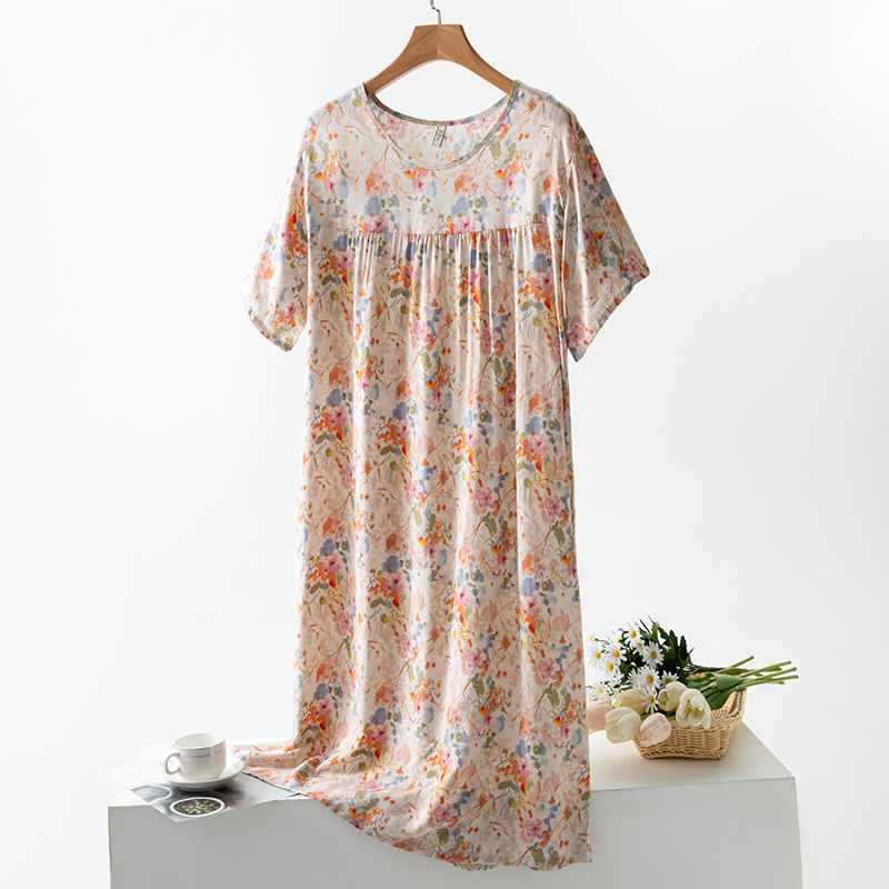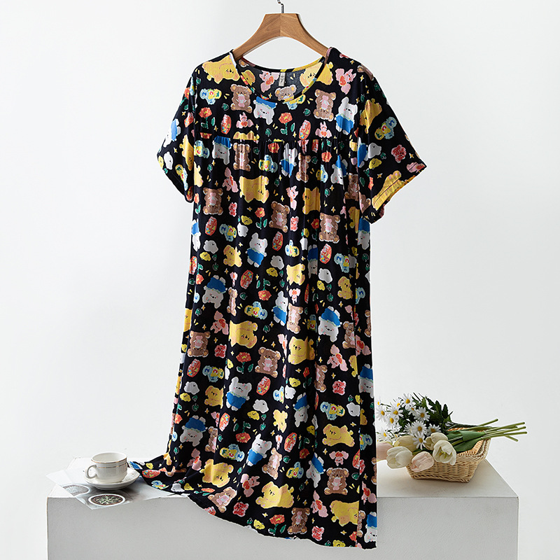 면 실크 잠옷 여성의 여름 얇은 반팔 원피스 달콤한 느슨한 인공 면 플러스 사이즈 잠옷 봄과 가을 홈 옷스토어 가기