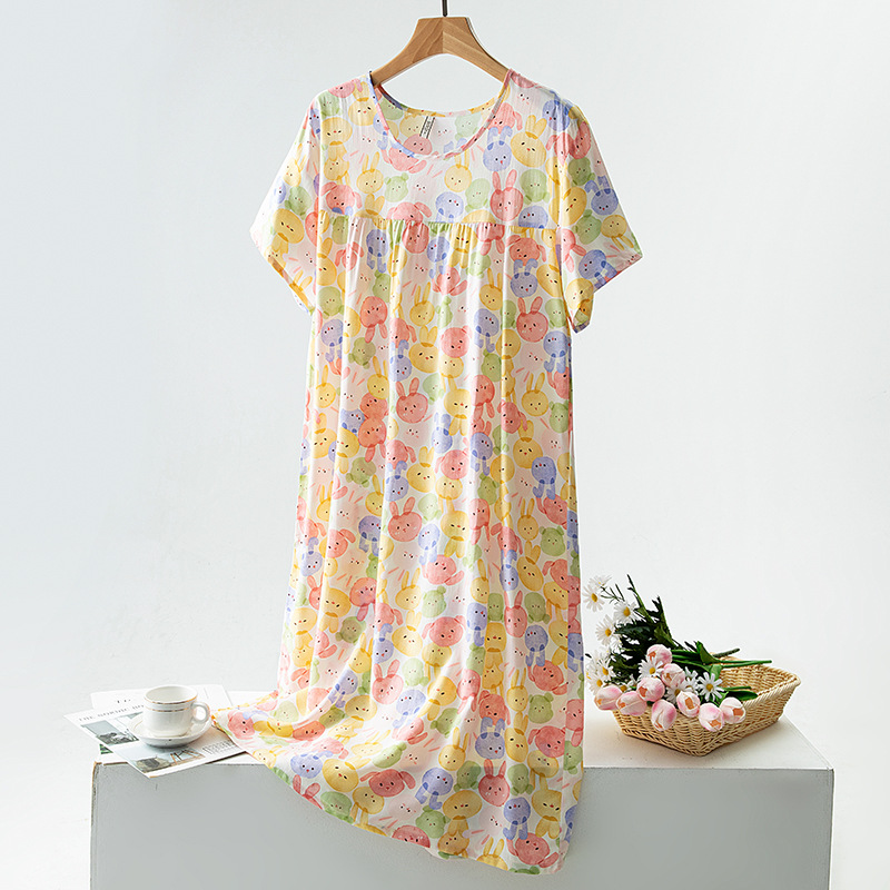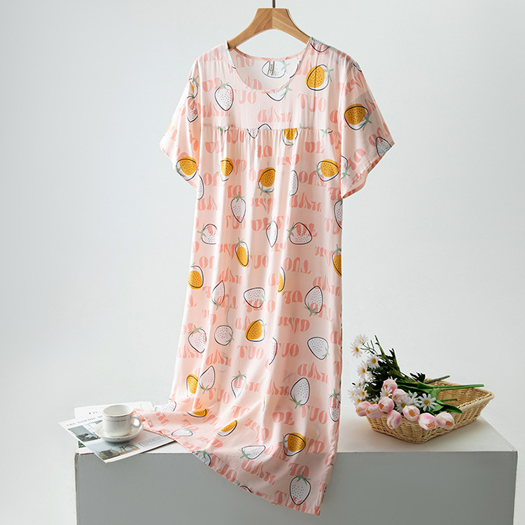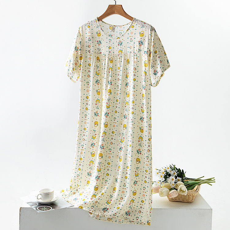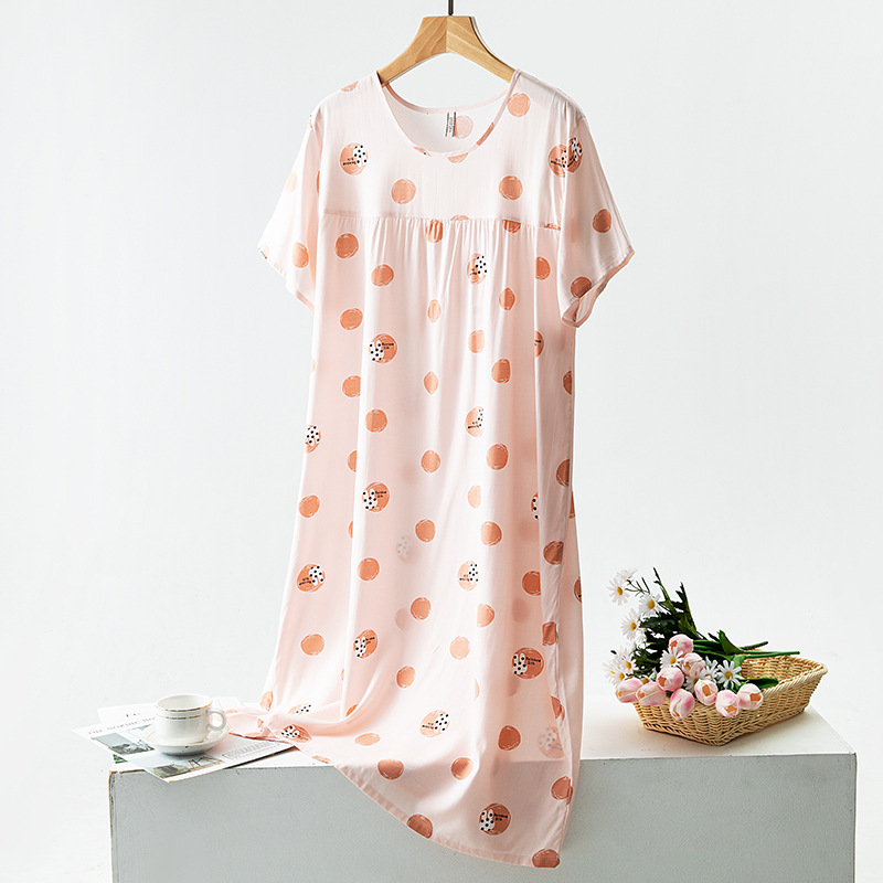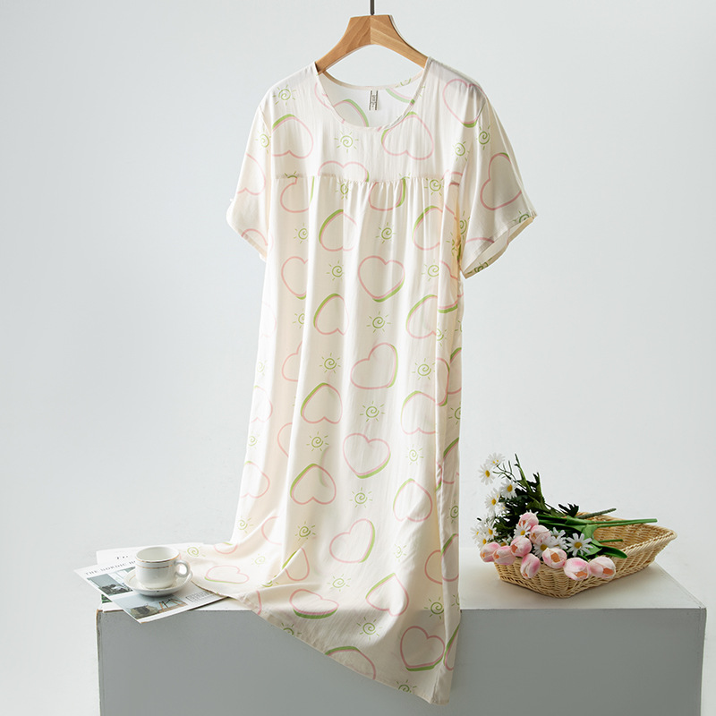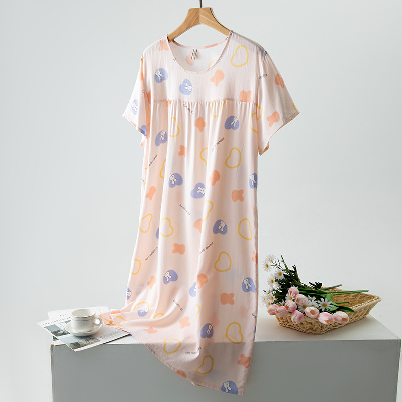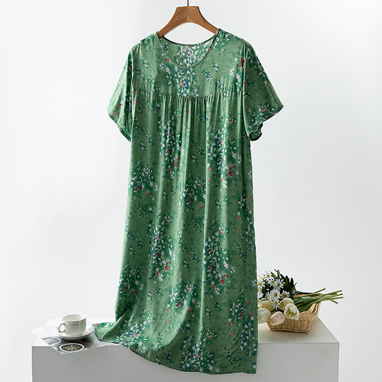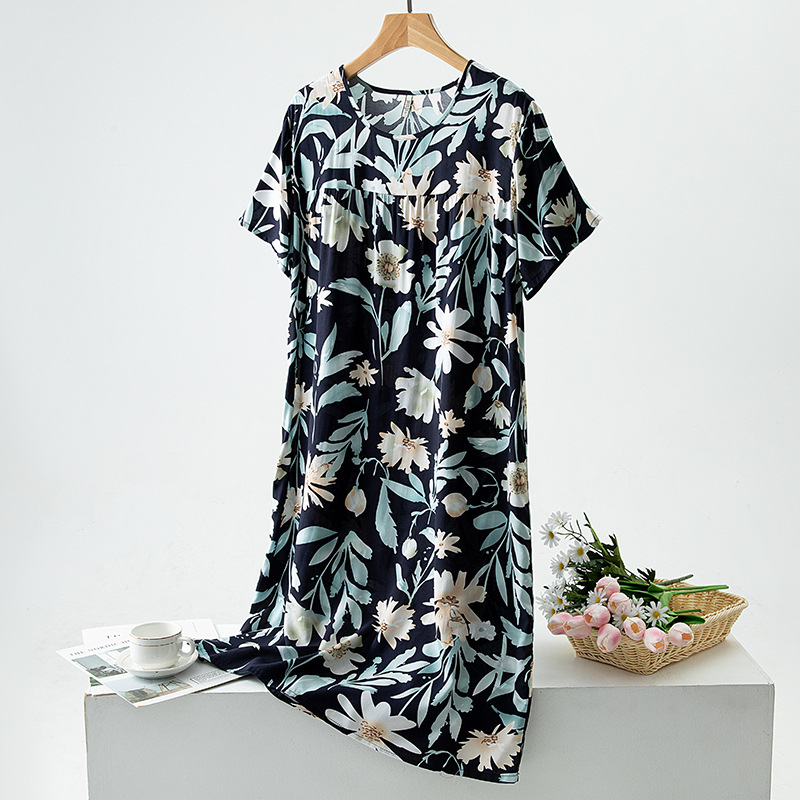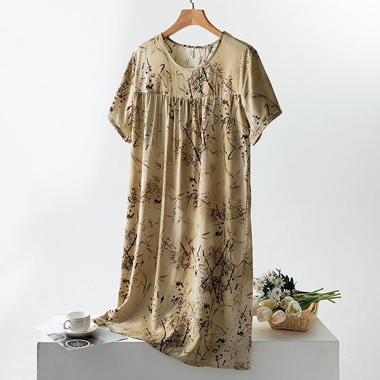 면 실크 잠옷 여성의 여름 얇은 반팔 원피스 달콤한 느슨한 인공 면 플러스 사이즈 잠옷 봄과 가을 홈 옷스토어 가기