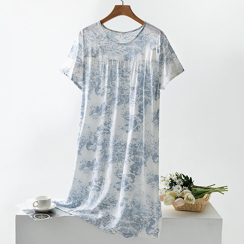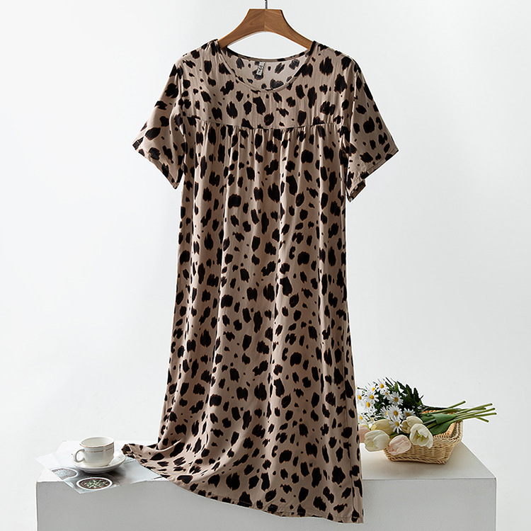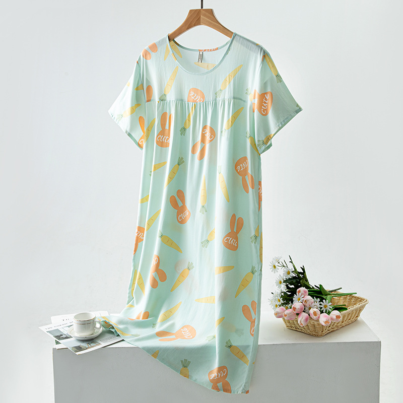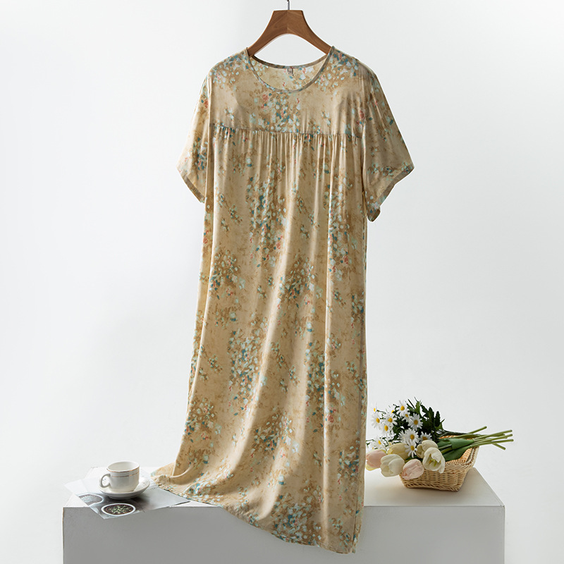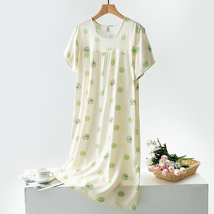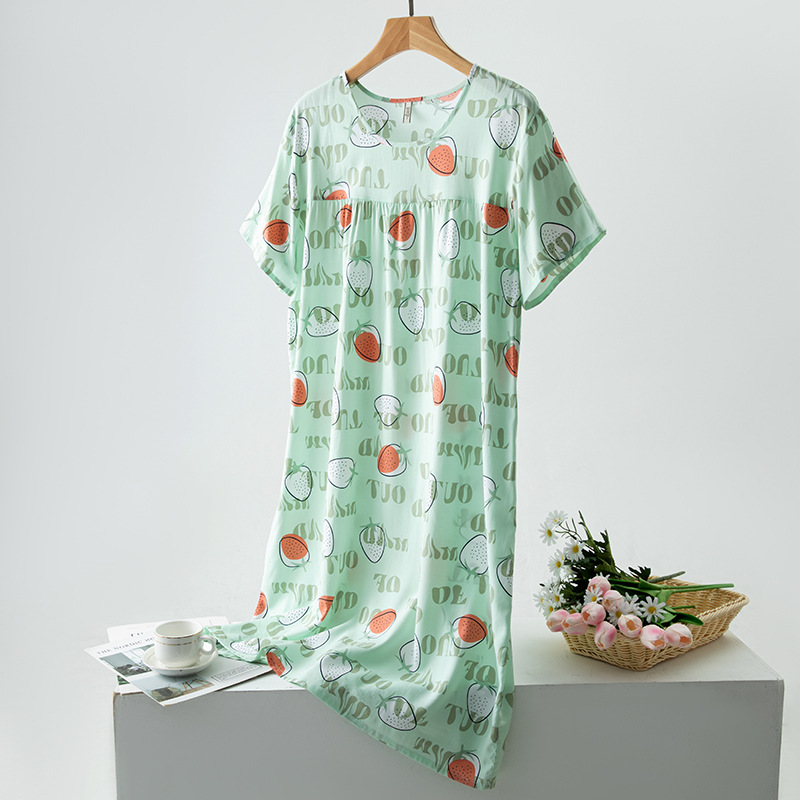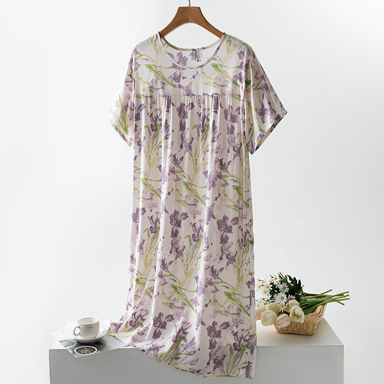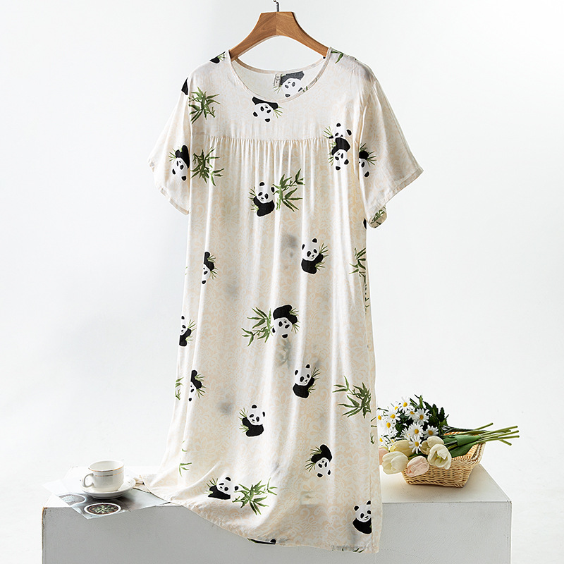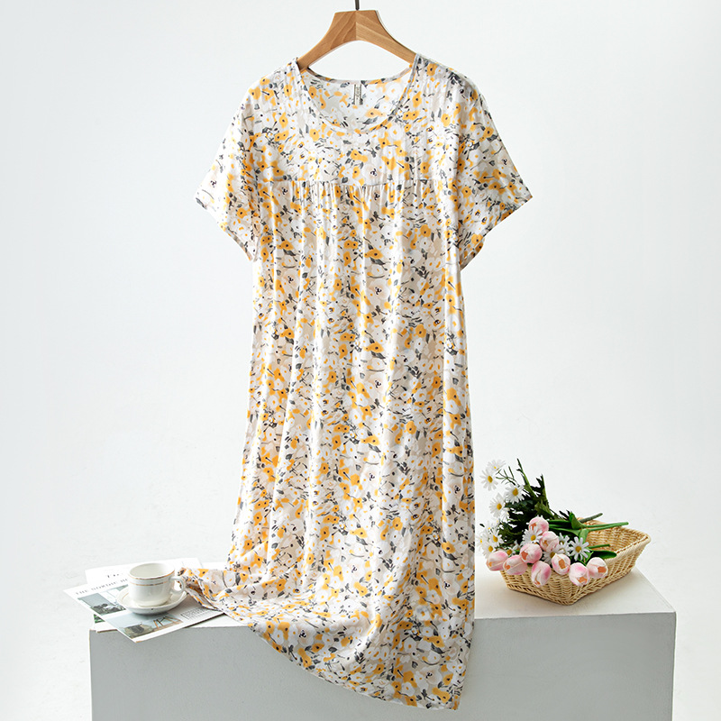 면 실크 잠옷 여성의 여름 얇은 반팔 원피스 달콤한 느슨한 인공 면 플러스 사이즈 잠옷 봄과 가을 홈 옷스토어 가기