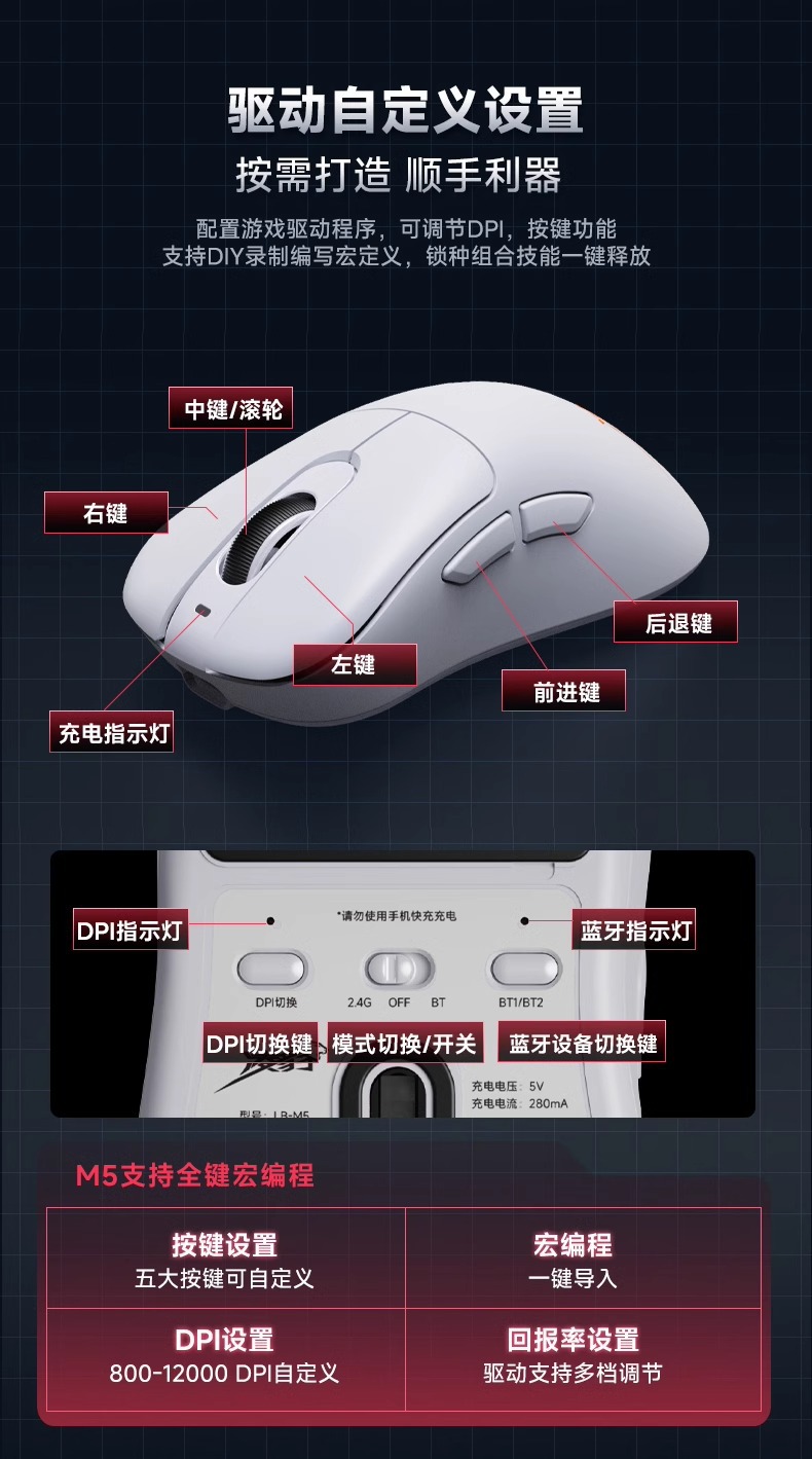 링 바오 무선 마우스 블루투스 2.4G E 스포츠 게임 3 모드 충전 경량 오피스 유니버설 매크로 프로그래밍