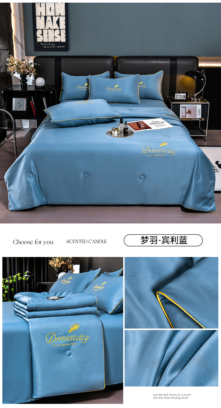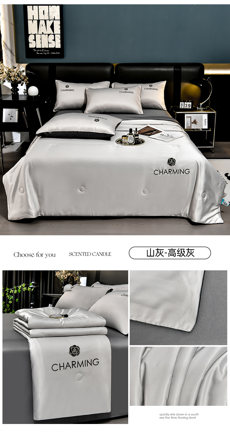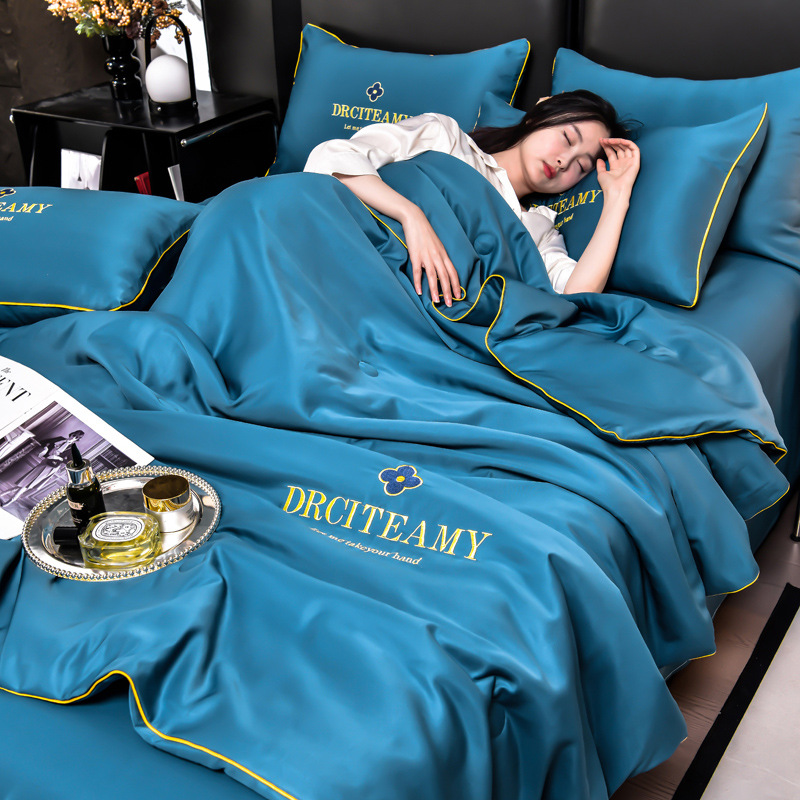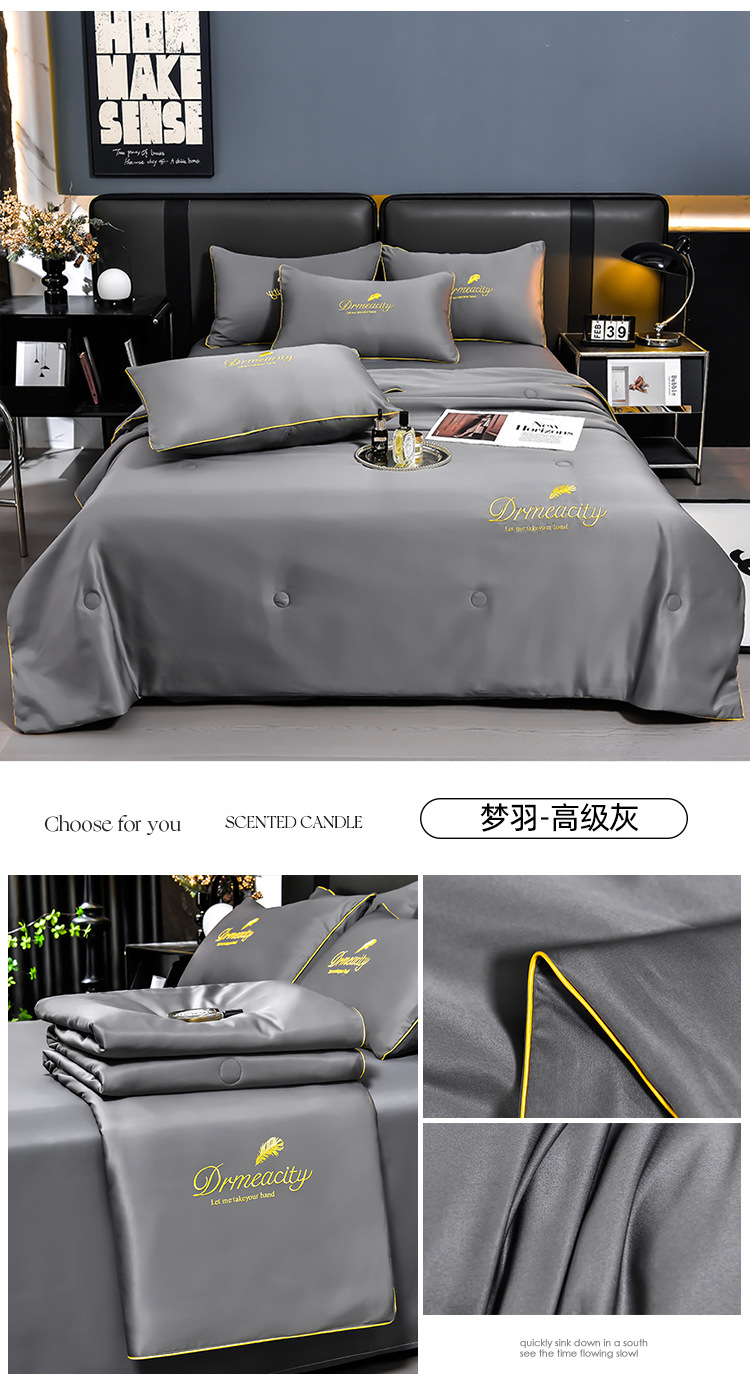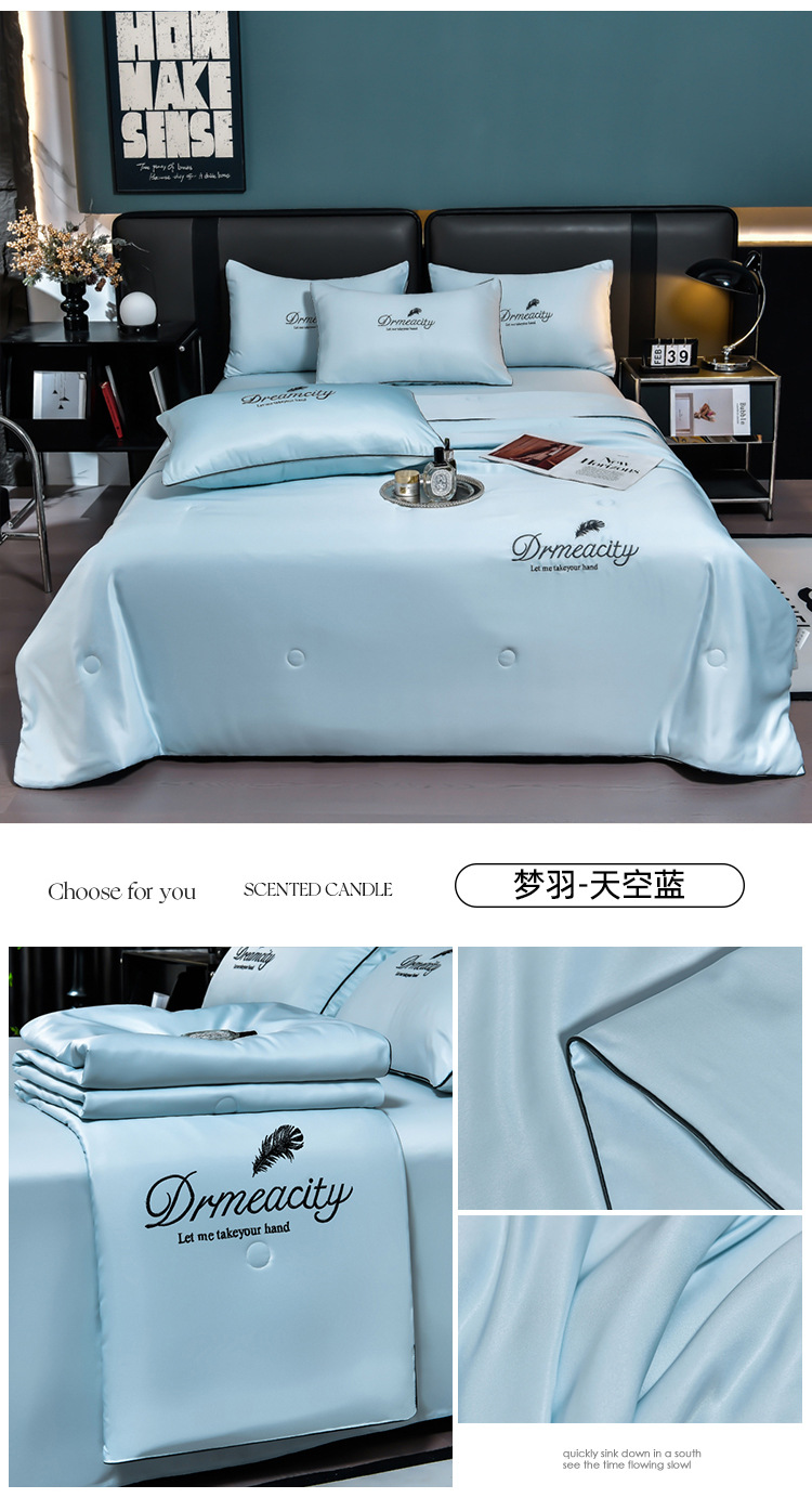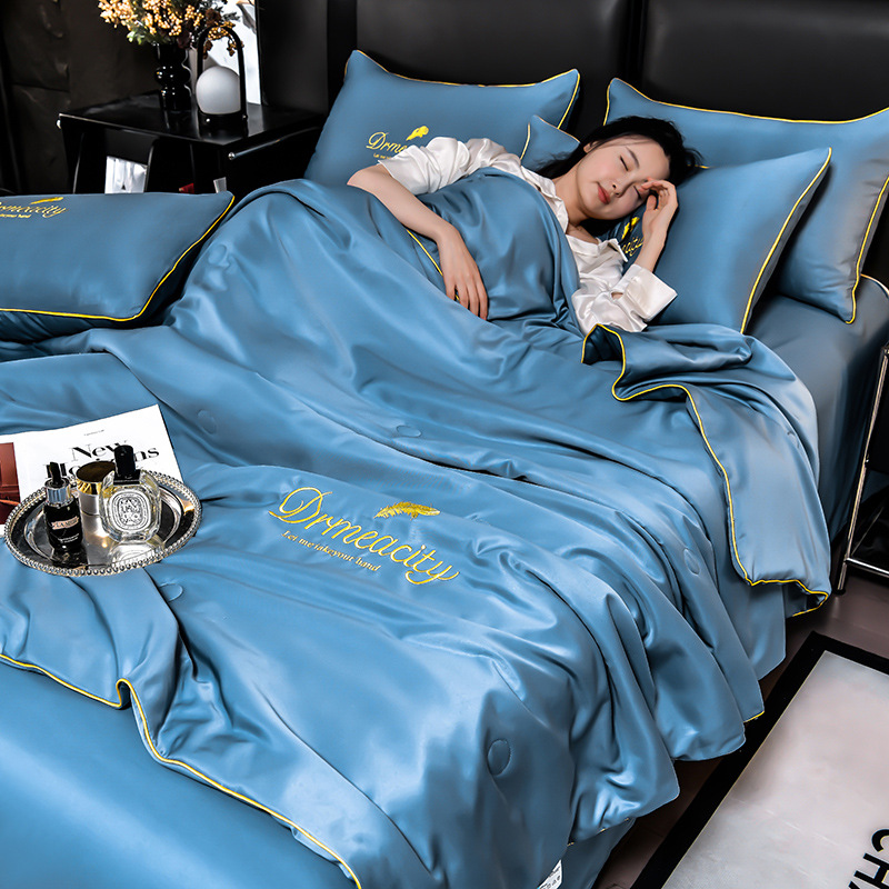 클래스 A 씻은 아이스 실크 여름 퀼트 4 피스 세트 여름 쿨 퀼트 누드 수면 에어컨 이불 쿨 실크 여름 얇은 이불스토어 가기