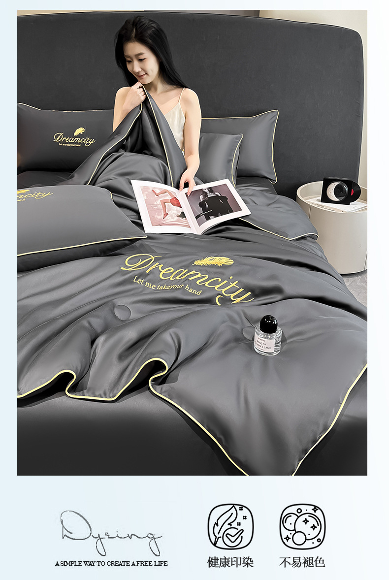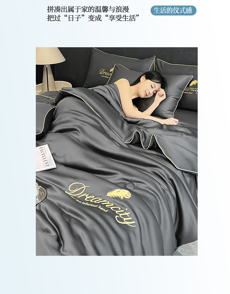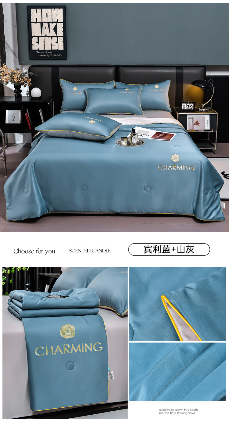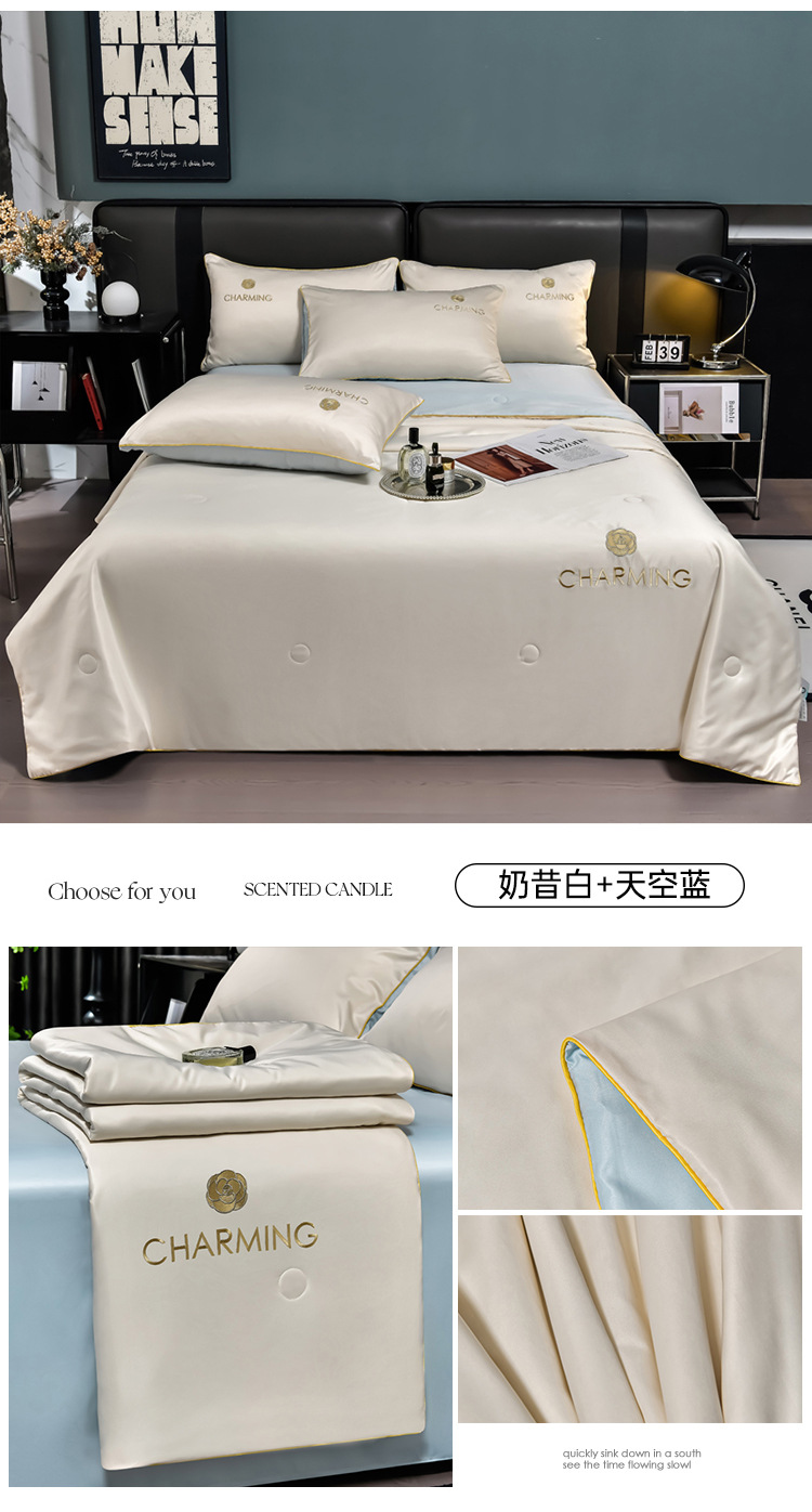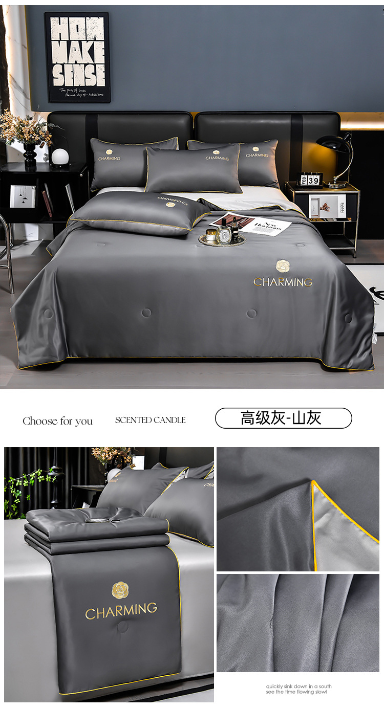 클래스 A 씻은 아이스 실크 여름 퀼트 4 피스 세트 여름 쿨 퀼트 누드 수면 에어컨 이불 쿨 실크 여름 얇은 이불스토어 가기