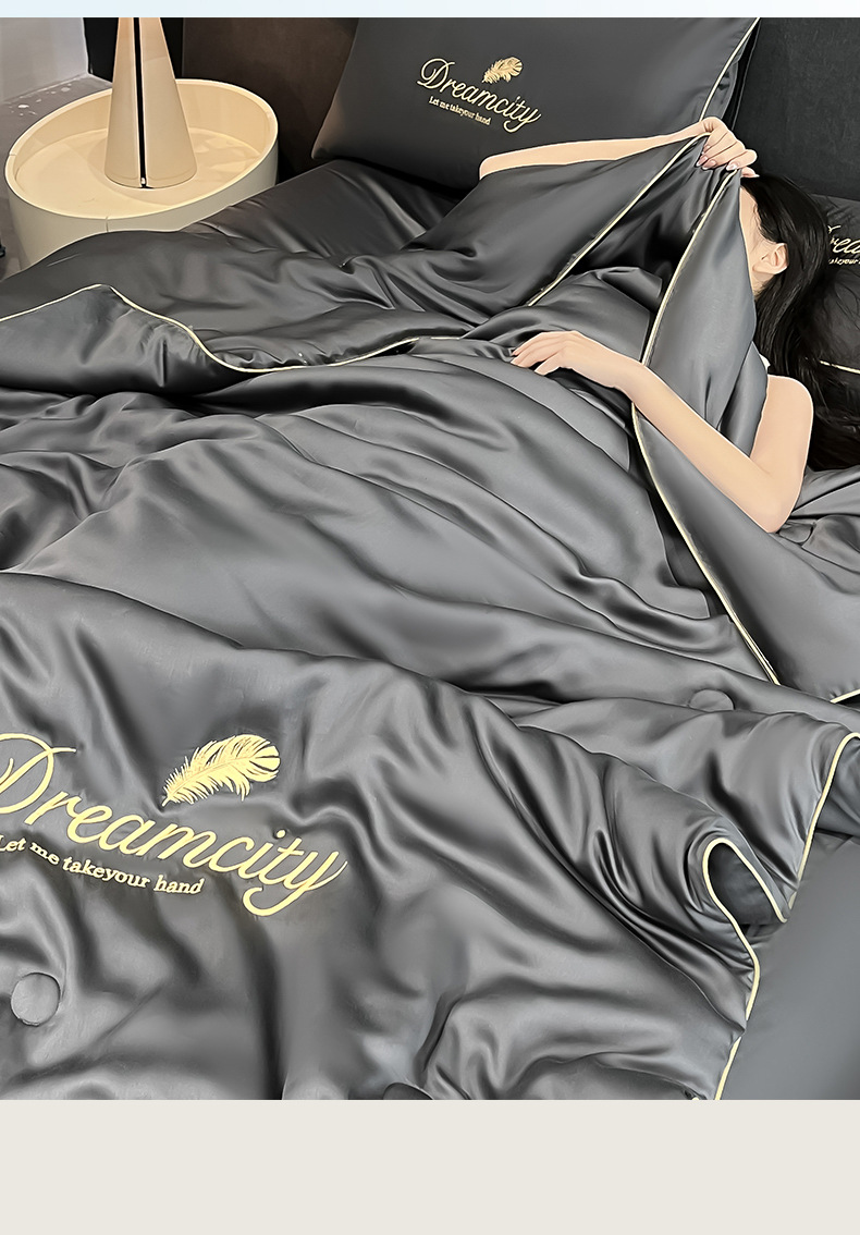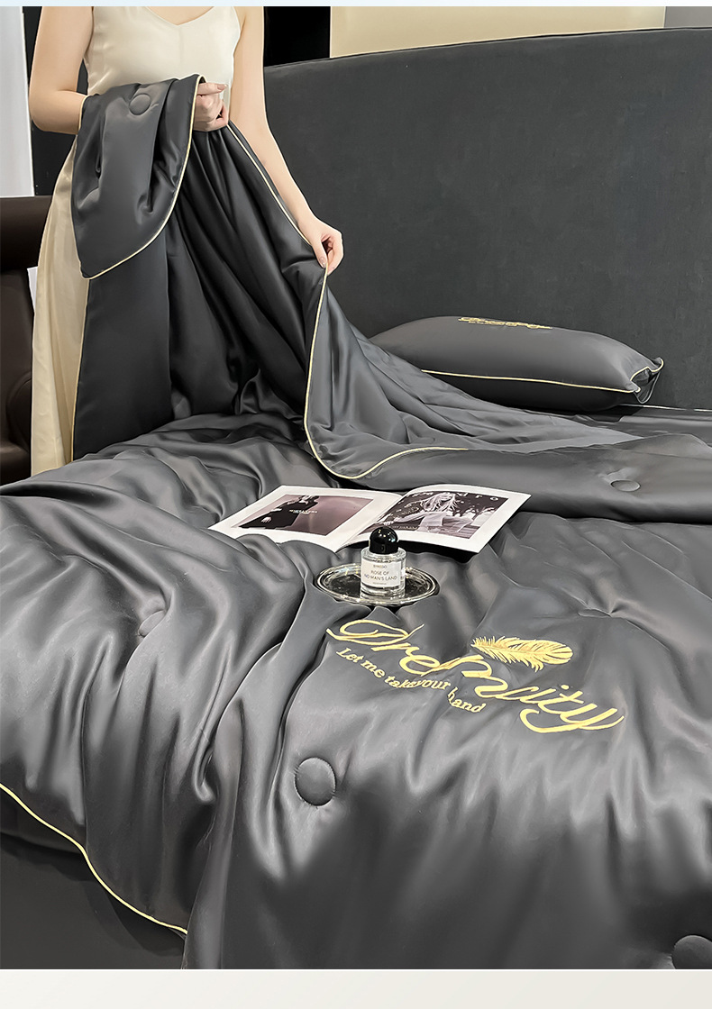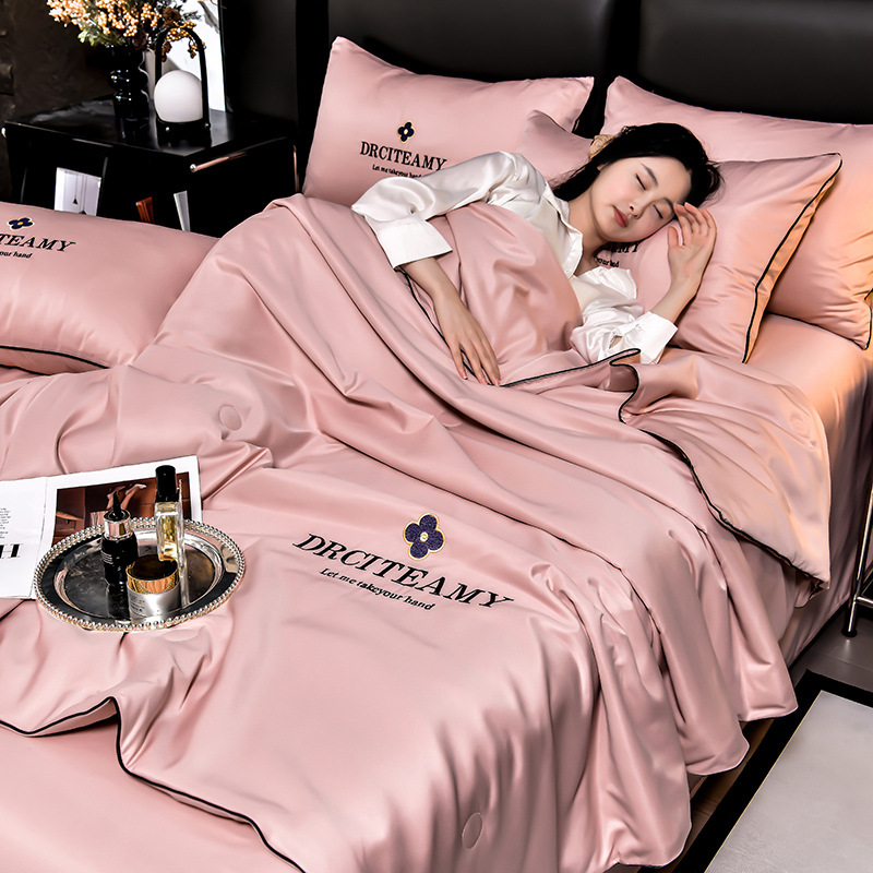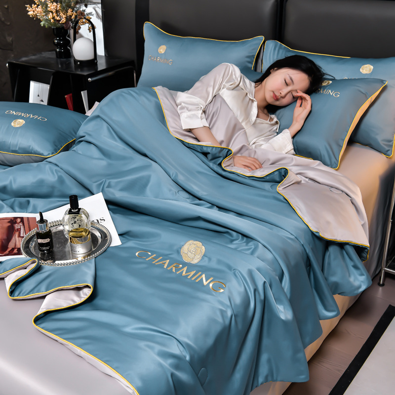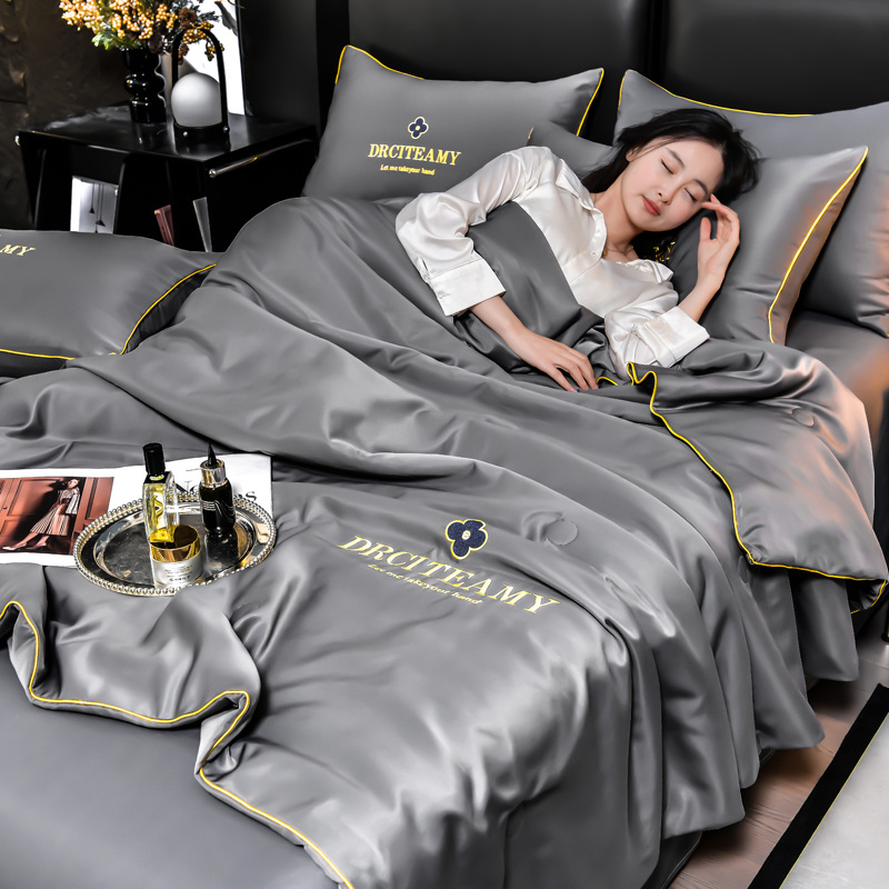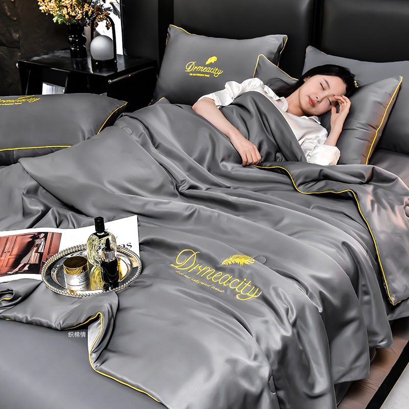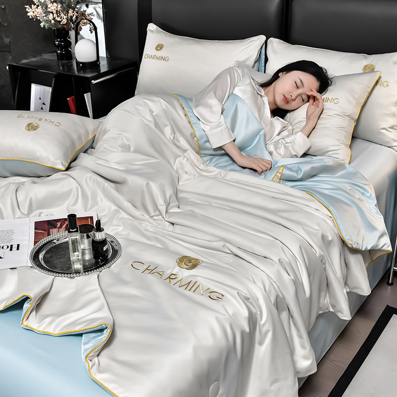 클래스 A 씻은 아이스 실크 여름 퀼트 4 피스 세트 여름 쿨 퀼트 누드 수면 에어컨 이불 쿨 실크 여름 얇은 이불