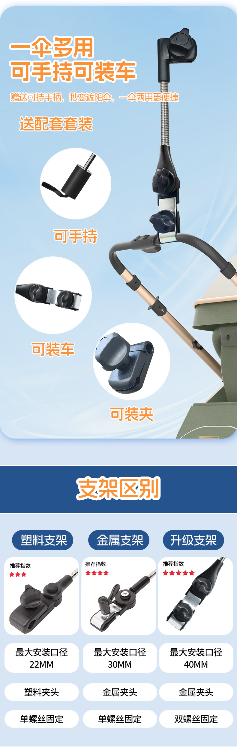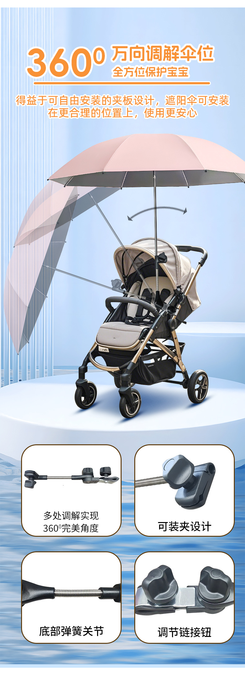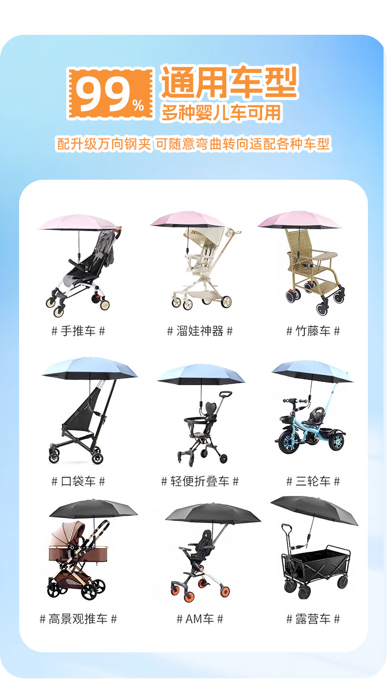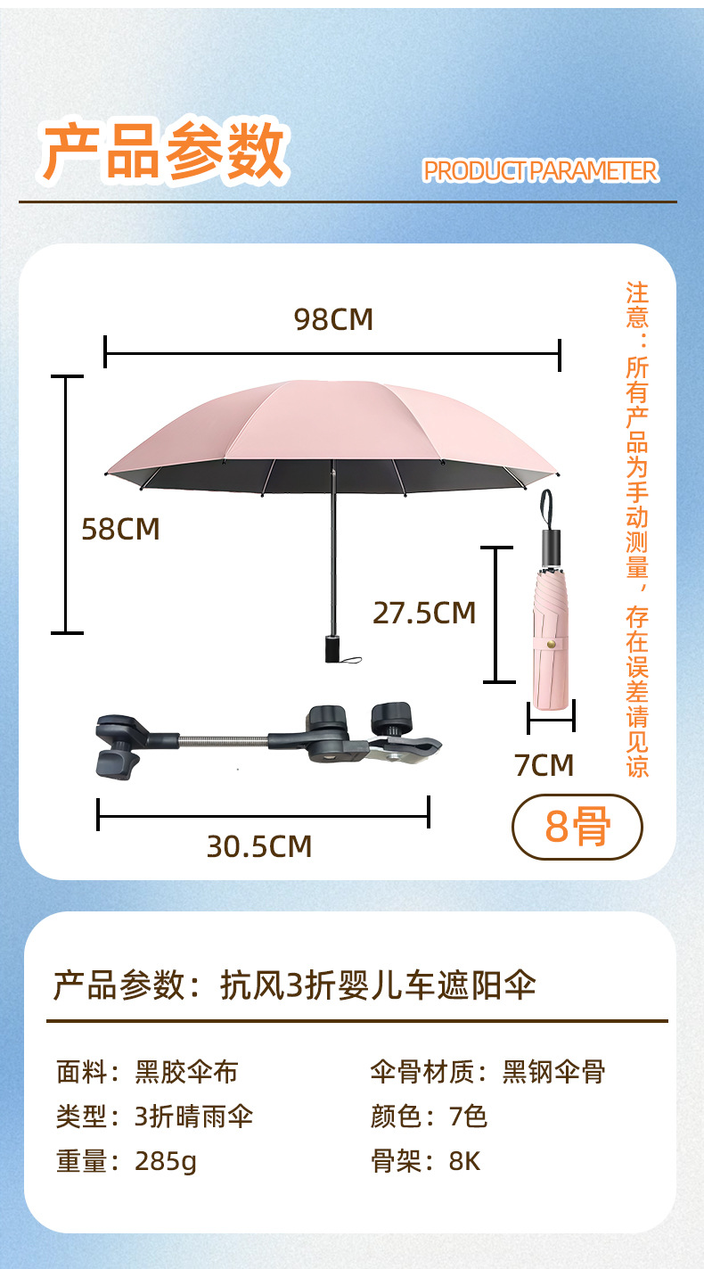 • 삼중 8본 유모차 우산 - 시야오헤이