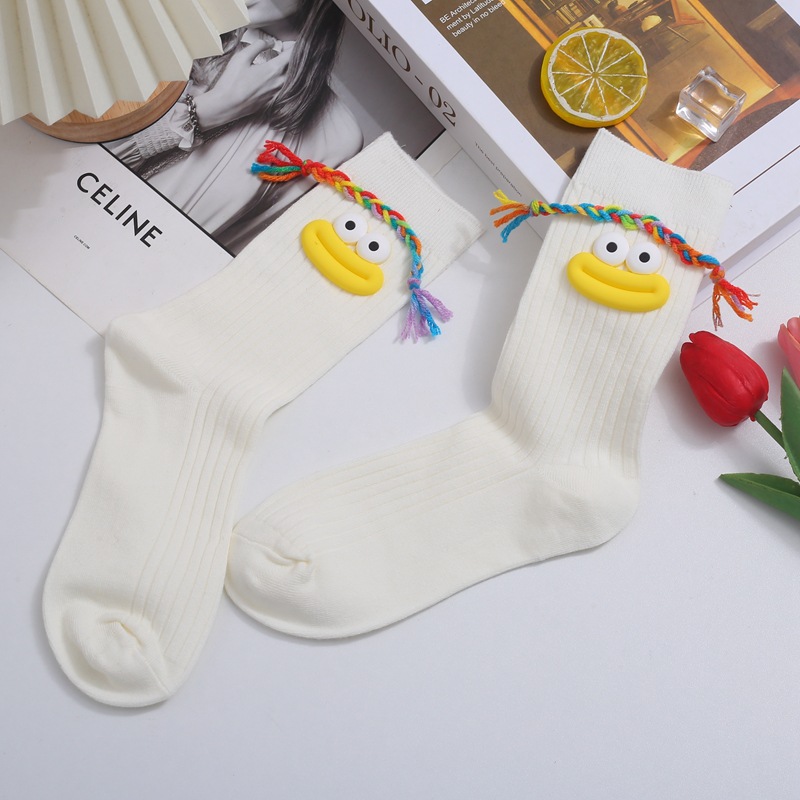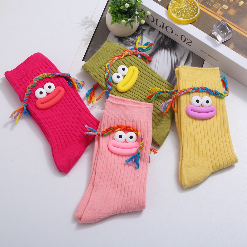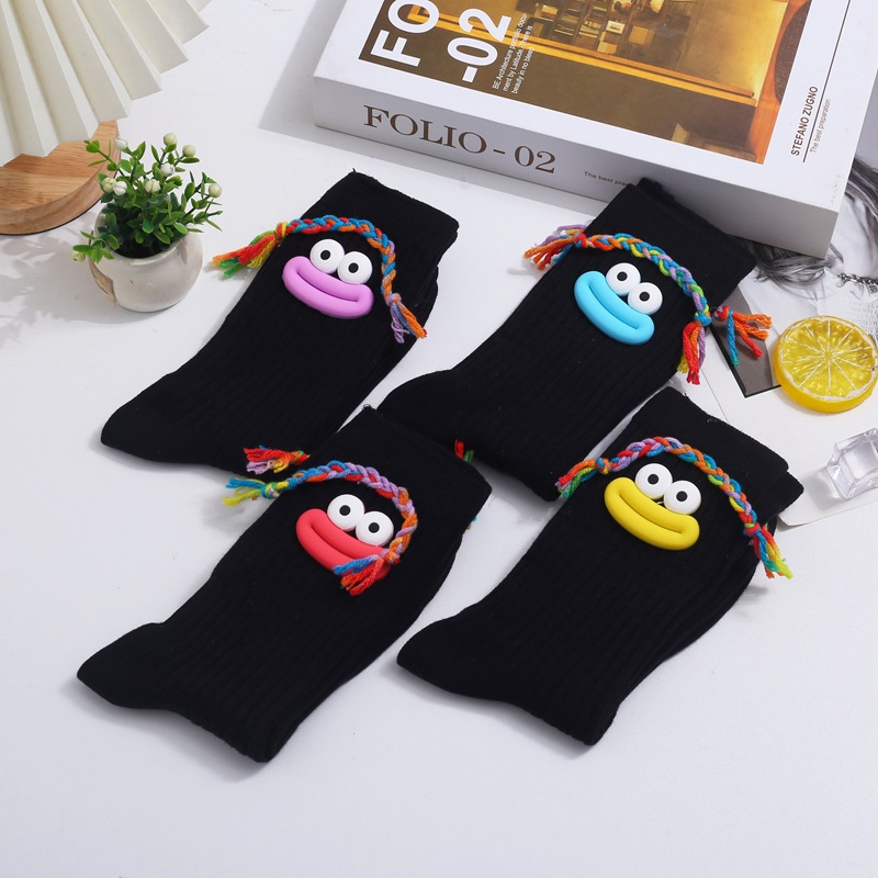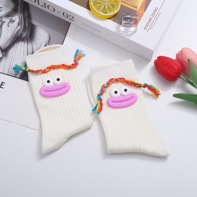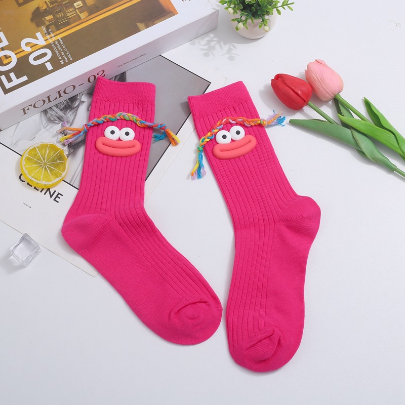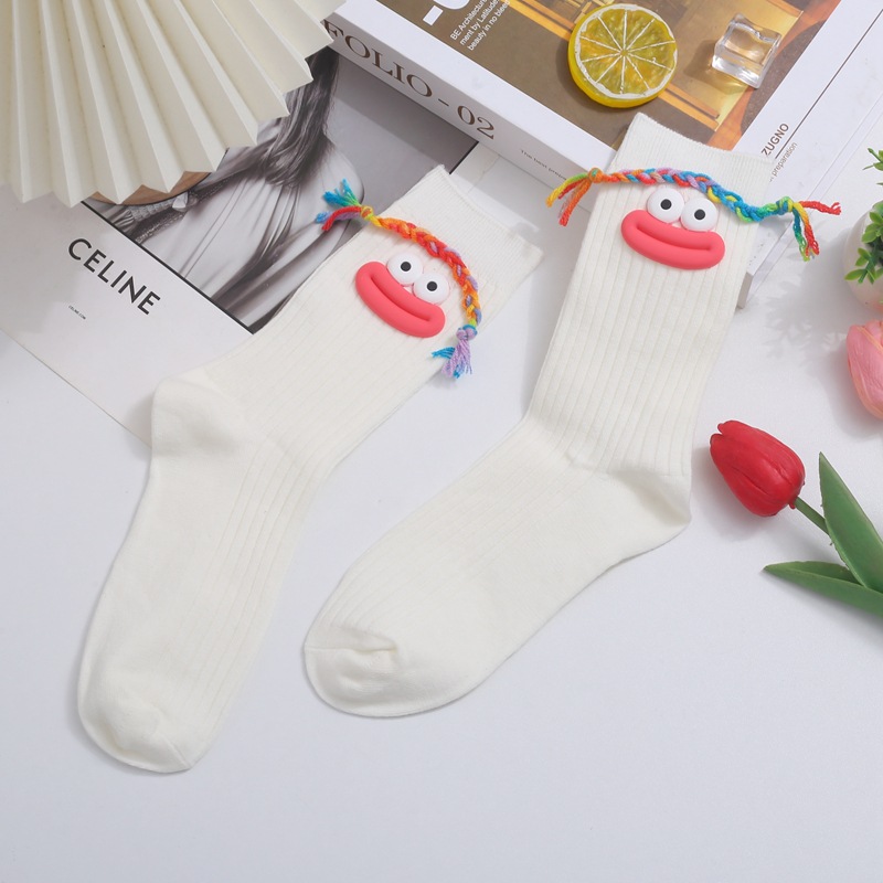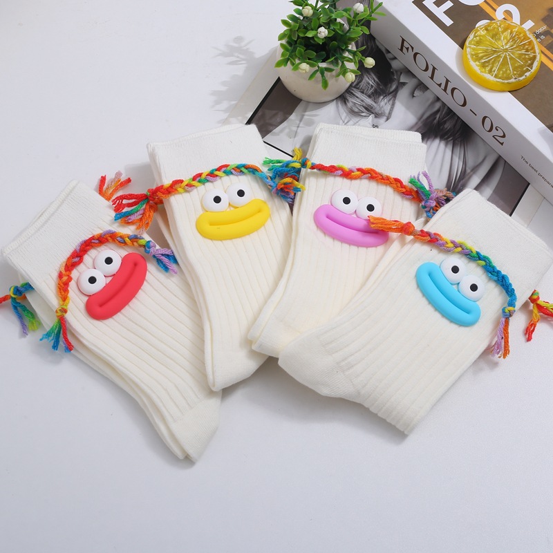 재미있는 양말 여성용 순수 코튼 Ins 트렌디 인터넷 인기 미운 귀여운 큰 입 귀여운 울 머리띠 DIY 미드 양말 국경 맞춤형 양말스토어 가기