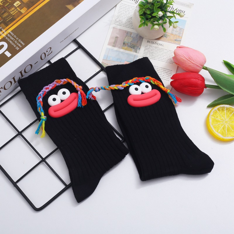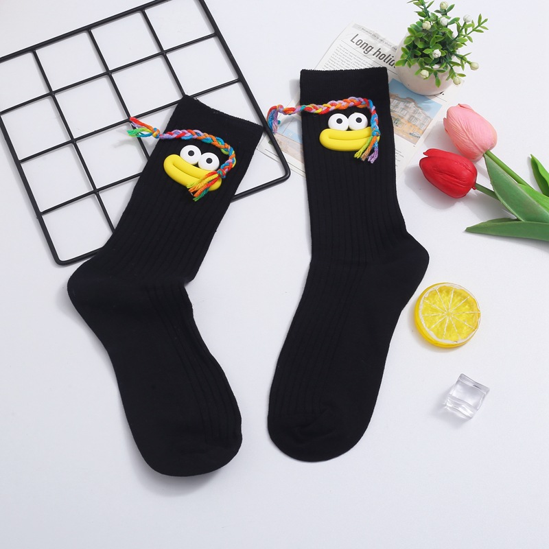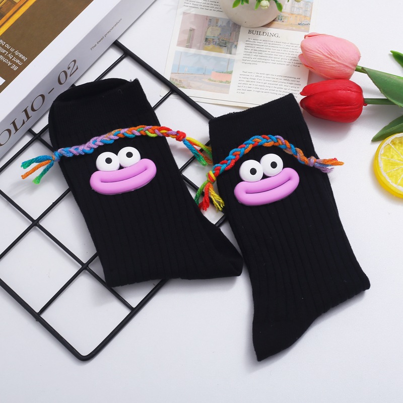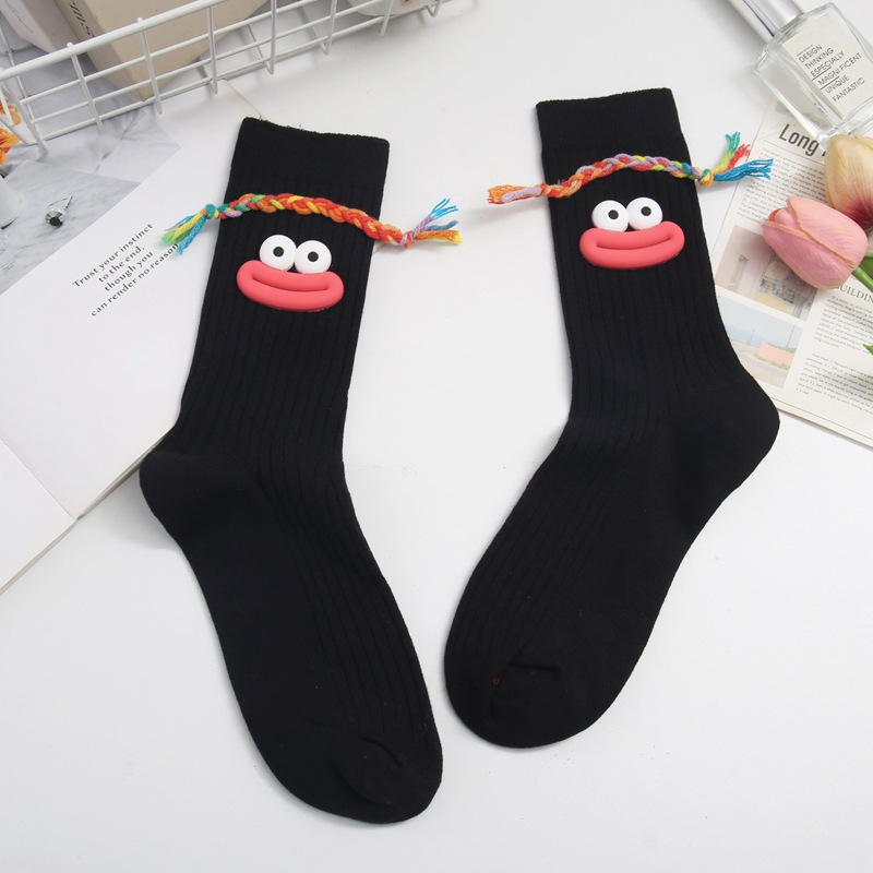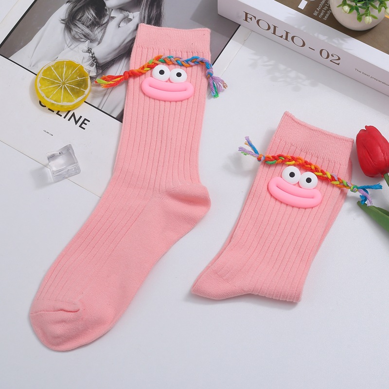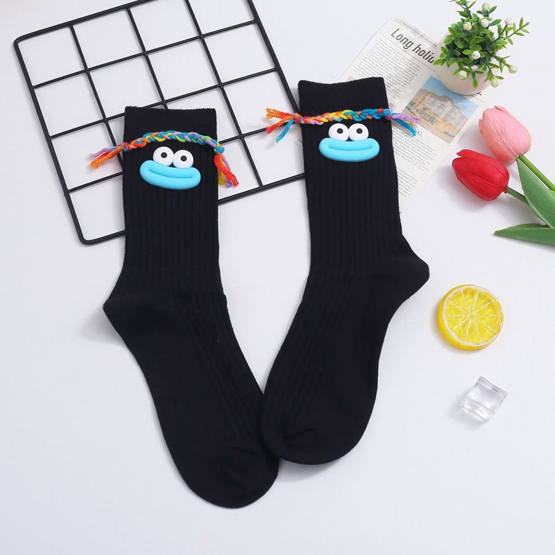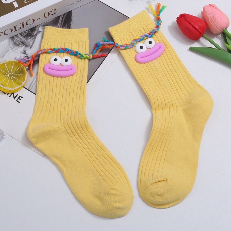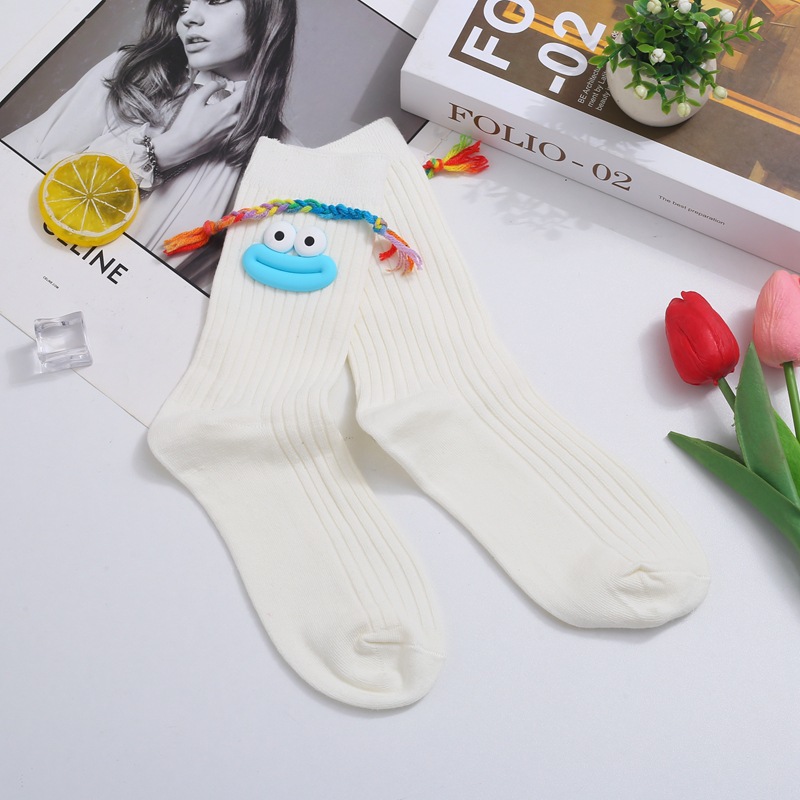 재미있는 양말 여성용 순수 코튼 Ins 트렌디 인터넷 인기 미운 귀여운 큰 입 귀여운 울 머리띠 DIY 미드 양말 국경 맞춤형 양말스토어 가기