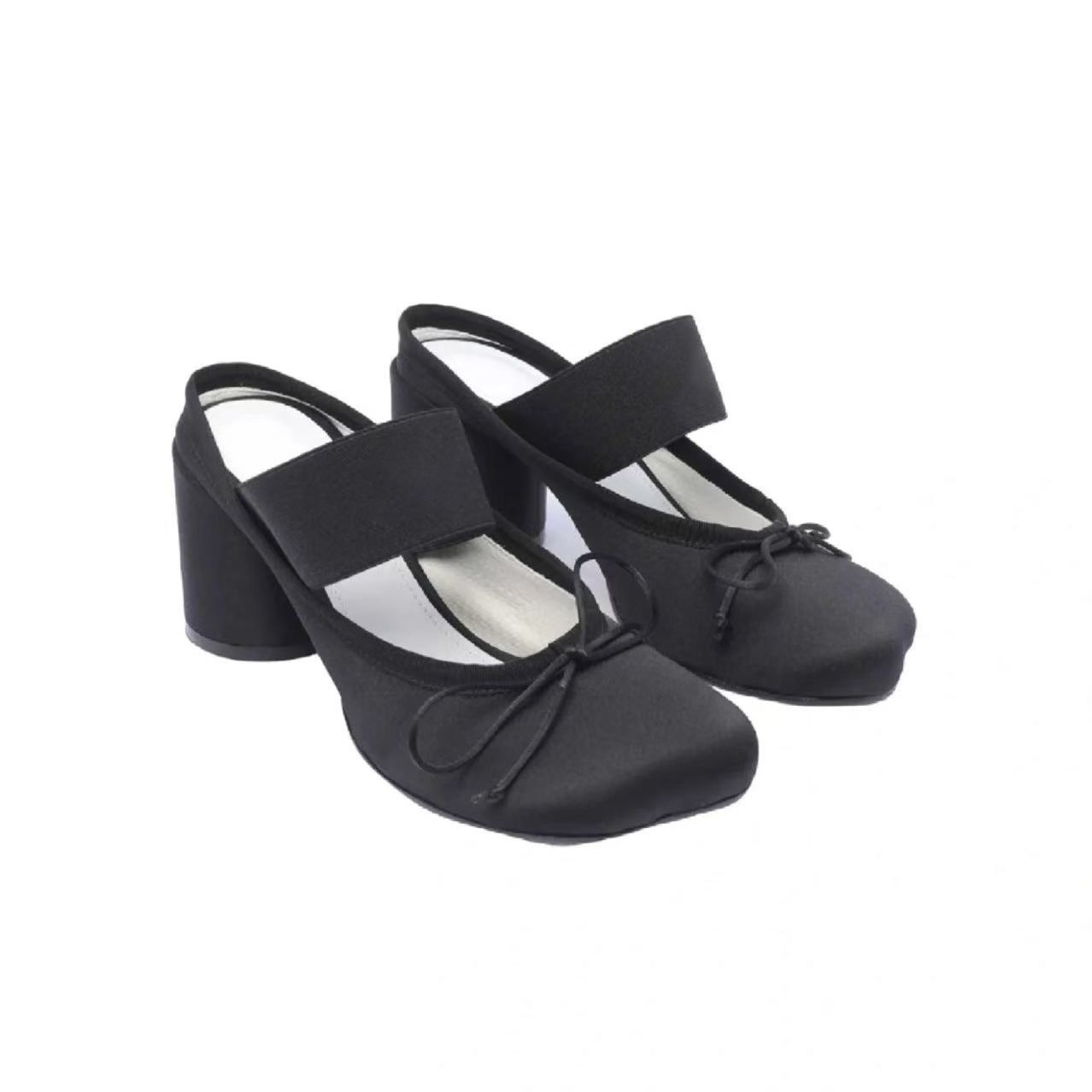 프랑스 새틴 활 얕은 입 메리 제인 신발 여성의 2025 년 봄과 여름 새로운 레트로 캐주얼 청키 힐 발레 신발스토어 가기