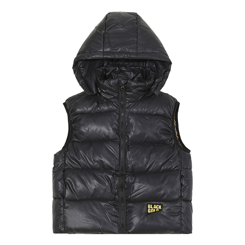 2025 새로운 블랙 골드 조끼 어린이 다운 코튼 두꺼운 소년과 소녀 의류 아기 중대형 어린이 모자 탈착식 조끼