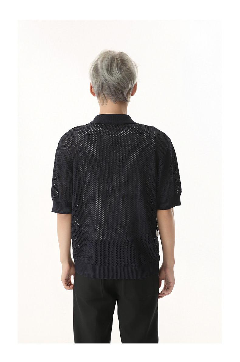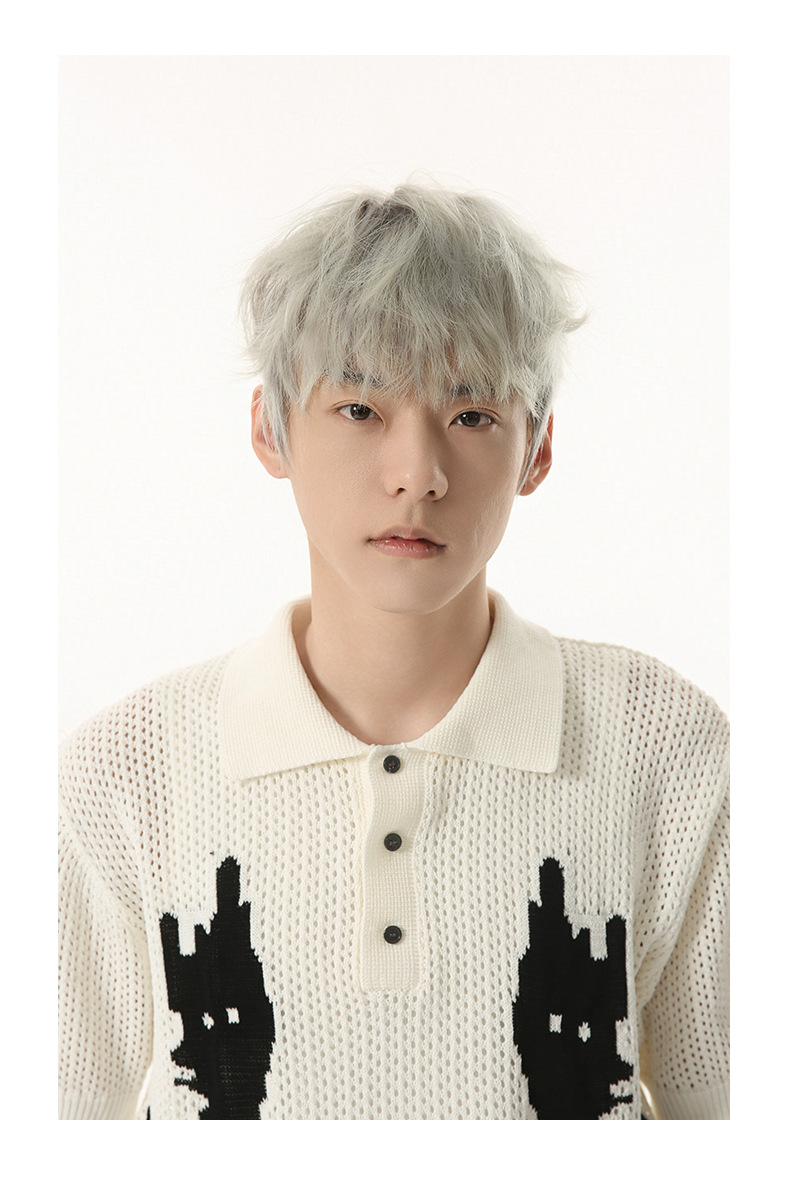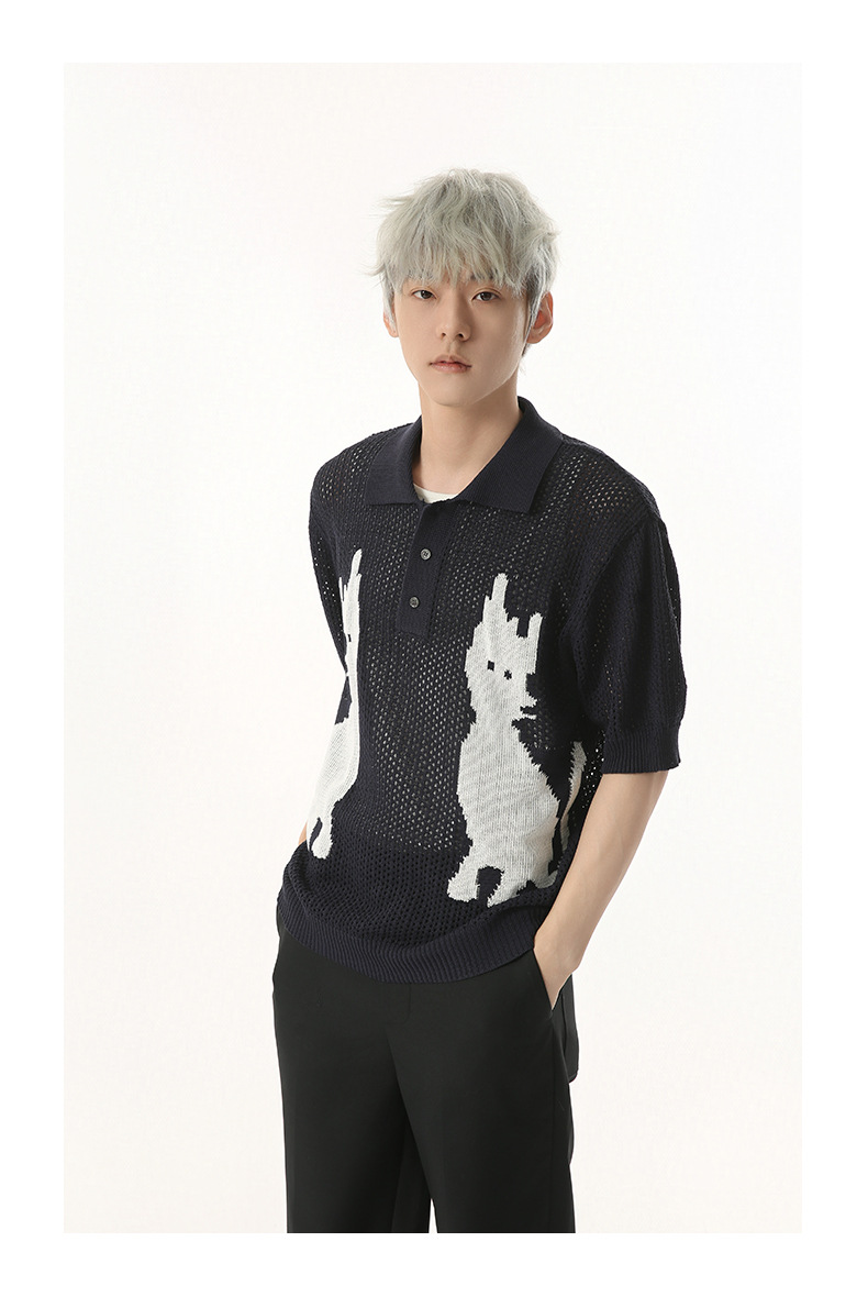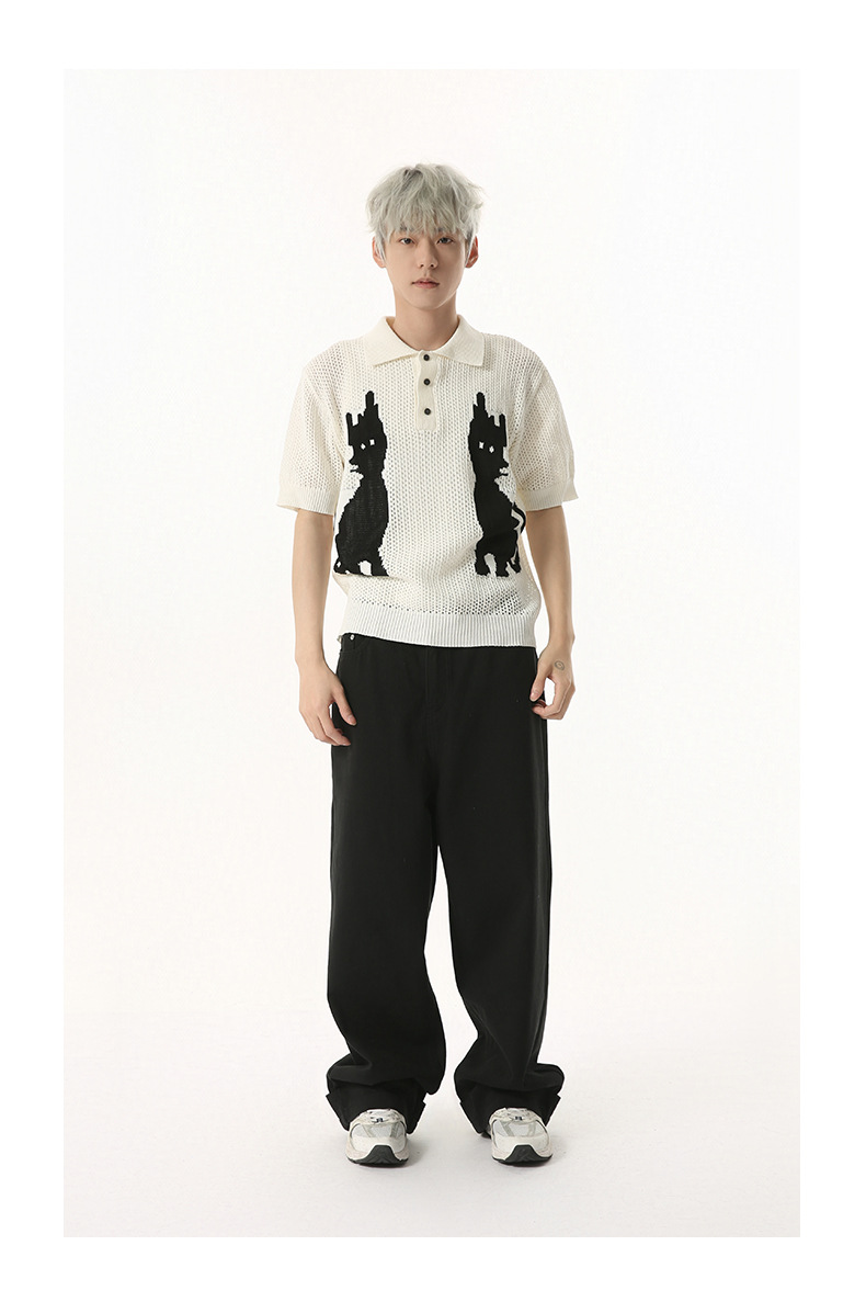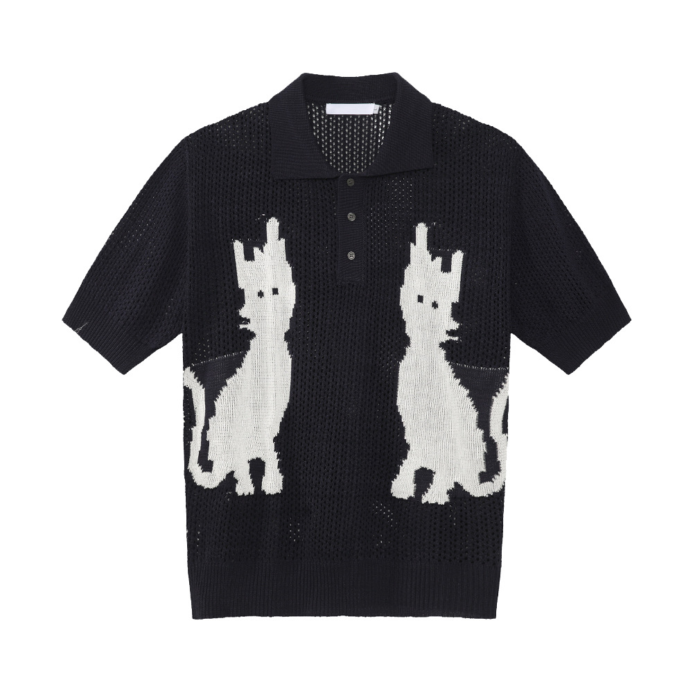 MTLCLOTHES 남성용 | 한국 복고풍 재미 만화 새끼 고양이 색 대비 디자인 옷깃 폴로 니트 짧은 소매스토어 가기