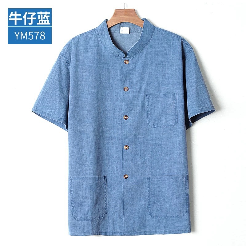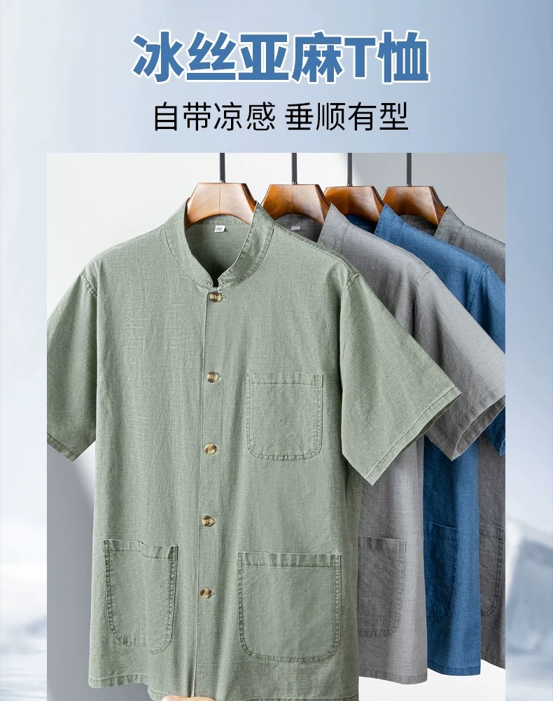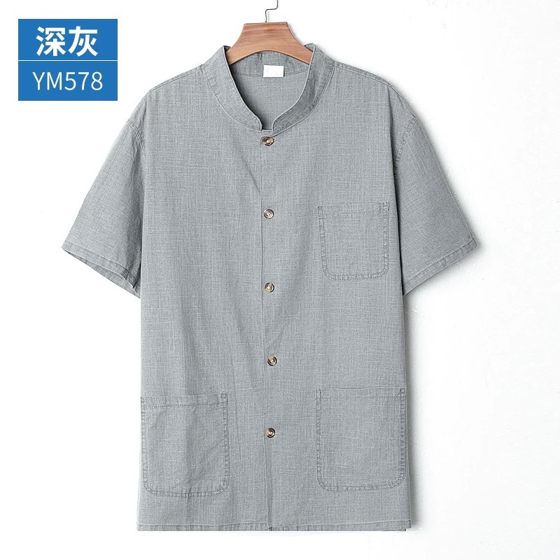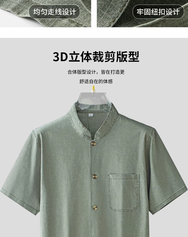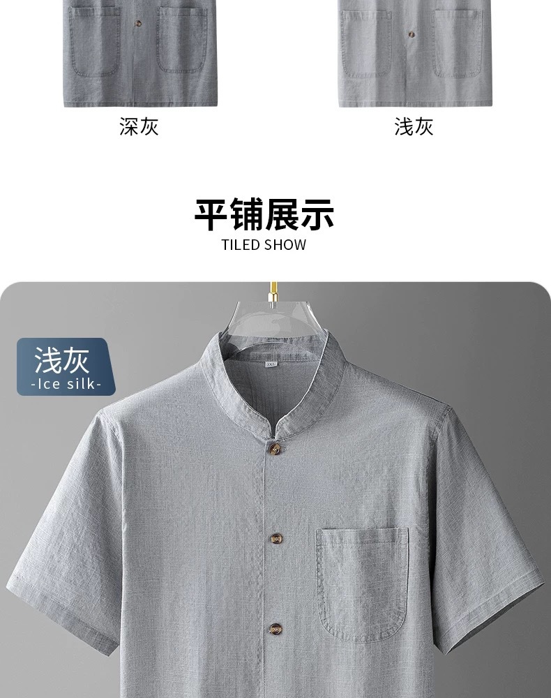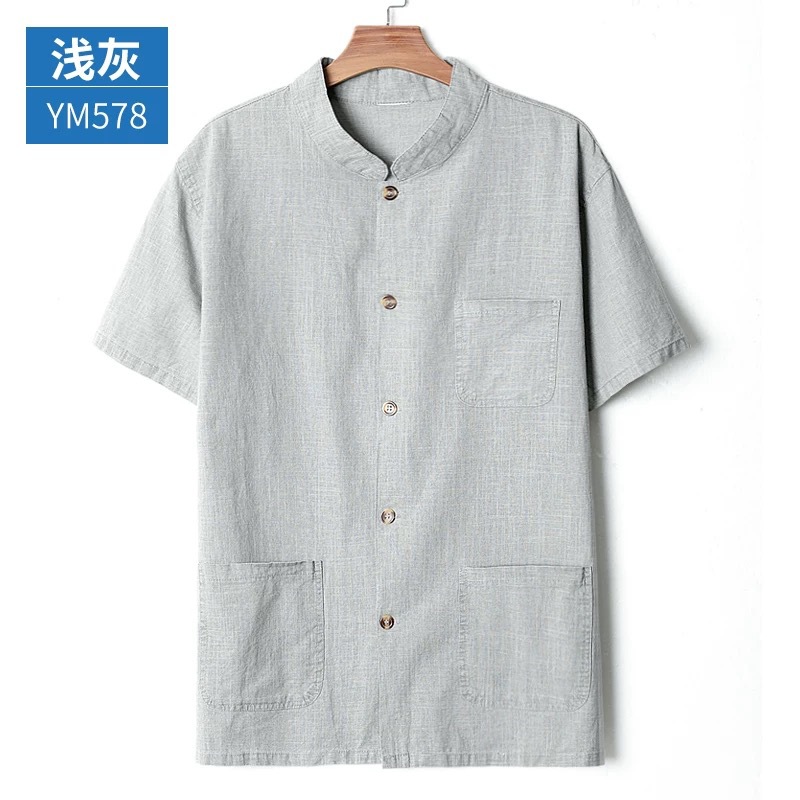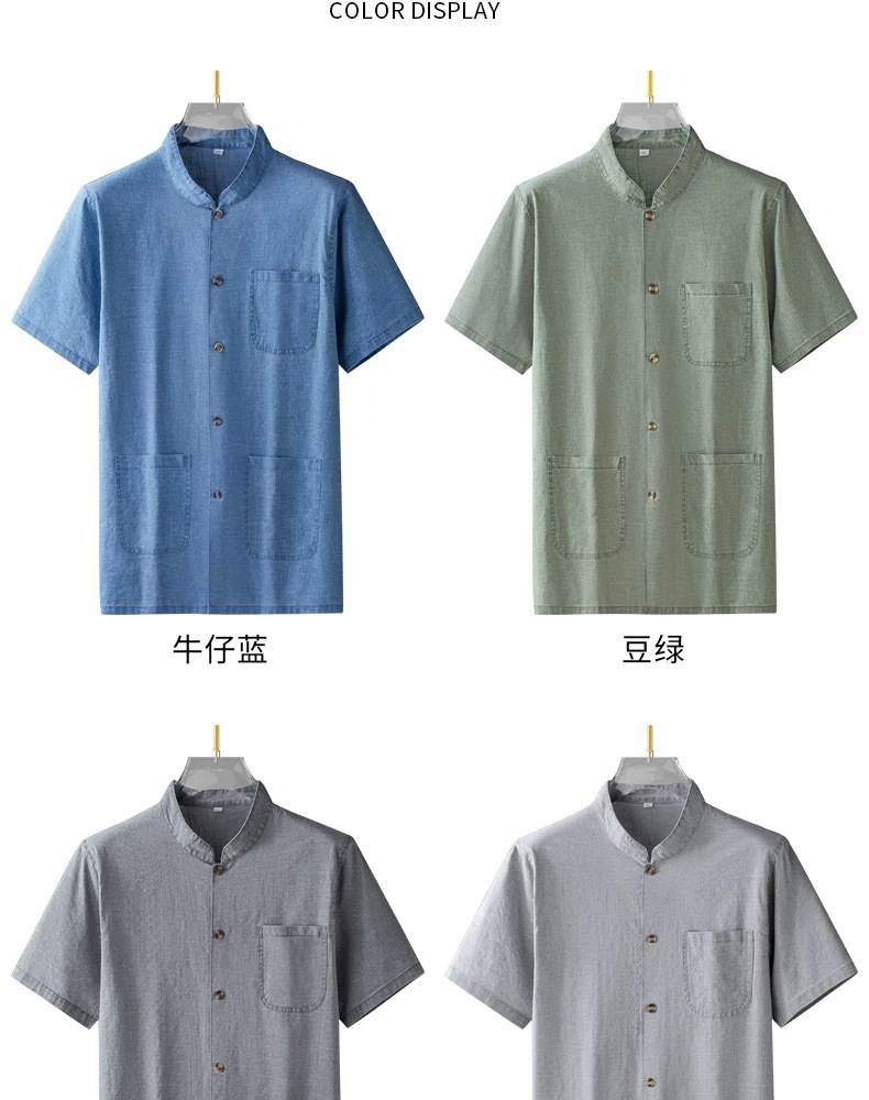 국경 간 좋은 상품 린넨 아빠의 반팔 남성 셔츠 얇은 중년 및 노인 남성 여름 반소매 여름 셔츠스토어 가기