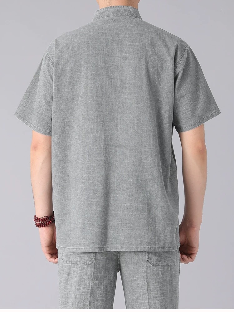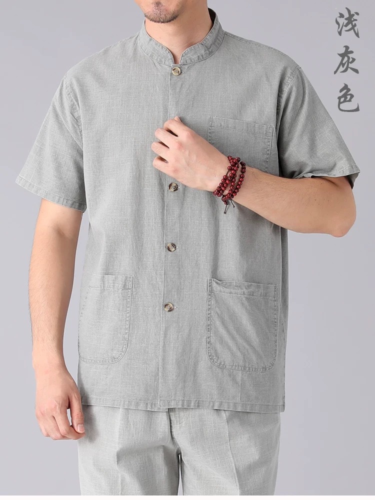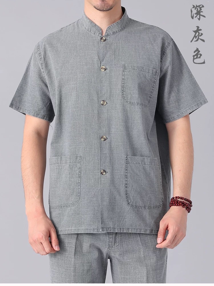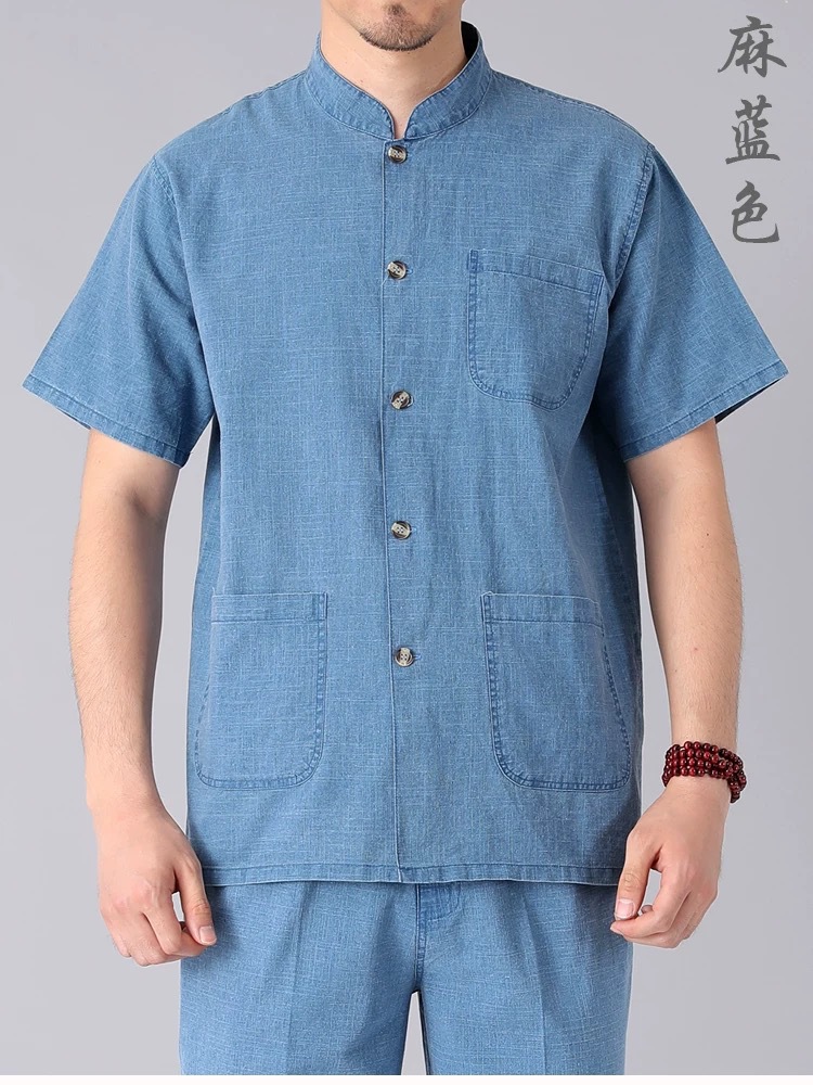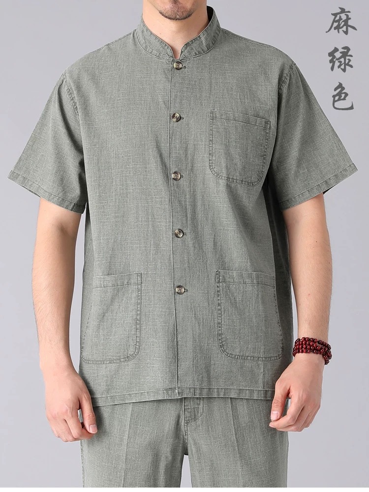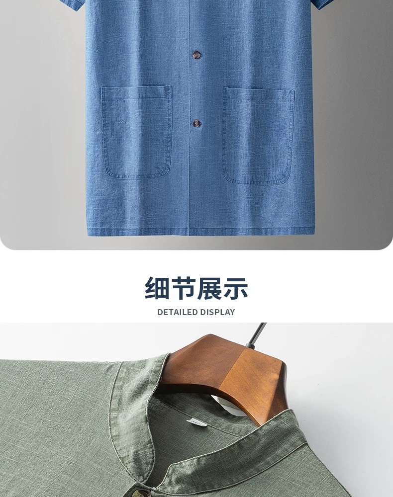 국경 간 좋은 상품 린넨 아빠의 반팔 남성 셔츠 얇은 중년 및 노인 남성 여름 반소매 여름 셔츠스토어 가기