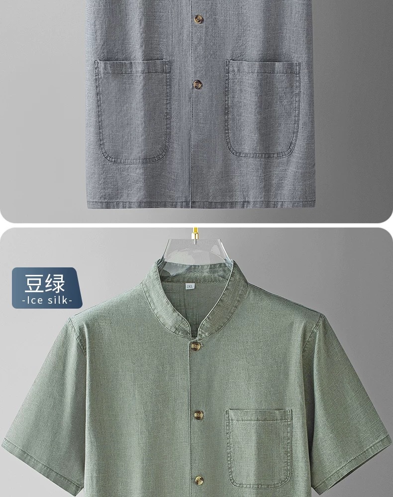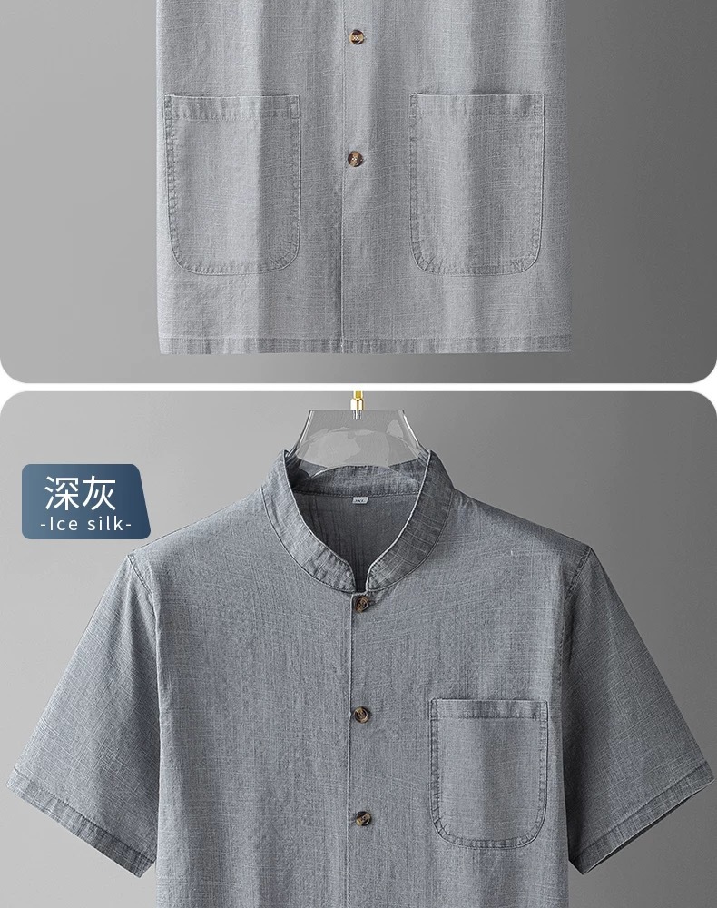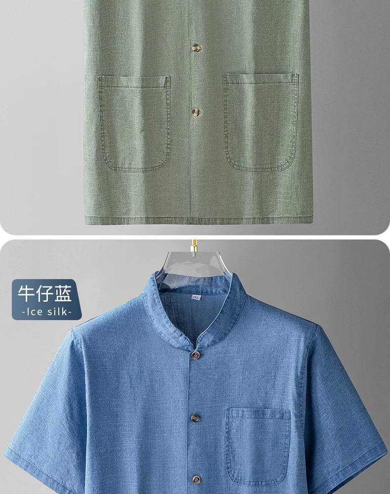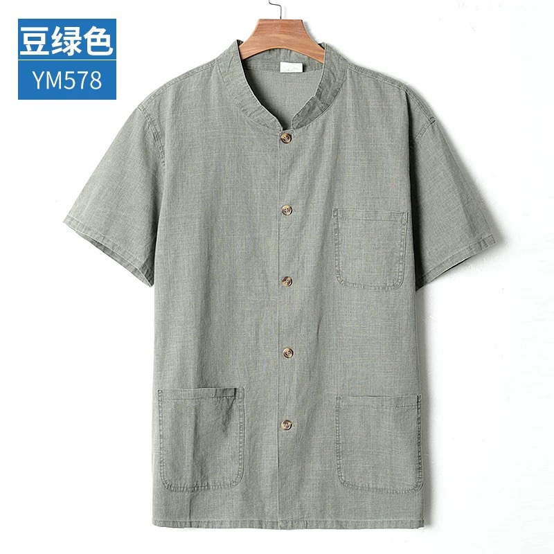 국경 간 좋은 상품 린넨 아빠의 반팔 남성 셔츠 얇은 중년 및 노인 남성 여름 반소매 여름 셔츠