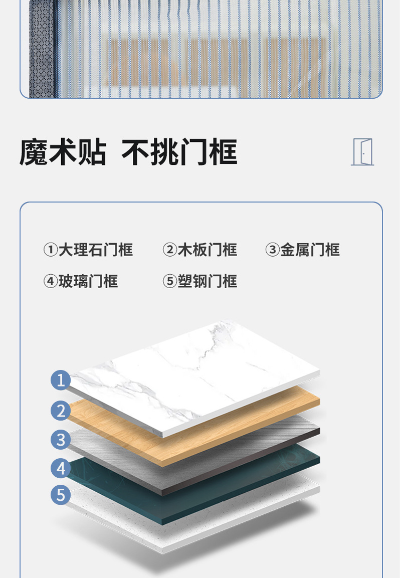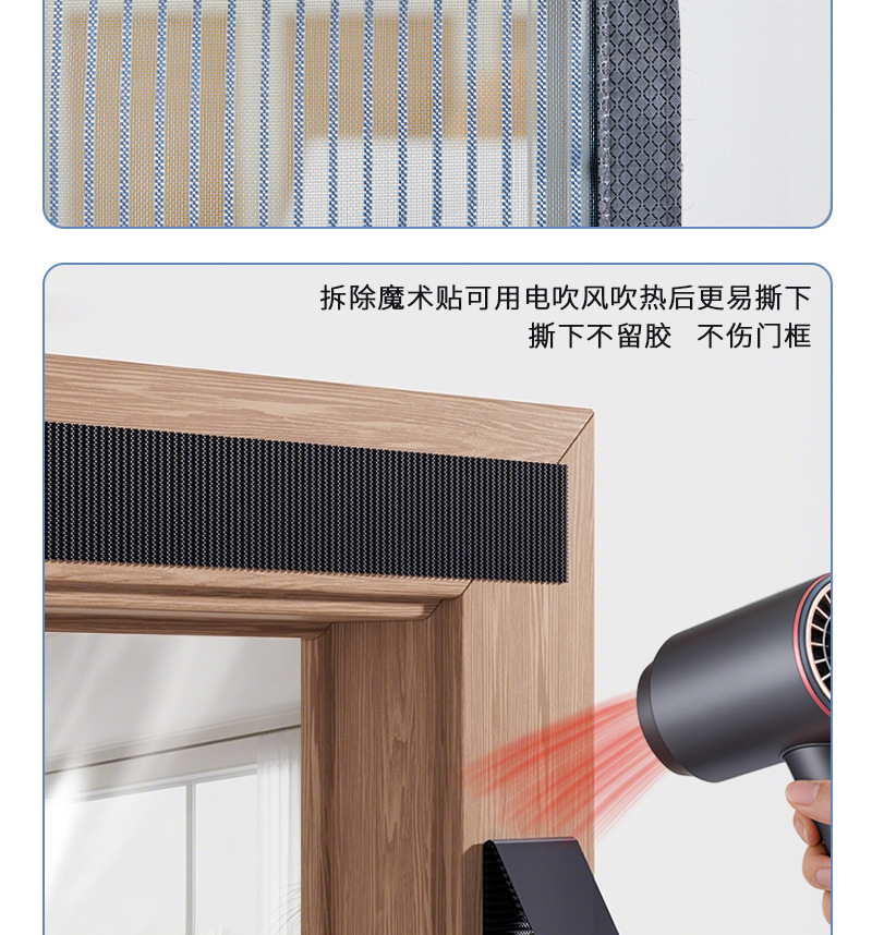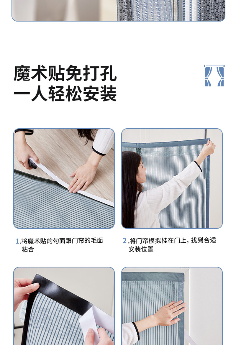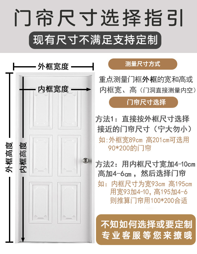 • 문틀 외부 치수를 측정하고 외부 프레임 치수에 따라 도어 커튼을 선택하며 사용자 정의가 지원됩니다.