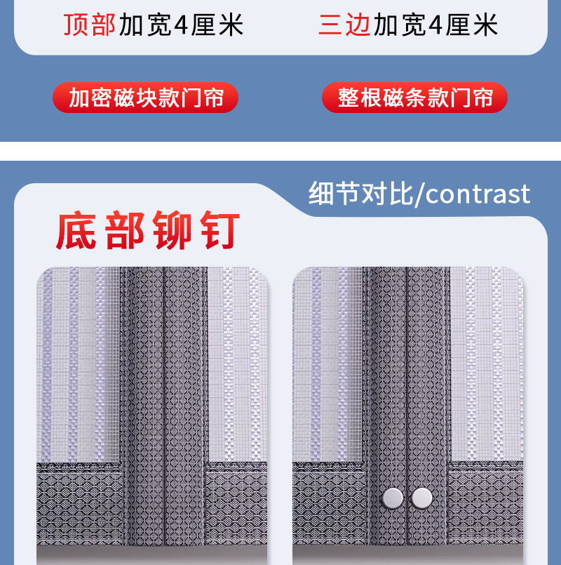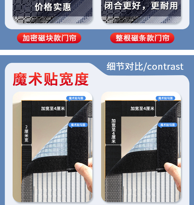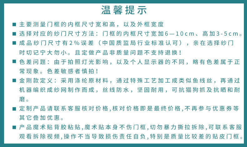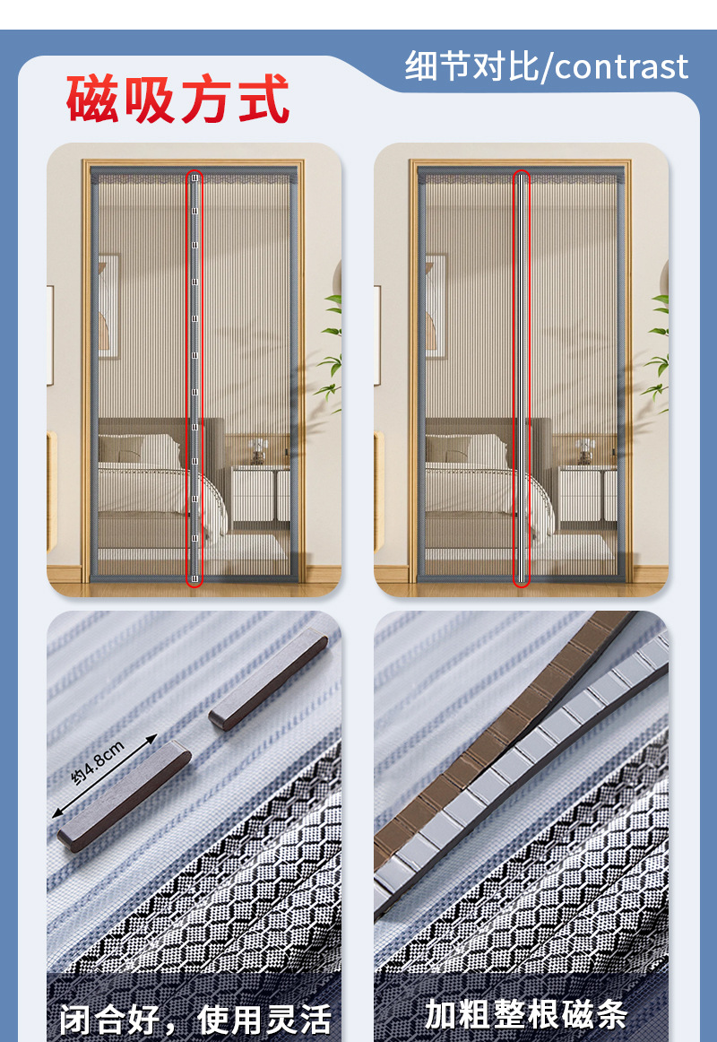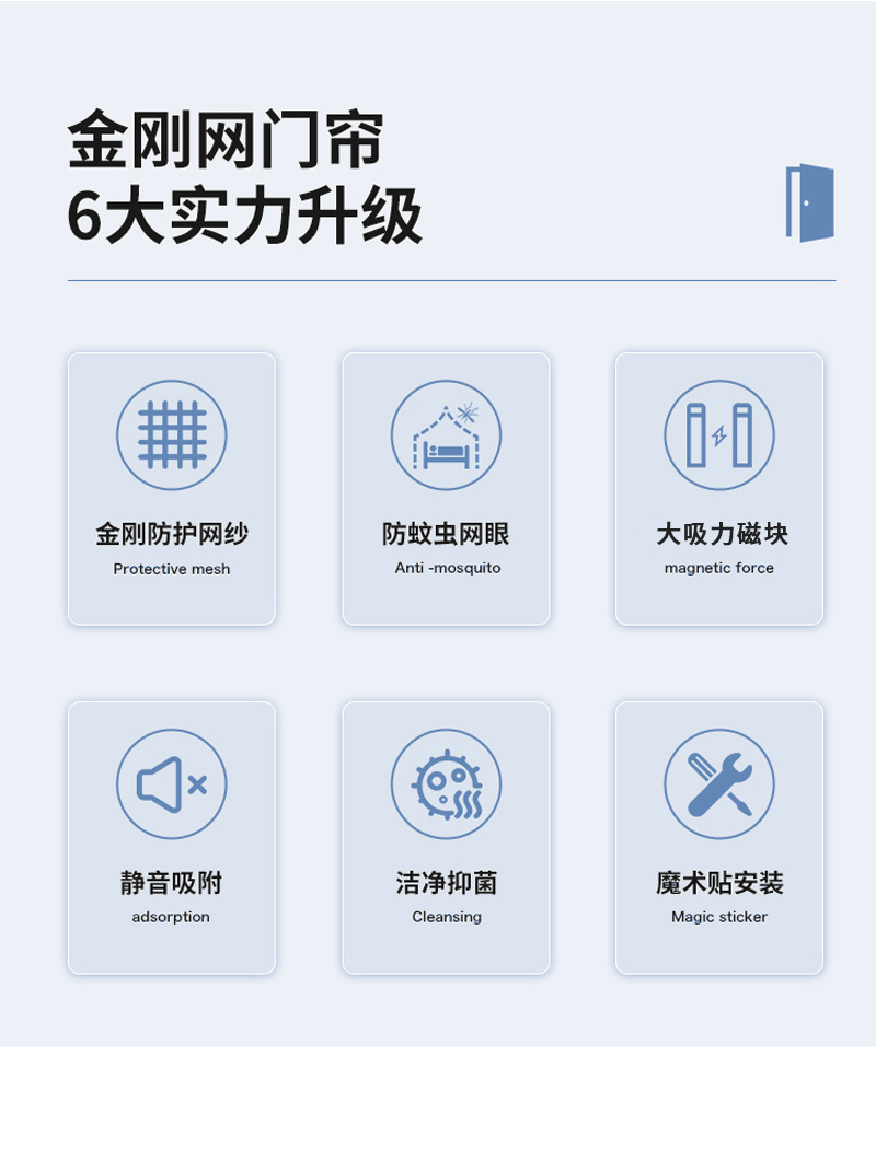 • 문틀 외부 치수를 측정하고 외부 프레임 치수에 따라 도어 커튼을 선택하며 사용자 정의가 지원됩니다.