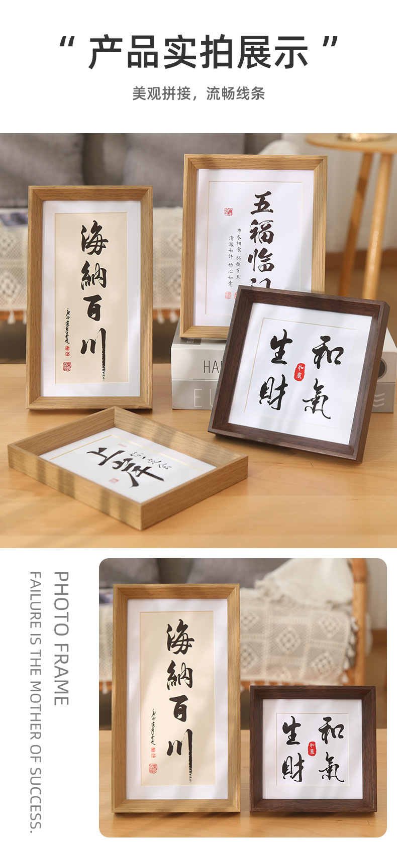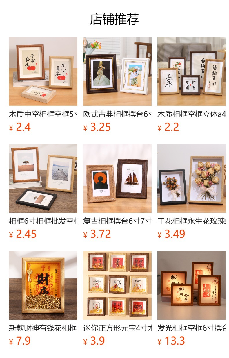 나무 액자 빈 프레임 입체형 A4 탁상용 벽걸이 7inch 8inch 장식품 서예 문화창의 액자 6inch 액자 도매