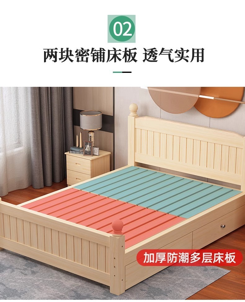 단단한 나무 침대 1.5 마스터 침실 더블 침대 1.8 미터 저장 대여실 1 미터 2 싱글 침대 간단한 침대 프레임 공급