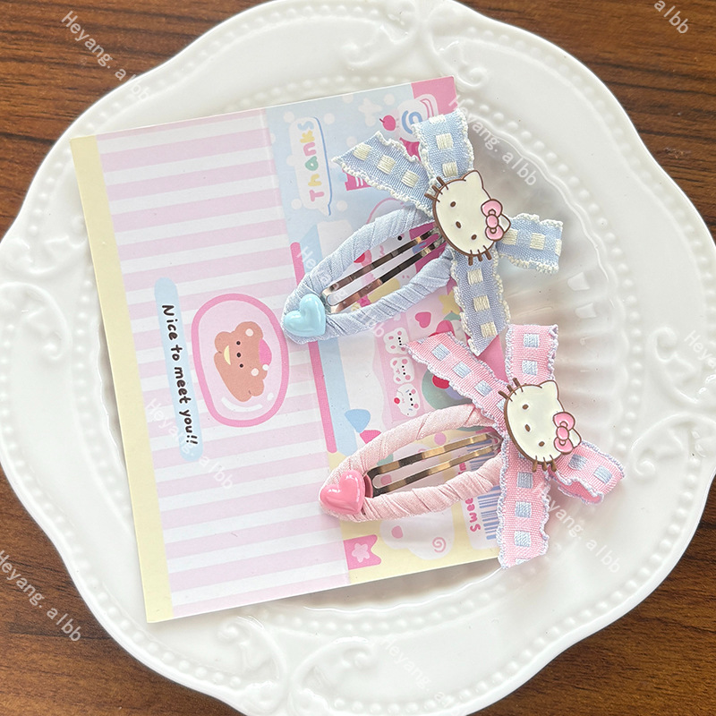 한국의 새로운 블루 핑크 활 새끼 고양이 사랑 헤어 클립 bb 클립 달콤한 멋진 소녀 앞머리 클립 올 매치 헤어 액세서리